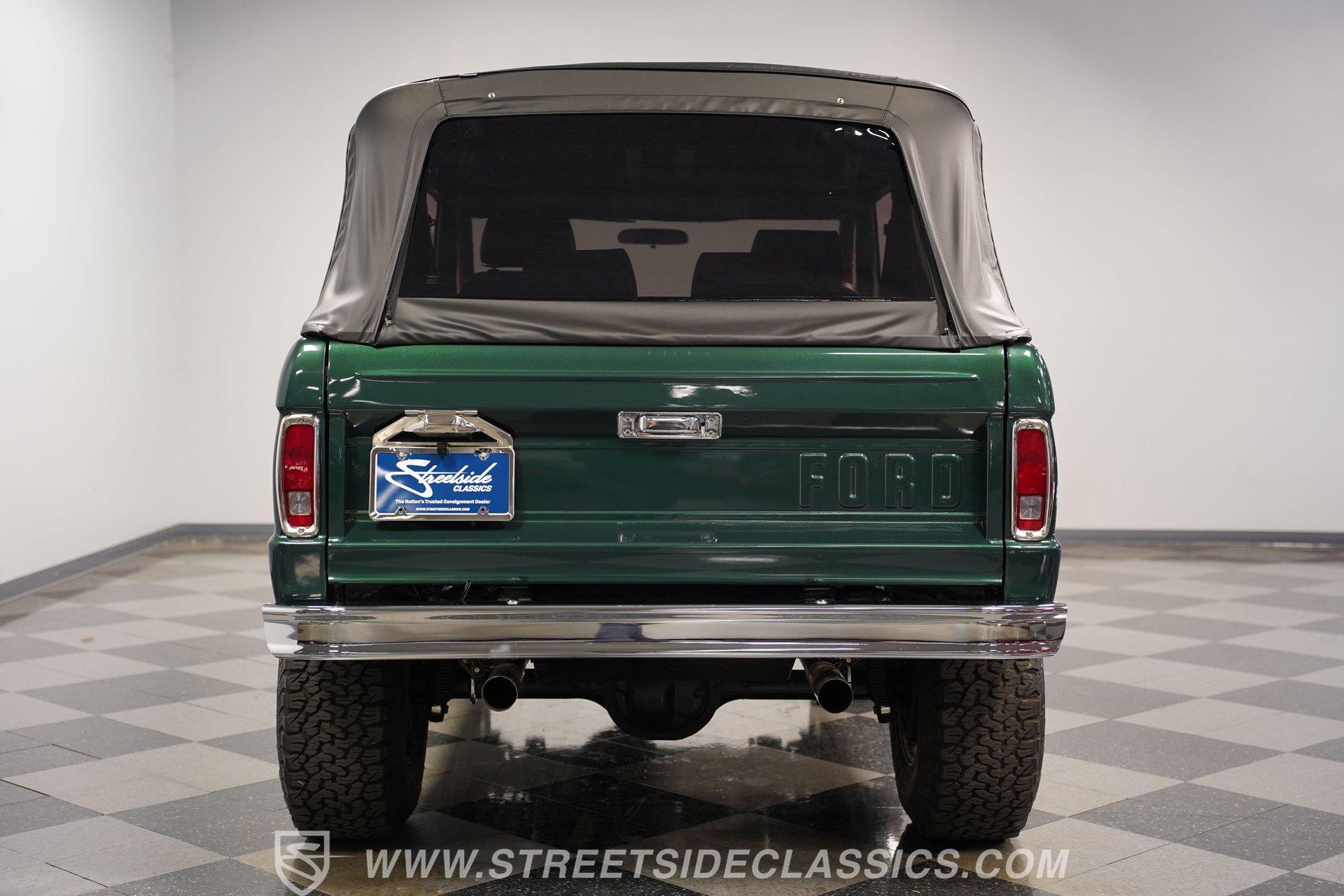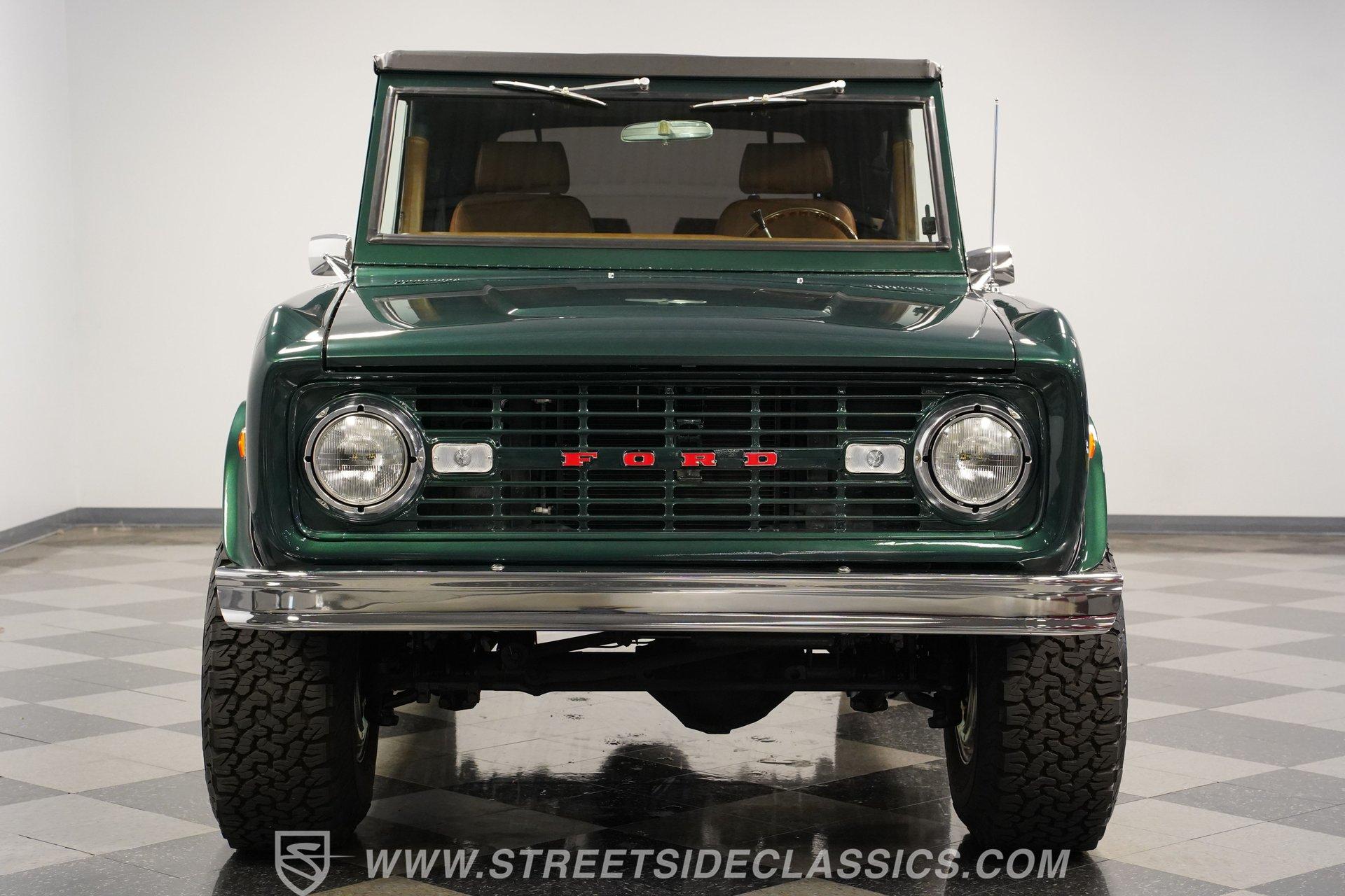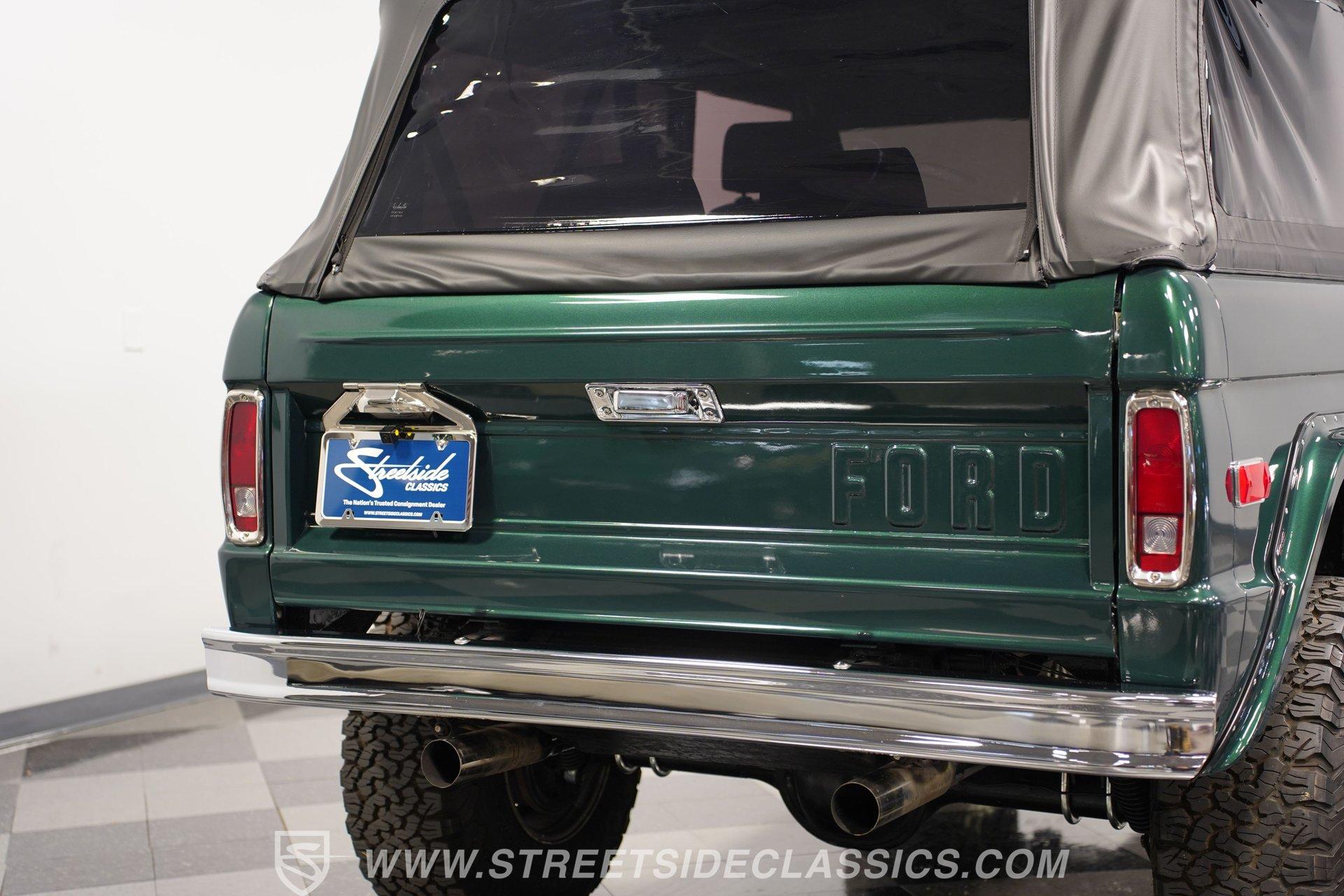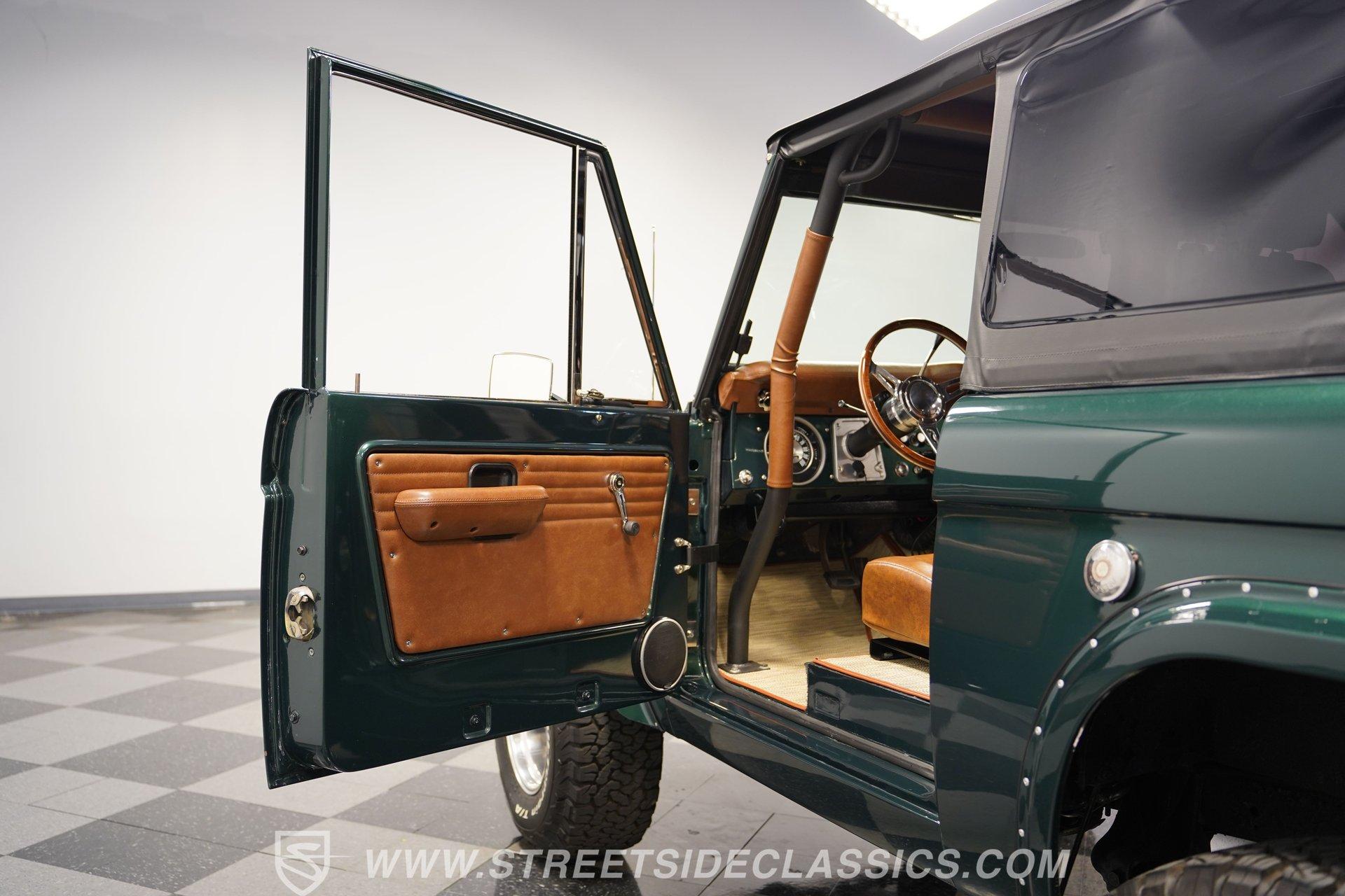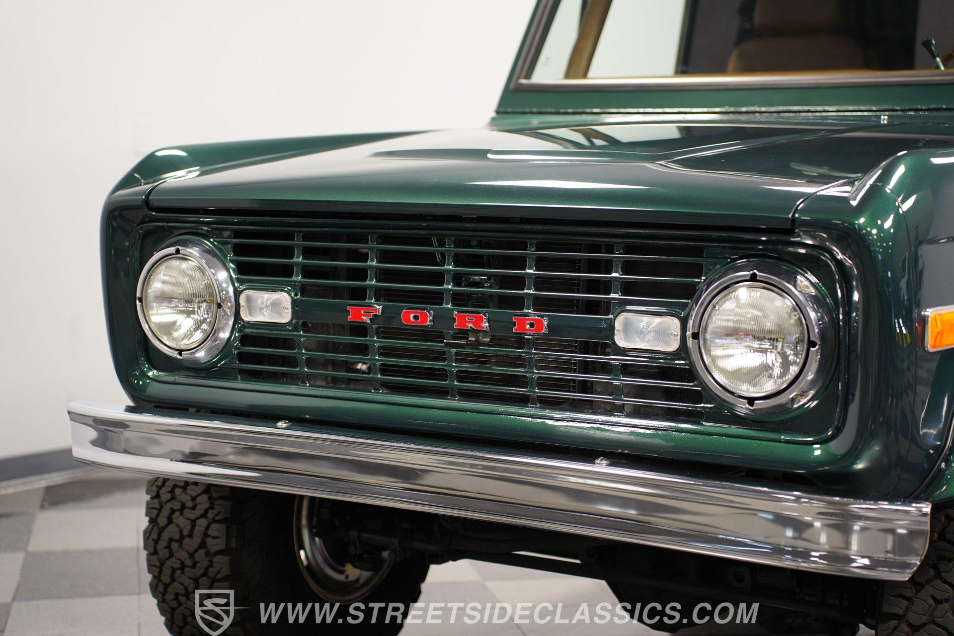 Searching for a vintage SUV with its factory styling still intact, but don't want to have to cross your fingers every time you get behind the wheel? Then you'll definitely want to check out this 1973 Ford Bronco Sport 4x4. This first-generation Bronco is dressed in green paint that has a smooth texture and a decidedly vintage appearance, and the metal flake it contains nearly radiates when you bring it out in the sun. The accompanying bright work is in fine shape, with no dings to be found. This classic was said to have been restored by the professionals at Venice Broncos in California, and the results are undeniable. It looks and runs great. The interior is sure to impress, with tan vinyl upholstery covering front buckets and a rear bench seat that is virtually new. Between them is a locking Tuff storage box that comes in handy for stowing valuables. As you direct your attention forward, you'll notice that the color-matched dash area really pops, with its collection of clear functional gauges and a dash pad over the top that ties in perfectly with the other upholstery. The air conditioning system works flawlessly to keep you and your passengers comfortable throughout the year, and a touchscreen-operated AM/FM stereo with Bluetooth connectivity is on hand to offer plenty of audio options. This vintage SUV hasn't logged a lot of miles since its restoration, and its rock-solid running condition makes it a good match for frequent driving. Its 302-cubic-inch V8 starts up without a hitch, and armed with an Edelbrock 4-barrel carburetor and intake manifold, it idles smoothly and pulls with plenty of conviction. The engine pairs with a 3-speed automatic C4 transmission that shifts smoothly. With Bilstein shocks at all four corners, the ride is firm, but by no means harsh, and power brakes that include discs up front provide prompt, fade-resistant stops. Long tube headers allow for easy breathing and terminate in a pair of Thrush mufflers that add a nice, deep rumble. A look below will reveal steering and suspension components that are ready for plenty of future miles of driving enjoyment. HIGHLIGHTS 302-CUBIC-INCH V8 4-BARREL EDELBROCK CARBURETOR 3-SPEED AUTOMATIC C4 TRANSMISSION 4-WHEEL DRIVE POWER FRONT DISC BRAKES LONG TUBE HEADERS DUAL EXHAUST, WITH THRUSH MUFFLERS POWER STEERING BILSTEIN SHOCKS DANA 44 FRONT END FORD 9" REAR END 15" PROCOMP ALLOY WHEELS DEEP GREEN PAINT TAN VINYL INTERIOR BUCKET SEATS AIR CONDITIONING Looking razor sharp and running like a top, this 1973 Ford Bronco Sport 4x4 conquers terrain on a set of 15" Pro Comp Alloy wheels wrapped with BF Goodrich All-Terrain KO2 tires, and would be a great acquisition for any classic SUV enthusiast. Call today!
