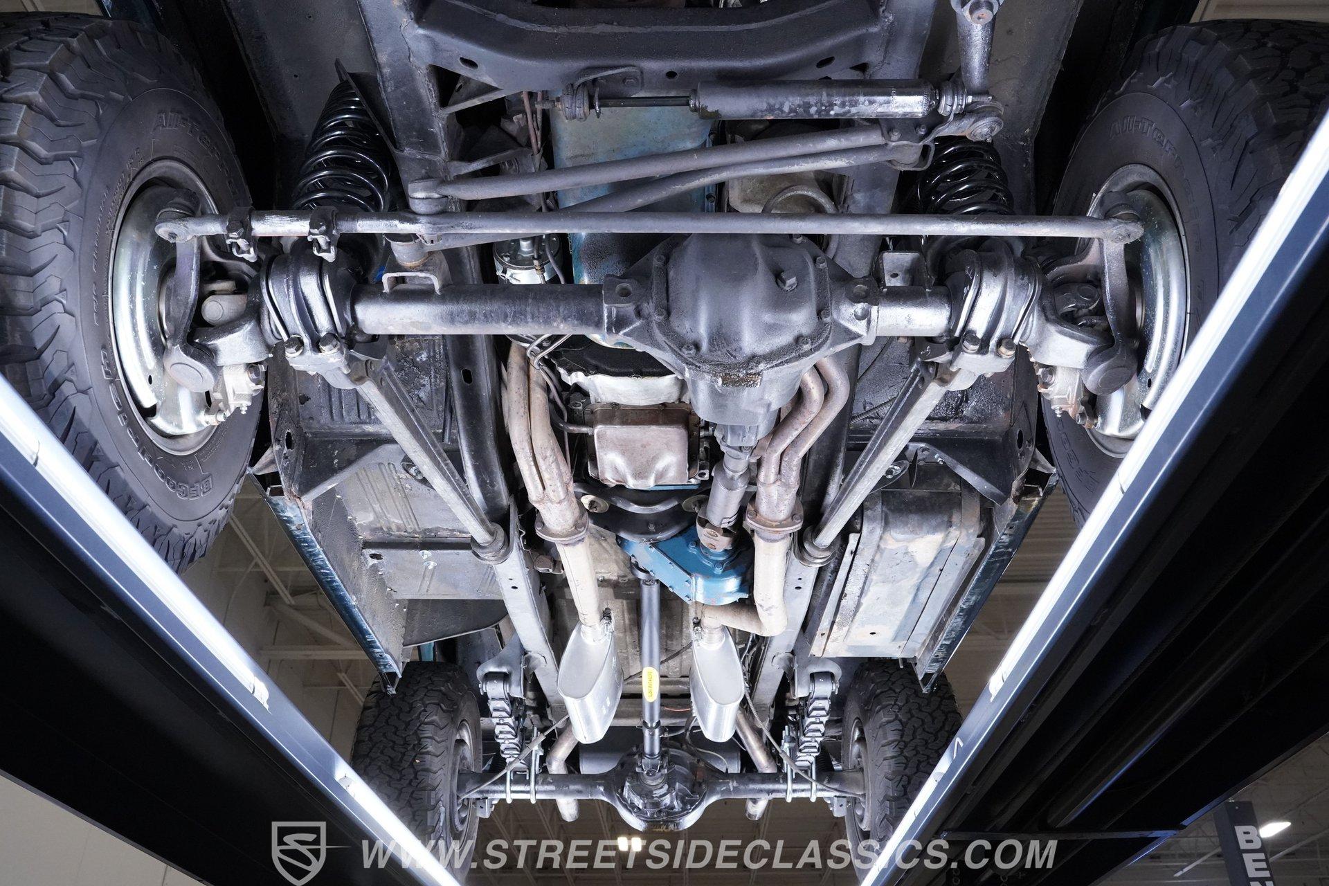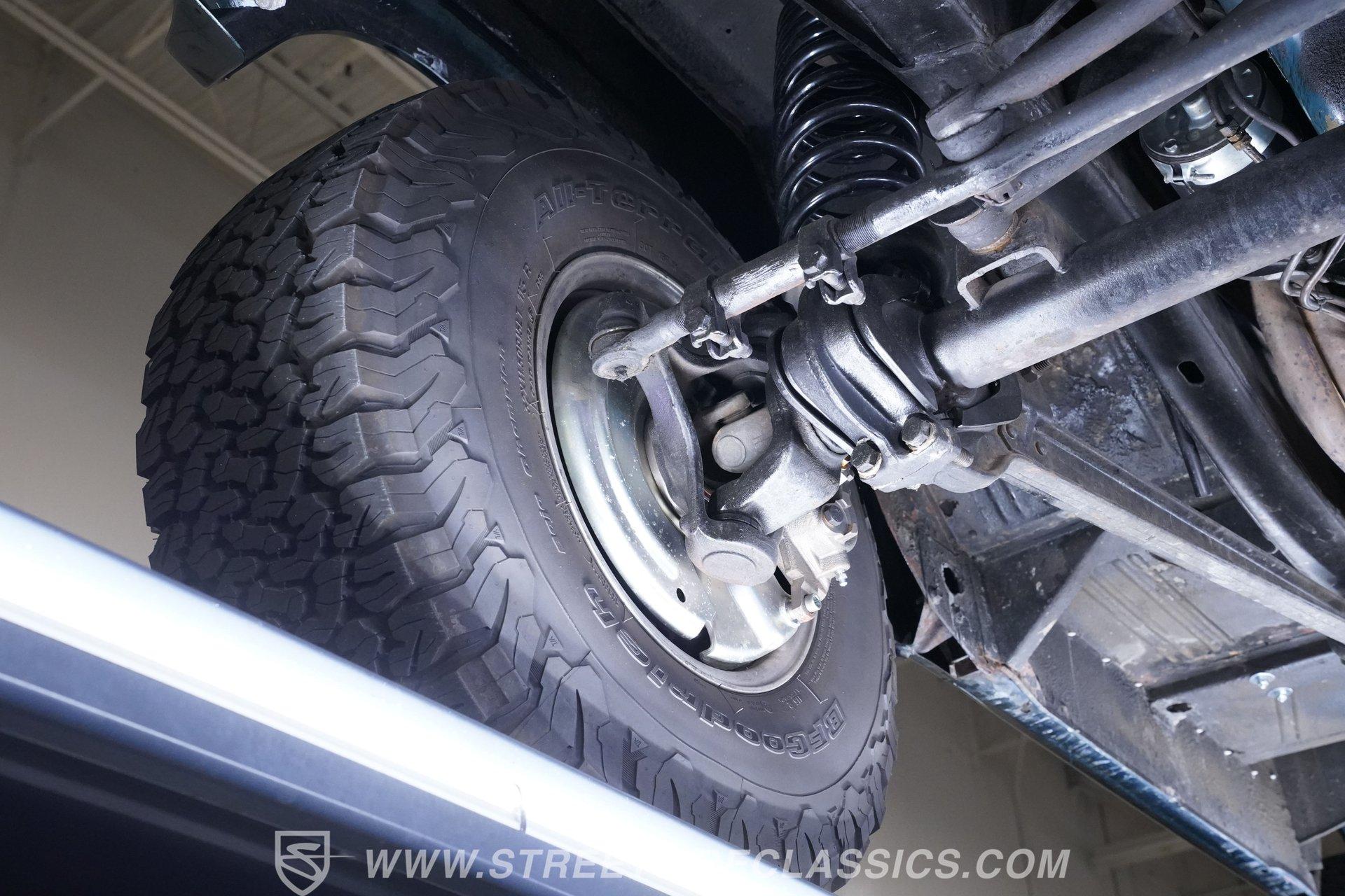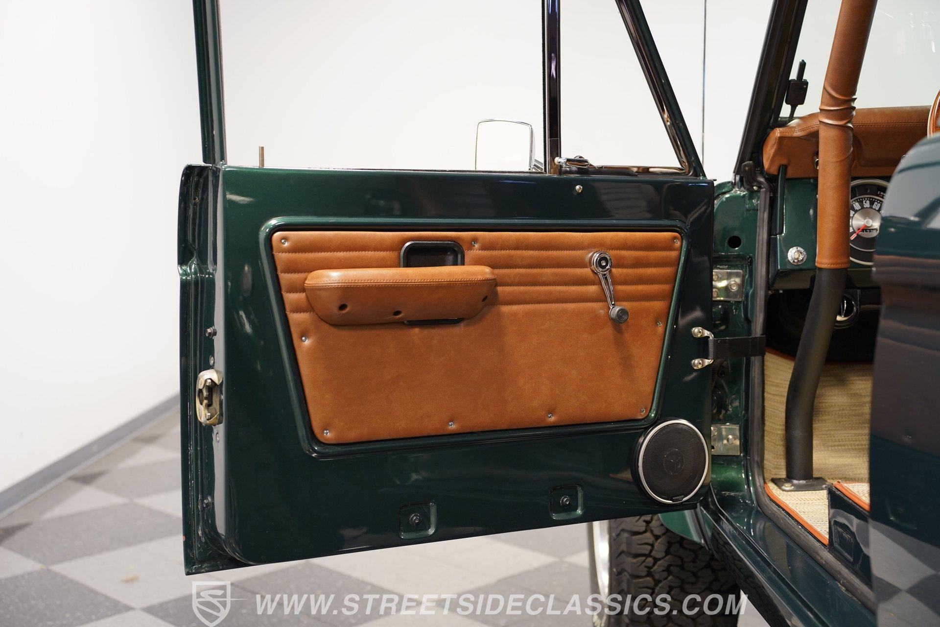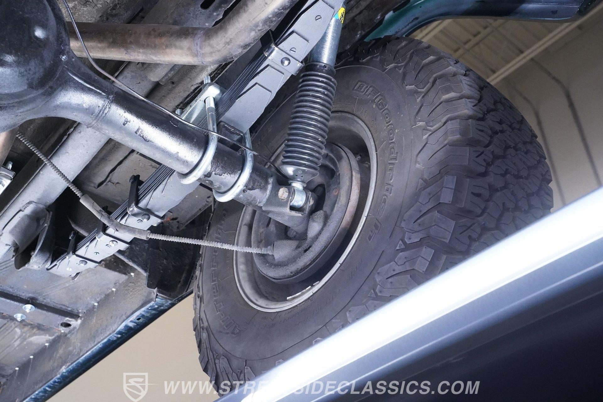 Searching for a vintage SUV with its factory styling still intact, but don't want to have to cross your fingers every time you get behind the wheel? Then you'll definitely want to check out this 1973 Ford Bronco Sport 4x4. This first-generation Bronco is dressed in green paint that has a smooth texture and a decidedly vintage appearance, and the metal flake it contains nearly radiates when you bring it out in the sun. The accompanying bright work is in fine shape, with no dings to be found. This classic was said to have been restored by the professionals at Venice Broncos in California, and the results are undeniable. It looks and runs great. The interior is sure to impress, with tan vinyl upholstery covering front buckets and a rear bench seat that is virtually new. Between them is a locking Tuff storage box that comes in handy for stowing valuables. As you direct your attention forward, you'll notice that the color-matched dash area really pops, with its collection of clear functional gauges and a dash pad over the top that ties in perfectly with the other upholstery. The air conditioning system works flawlessly to keep you and your passengers comfortable throughout the year, and a touchscreen-operated AM/FM stereo with Bluetooth connectivity is on hand to offer plenty of audio options. This vintage SUV hasn't logged a lot of miles since its restoration, and its rock-solid running condition makes it a good match for frequent driving. Its 302-cubic-inch V8 starts up without a hitch, and armed with an Edelbrock 4-barrel carburetor and intake manifold, it idles smoothly and pulls with plenty of conviction. The engine pairs with a 3-speed automatic C4 transmission that shifts smoothly. With Bilstein shocks at all four corners, the ride is firm, but by no means harsh, and power brakes that include discs up front provide prompt, fade-resistant stops. Long tube headers allow for easy breathing and terminate in a pair of Thrush mufflers that add a nice, deep rumble. A look below will reveal steering and suspension components that are ready for plenty of future miles of driving enjoyment. HIGHLIGHTS 302-CUBIC-INCH V8 4-BARREL EDELBROCK CARBURETOR 3-SPEED AUTOMATIC C4 TRANSMISSION 4-WHEEL DRIVE POWER FRONT DISC BRAKES LONG TUBE HEADERS DUAL EXHAUST, WITH THRUSH MUFFLERS POWER STEERING BILSTEIN SHOCKS DANA 44 FRONT END FORD 9" REAR END 15" PROCOMP ALLOY WHEELS DEEP GREEN PAINT TAN VINYL INTERIOR BUCKET SEATS AIR CONDITIONING Looking razor sharp and running like a top, this 1973 Ford Bronco Sport 4x4 conquers terrain on a set of 15" Pro Comp Alloy wheels wrapped with BF Goodrich All-Terrain KO2 tires, and would be a great acquisition for any classic SUV enthusiast. Call today!