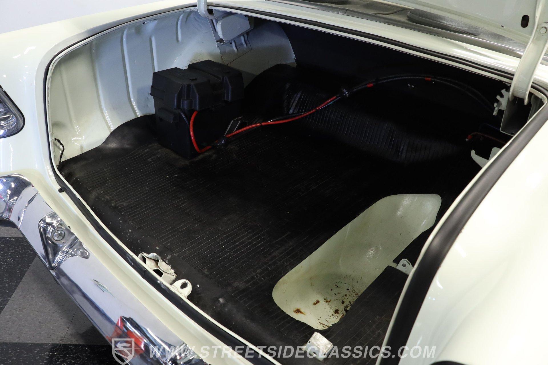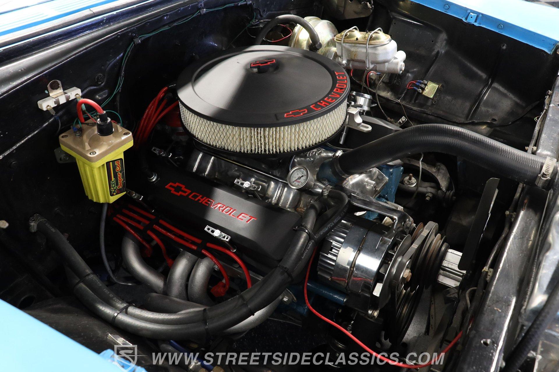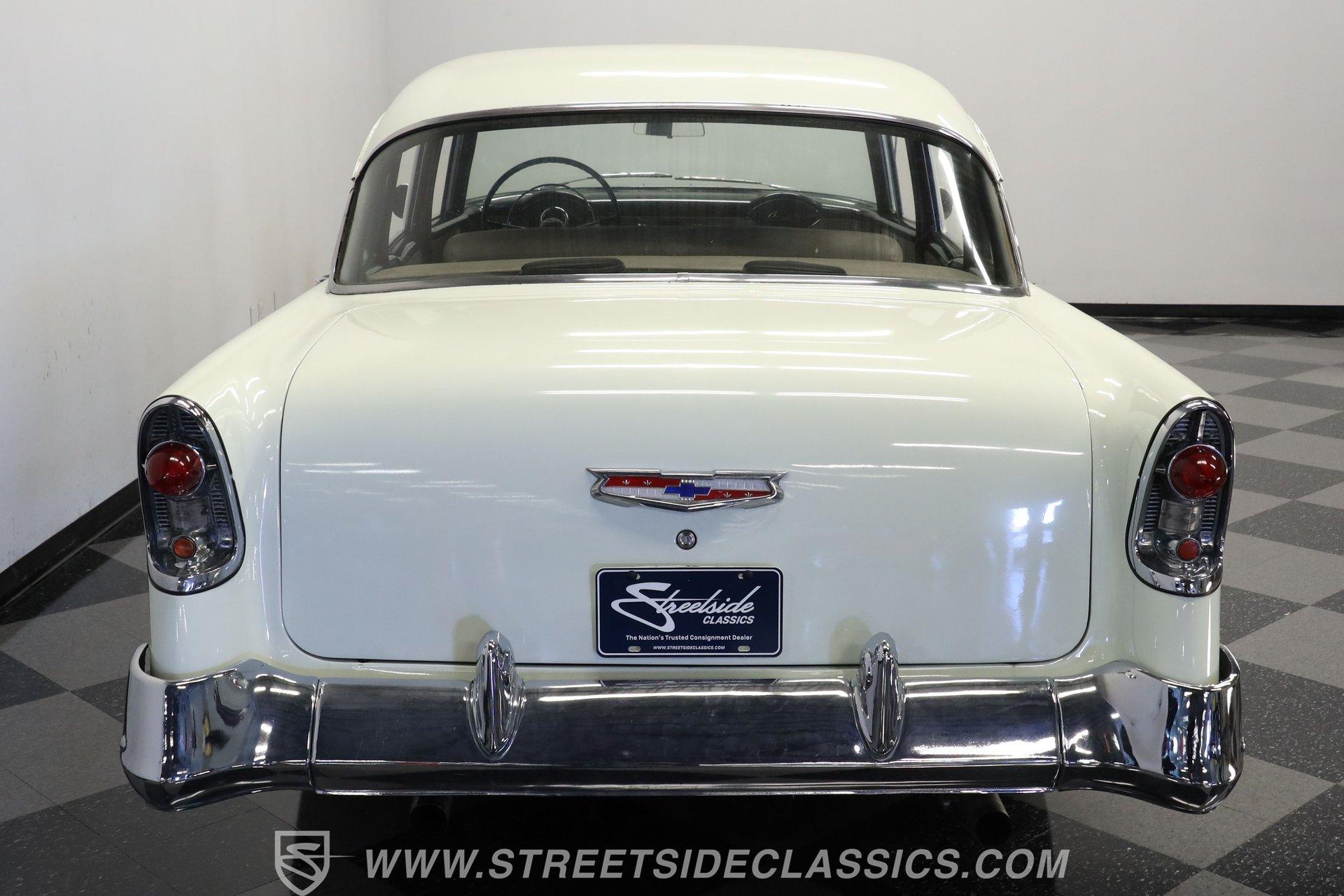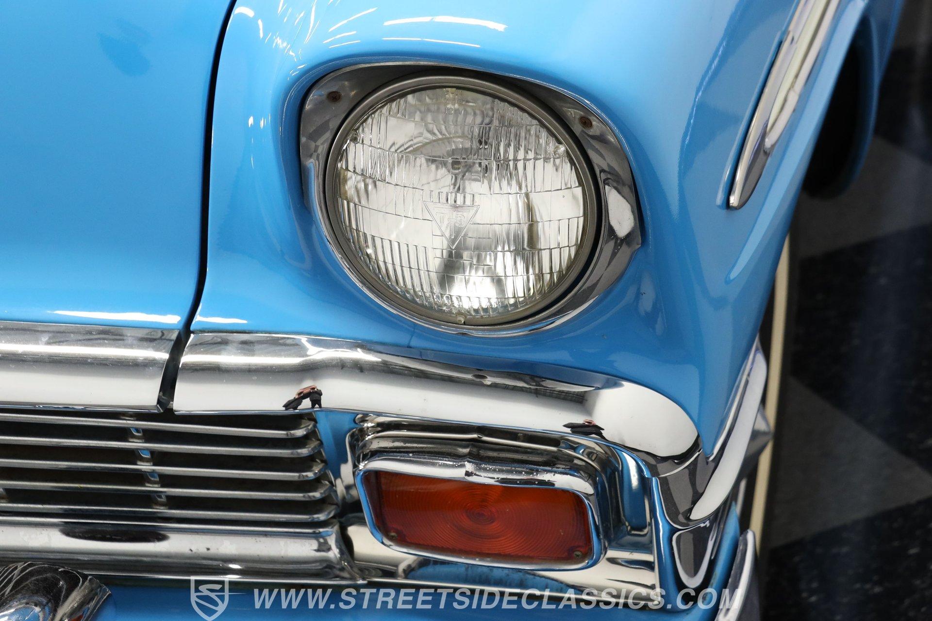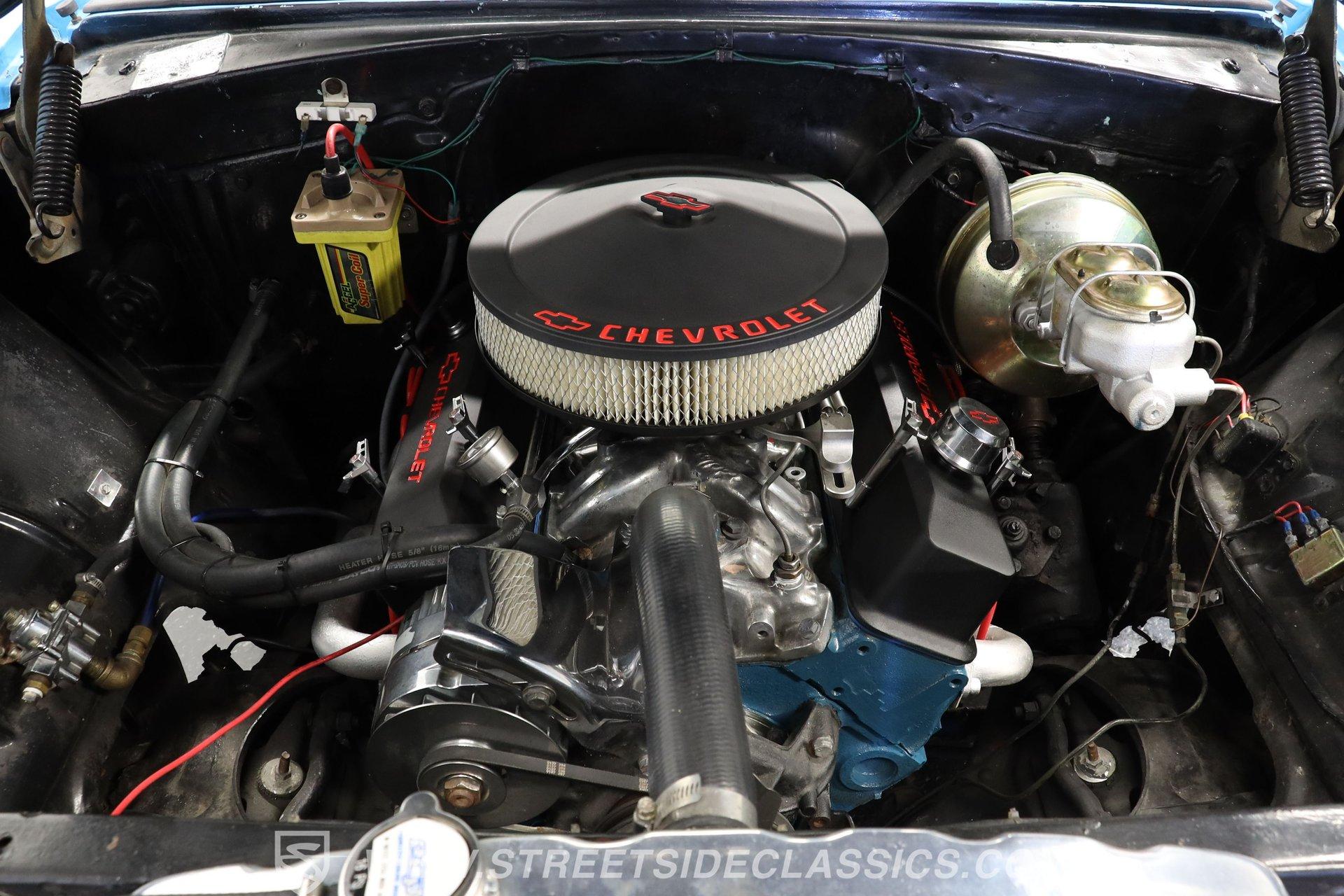 This 1956 Chevrolet Bel Air 4 Door Sedan captures the essence of 1950s automotive design. The Nassau Blue and India Ivory paint job isn't just eye-candy - it's a time machine on wheels. Stretching a full 200 inches, this Bel Air flaunts more chrome than a '50s diner. The iconic side spear splits the colors like a lightning bolt, pure automotive electricity. Perched on 15-inch wheels hugged by 235/75R15 whitewalls, this Chevy's stance is pure '50s cool with a dash of modern grip. From its hooded headlights to those rocket-inspired taillights and features the now-iconic "Dagmar" front bumper guards. Step into a time capsule of mid-century design. The interior, finished in black and white, perfectly complements the exterior. Bench seats upholstered in a combination of vinyl and cloth offer ample room for six passengers. The dashboard, a marvel of 1950s styling, features an arched speedometer and chrome accents that sparkle like jewelry. A column-mounted Sunpro Super Tach ll and a set of under-dash Autogauge gauges monitor engine functions. The floor shifter and manual windows maintain the car's nostalgic feel, while an upgraded AM/FM/cassette radio adds a touch of convenience to the driving experience. Under the hood, a 350 cubic inch V8 engine breathes through a Edelbrock intake and Holley four-barrel carburetor, delivering smooth, reliable power. The floor-shifted TH350 three-speed automatic transmission offers direct control over the drivetrain. Other upgrades include an Excel Power coil, chrome alternator, and black Chevrolet Performance valve covers with matching open-element air cleaner. Power front disc brakes provide improved stopping power and safety. A set of long-tube Hedman headers flow back through a dual exhaust system with Pypes Street Pro mufflers, giving this Bel Air a subtle rumble. HIGHLIGHTS: 350 V8 Engine TH350 3-Speed Automatic Transmission Edelbrock Intake Manifold Front Power Disc brakes Holley Carburetor Headers Excel Coil Dual Exhaust with Pypes Street Pro mufflers Nassau Blue and India Ivory Two-Tone Paint Chrome Bumpers and Trim 15-inch Wheels in 205/75R15 Whitewall Tires Front Seat Belts Black and White Interior with Bench seats Sunpro Super Tach and Under-Dash Gauges Floor Shifter Aluminum Radiator Hedman Headers This 1956 Chevrolet Bel Air 4 Door Sedan combines classic '50s style with thoughtful upgrades. Its healthy 350 V8 engine, eye-catching two-tone paint, and spacious interior make it perfect for cruising in vintage American luxury. Experience the golden age of Detroit iron. Call today! Be sure to ask about our services offered; Financing, Vehicle Protection Plan, Insurance, and Transportation to your driveway!