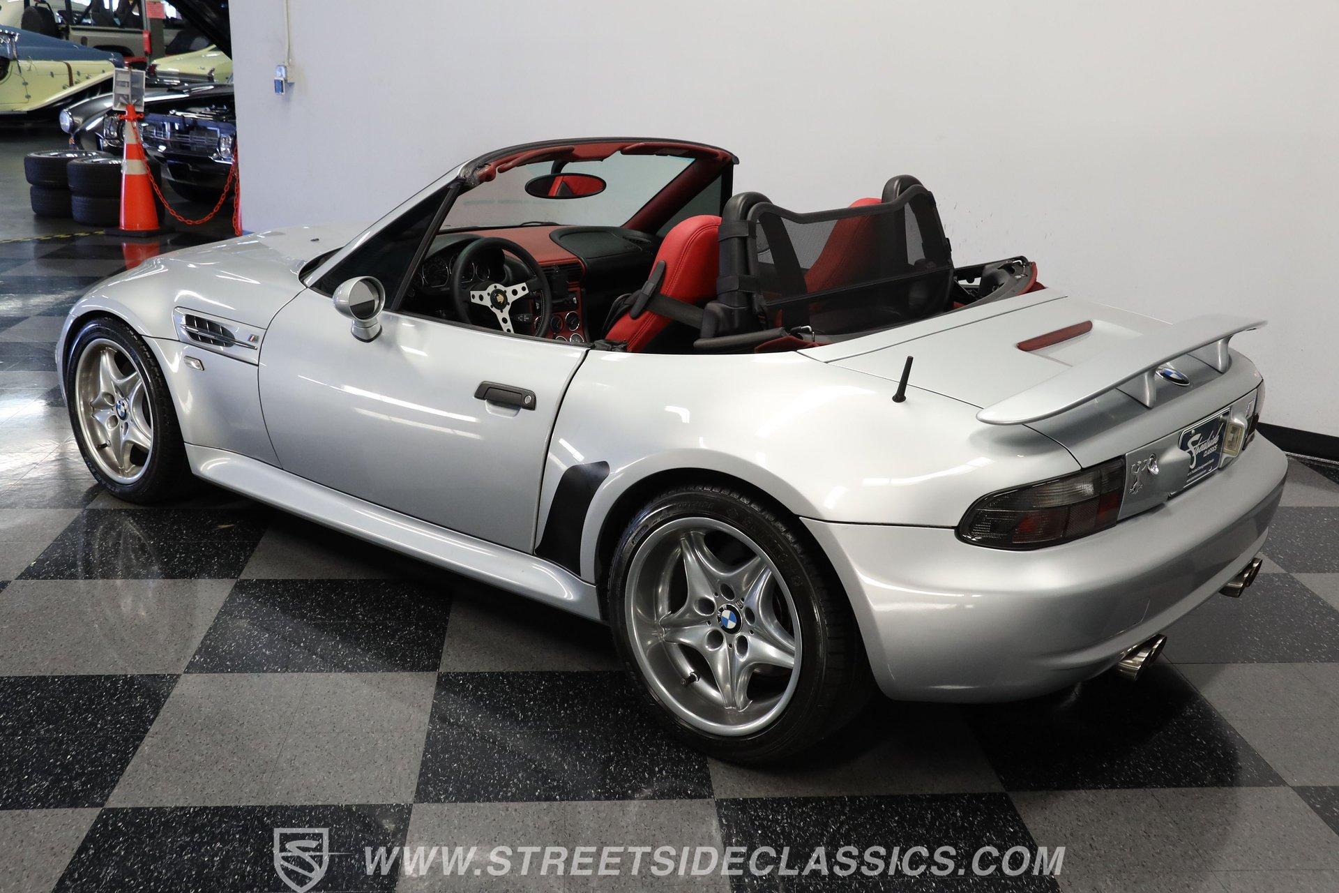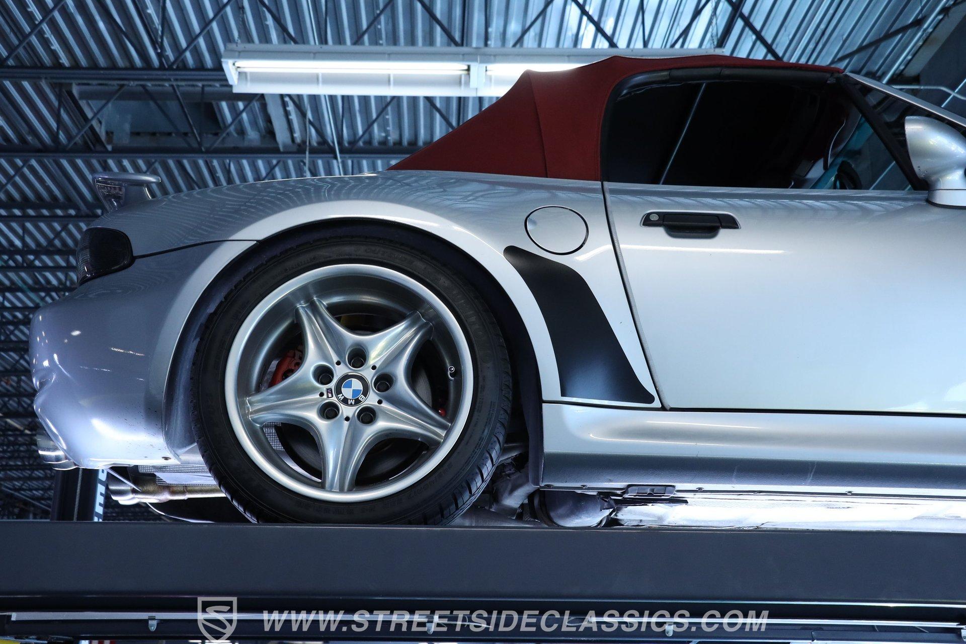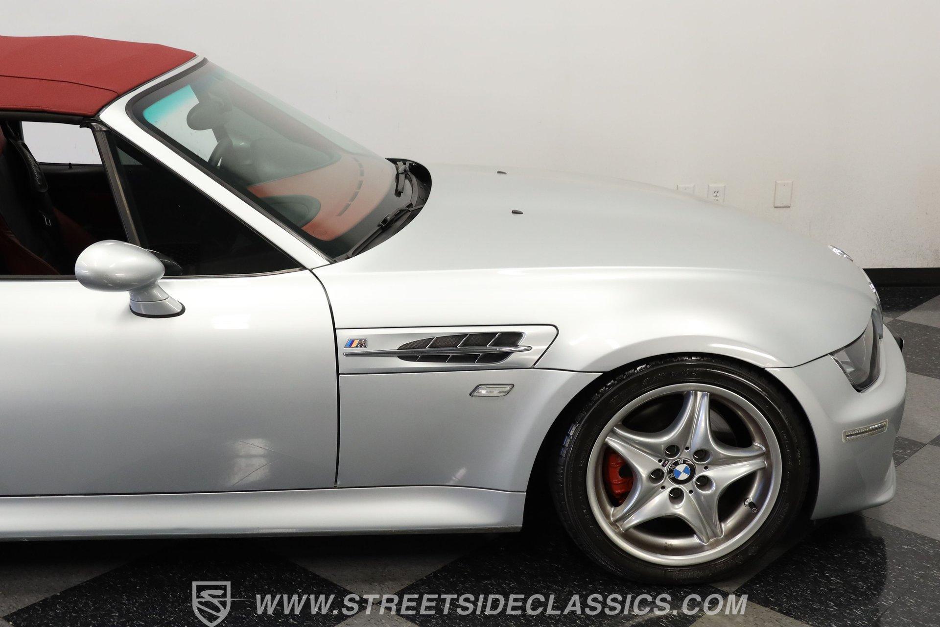 Designed for pure driving joy, the 1999 BMW Z3 M Roadster wears Arktissilber Silver paint with precision and purpose. Built as a high-performance variant, this roadster combines aggressive styling with track-worthy capabilities. The long hood stretches forward while the short deck creates that unmistakable sports car profile, and the burgundy-colored cloth convertible top tucks away cleanly for open-air excitement. Those 17" wheels fill the fenders perfectly, wrapped in performance tires measuring 225/45ZR17 up front and 255/40ZR17 at the rear. Dual exhausts exit the back, announcing this is no ordinary Z3. The red and black leather interior creates the perfect environment for serious driving. Sport bucket seats with heating capability hold the driver and passenger firmly during cornering maneuvers. Everything about the layout puts the focus on the driving experience – from the upgraded MOMO steering wheel, perfectly positioned console shifter for the manual transmission to the well-placed controls. The power convertible top operates with a simple switch, while the Pioneer stereo provides soundtrack options for your drive. Additional safety comes from side airbags, and the power steering makes for easy maneuverability. Acceleration comes courtesy of the 3.2L DOHC 6-cylinder engine that produces impressive output through the 5-speed manual transmission. The rear-wheel drive setup gives this roadster genuine sports car reflexes, with balance and poise through every curve. Four-wheel power disc brakes bring everything to a controlled stop when needed. The stock suspension maintains that ideal balance between performance and control that made these roadsters favorites on both road and track. HIGHLIGHTS: 3.2L DOHC 6-Cylinder Engine 5-Speed Manual Transmission Electronic Fuel Injection 4-Wheel Power Disc Brakes Stock Suspension Dual Exhaust RWD Drivetrain Arktissilber Silver Paint Burgundy Cloth Convertible Top 17-Inch Wheels MOMO Steering Wheel Black and Red Leather Interior Power Convertible Top Console Shifter Pioneer Stereo Side Airbags Power Steering 77,073 Believed to be Original Miles German performance meets open-air excitement in the 1999 BMW Z3 M Roadster with its potent 3.2L six-cylinder and precise 5-speed manual. Few machines offer the same driving connection as this exciting roadster - created when driving feel mattered above all else. Call today! Be sure to ask about our services offered; Financing, Vehicle Protection Plan, Insurance, and Transportation to your driveway!