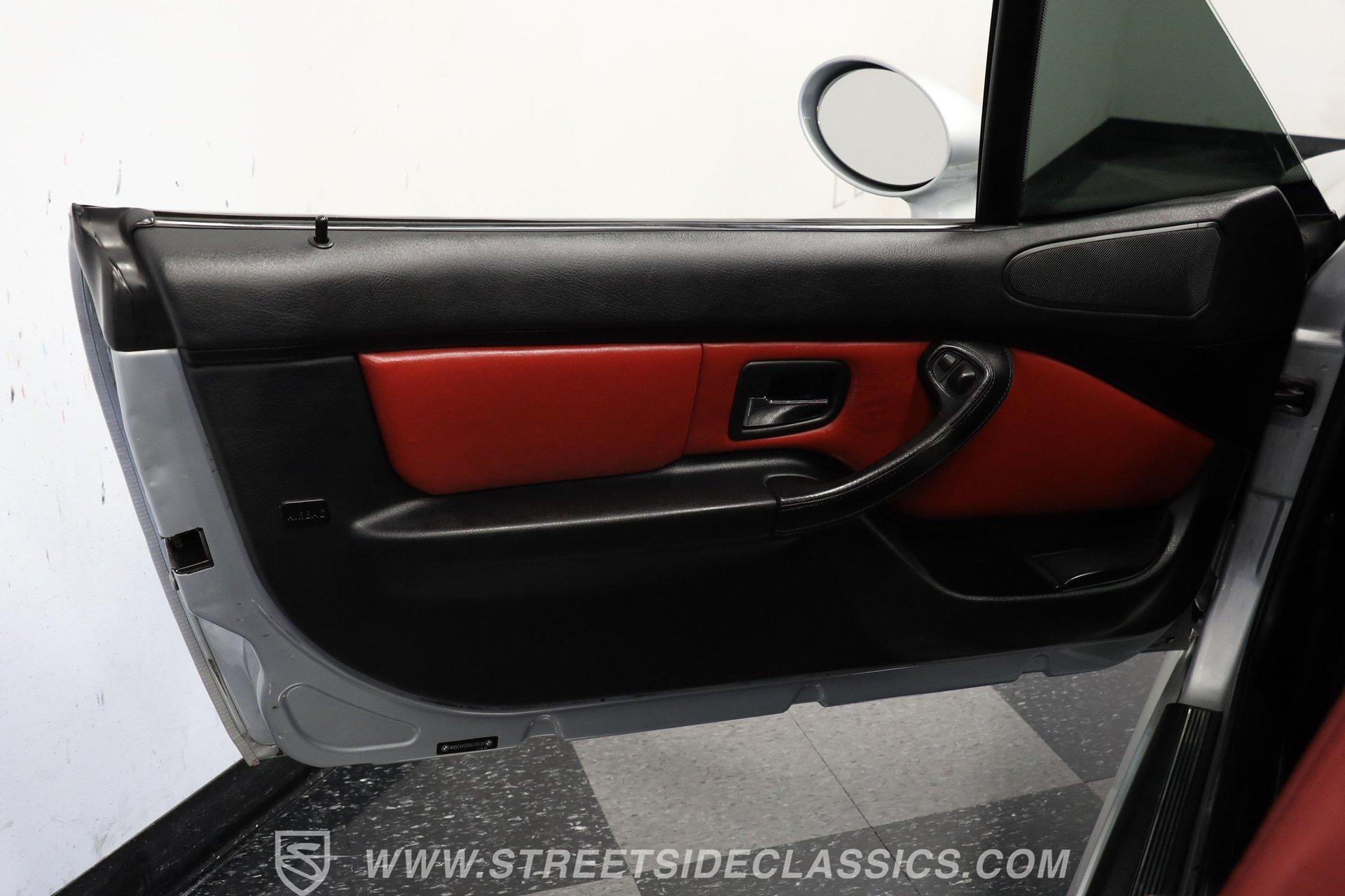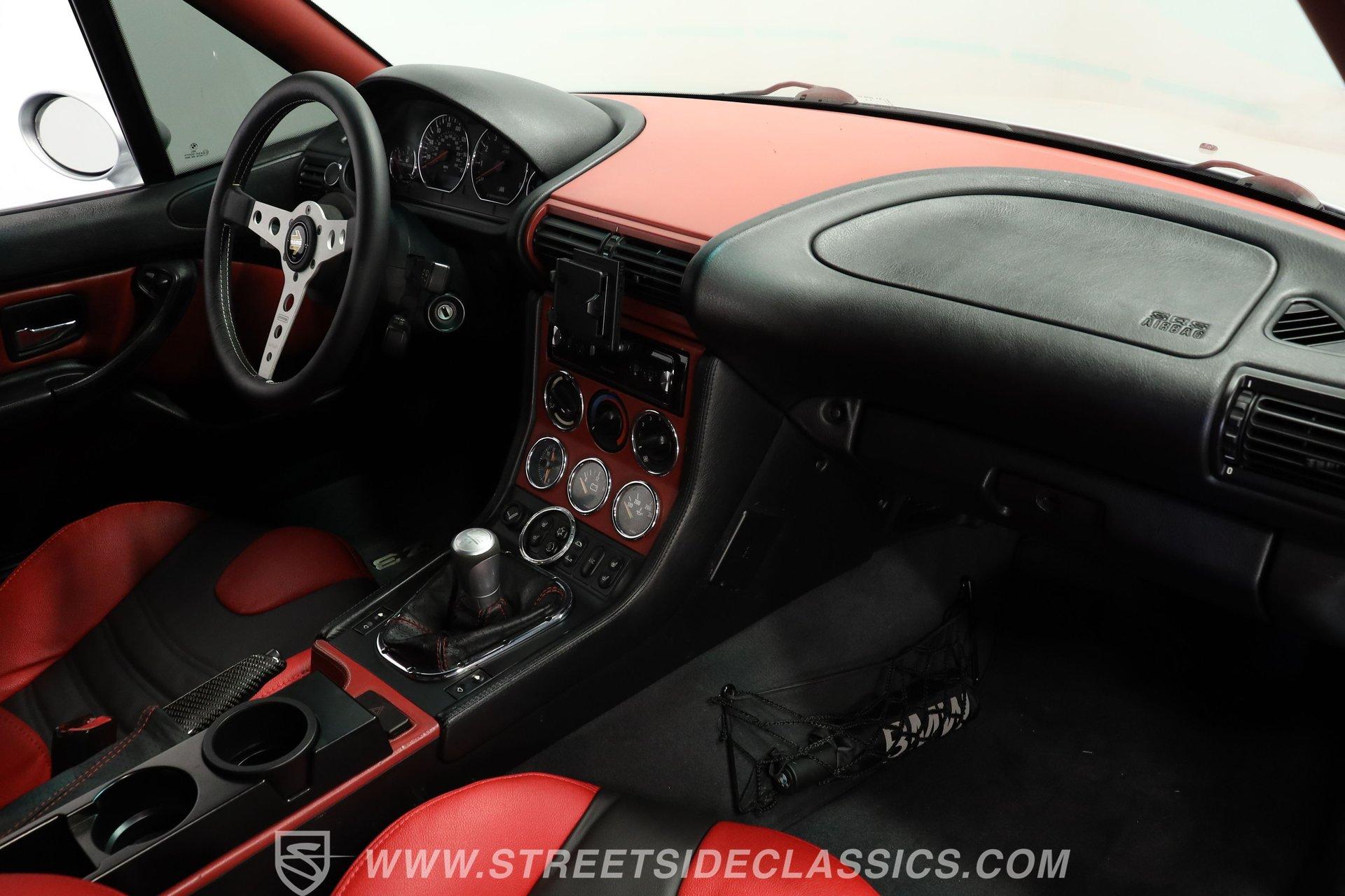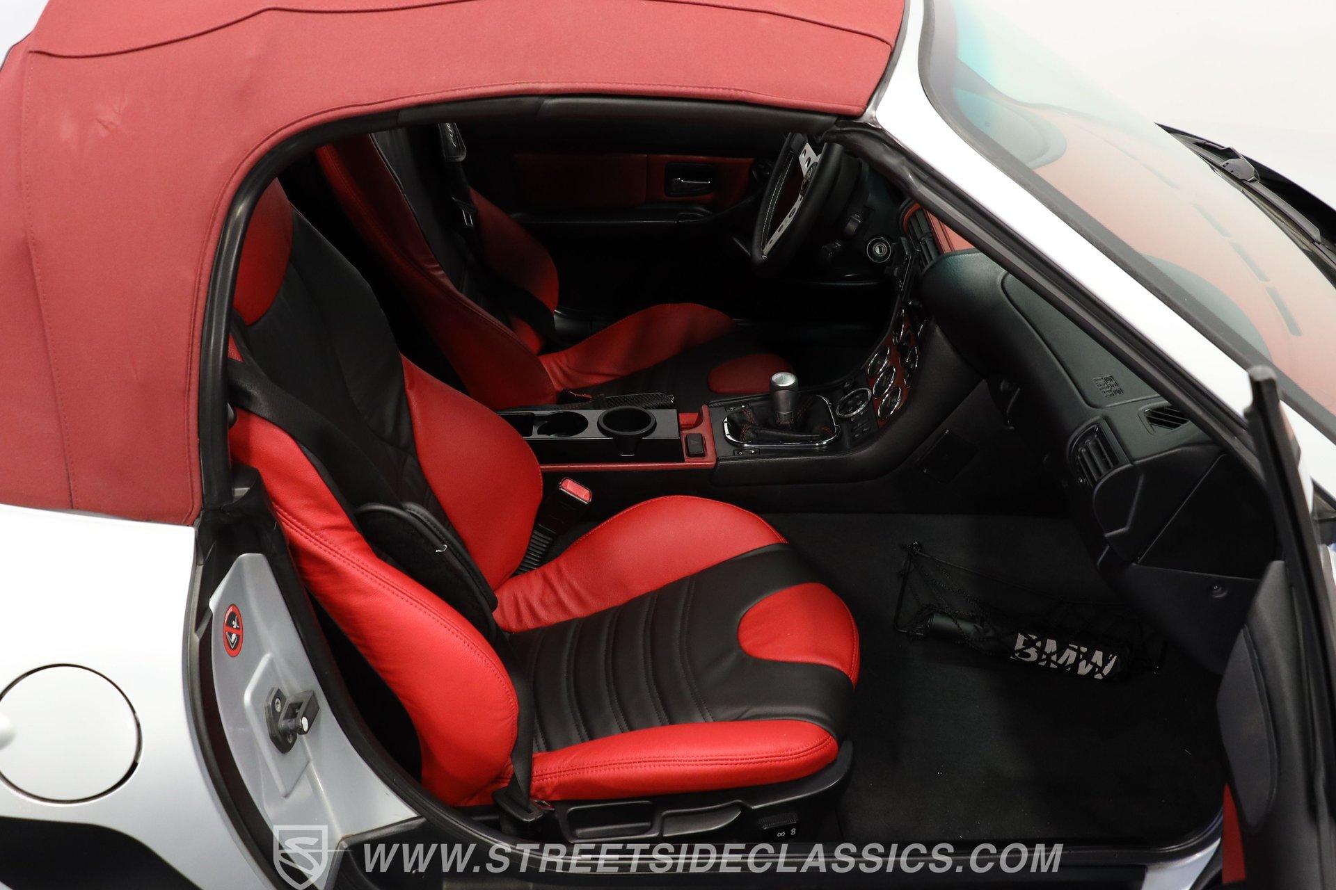 Designed for pure driving joy, the 1999 BMW Z3 M Roadster wears Arktissilber Silver paint with precision and purpose. Built as a high-performance variant, this roadster combines aggressive styling with track-worthy capabilities. The long hood stretches forward while the short deck creates that unmistakable sports car profile, and the burgundy-colored cloth convertible top tucks away cleanly for open-air excitement. Those 17" wheels fill the fenders perfectly, wrapped in performance tires measuring 225/45ZR17 up front and 255/40ZR17 at the rear. Dual exhausts exit the back, announcing this is no ordinary Z3. The red and black leather interior creates the perfect environment for serious driving. Sport bucket seats with heating capability hold the driver and passenger firmly during cornering maneuvers. Everything about the layout puts the focus on the driving experience – from the upgraded MOMO steering wheel, perfectly positioned console shifter for the manual transmission to the well-placed controls. The power convertible top operates with a simple switch, while the Pioneer stereo provides soundtrack options for your drive. Additional safety comes from side airbags, and the power steering makes for easy maneuverability. Acceleration comes courtesy of the 3.2L DOHC 6-cylinder engine that produces impressive output through the 5-speed manual transmission. The rear-wheel drive setup gives this roadster genuine sports car reflexes, with balance and poise through every curve. Four-wheel power disc brakes bring everything to a controlled stop when needed. The stock suspension maintains that ideal balance between performance and control that made these roadsters favorites on both road and track. HIGHLIGHTS: 3.2L DOHC 6-Cylinder Engine 5-Speed Manual Transmission Electronic Fuel Injection 4-Wheel Power Disc Brakes Stock Suspension Dual Exhaust RWD Drivetrain Arktissilber Silver Paint Burgundy Cloth Convertible Top 17-Inch Wheels MOMO Steering Wheel Black and Red Leather Interior Power Convertible Top Console Shifter Pioneer Stereo Side Airbags Power Steering 77,073 Believed to be Original Miles German performance meets open-air excitement in the 1999 BMW Z3 M Roadster with its potent 3.2L six-cylinder and precise 5-speed manual. Few machines offer the same driving connection as this exciting roadster - created when driving feel mattered above all else. Call today! Be sure to ask about our services offered; Financing, Vehicle Protection Plan, Insurance, and Transportation to your driveway!