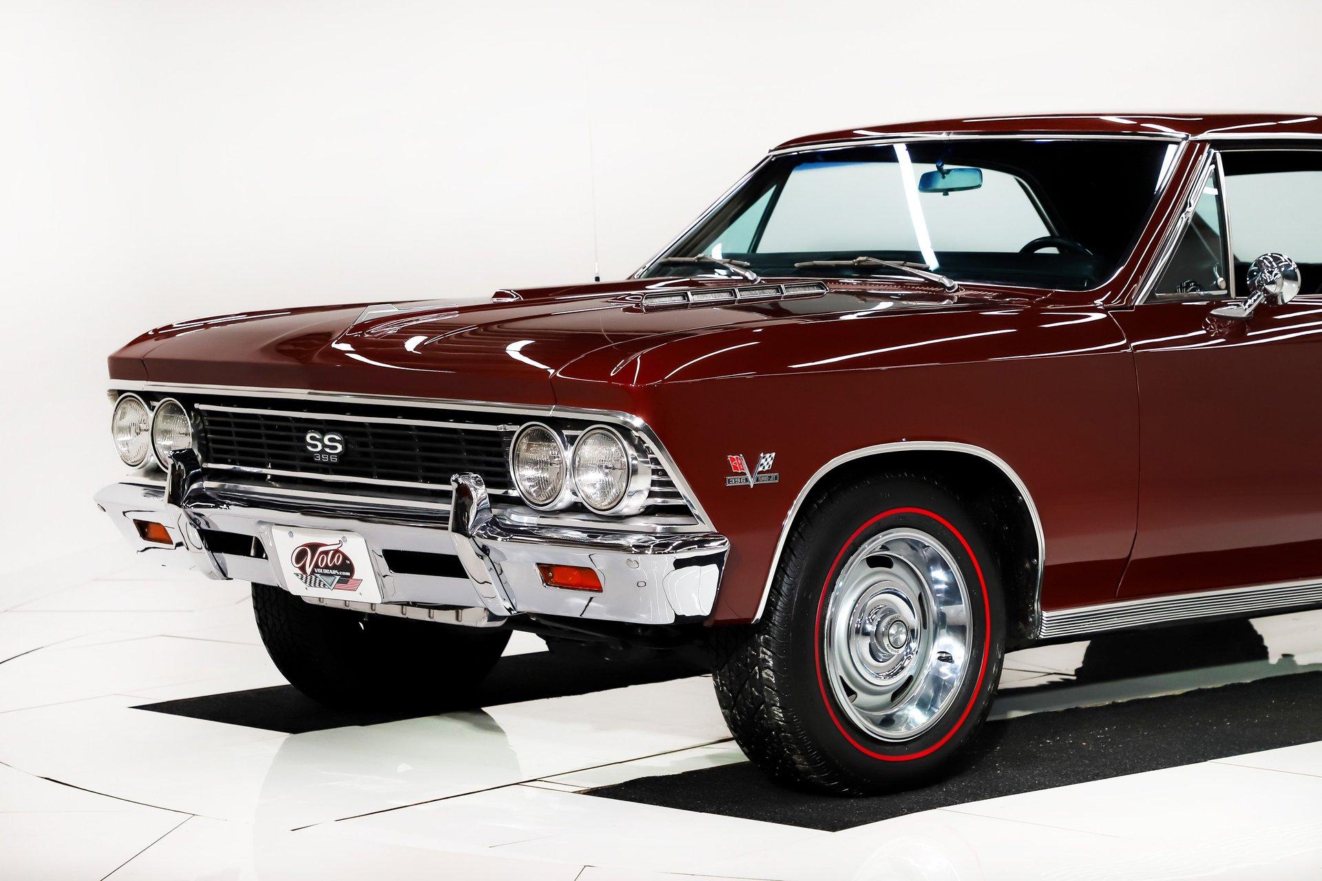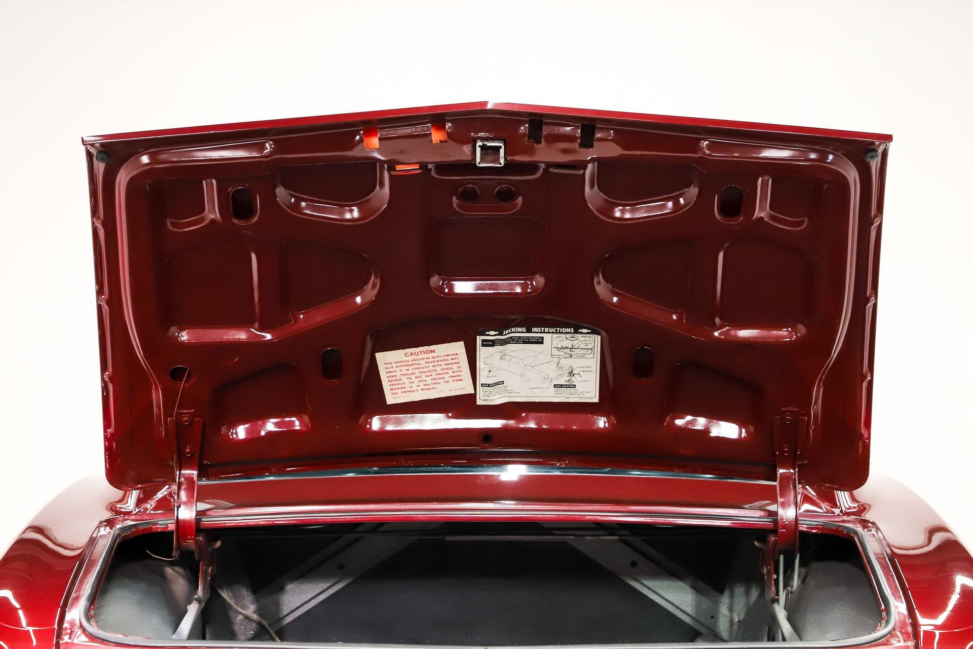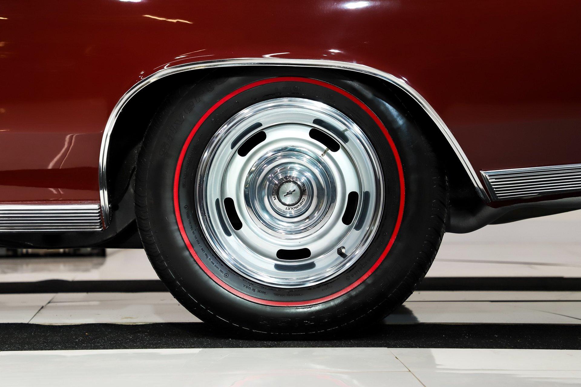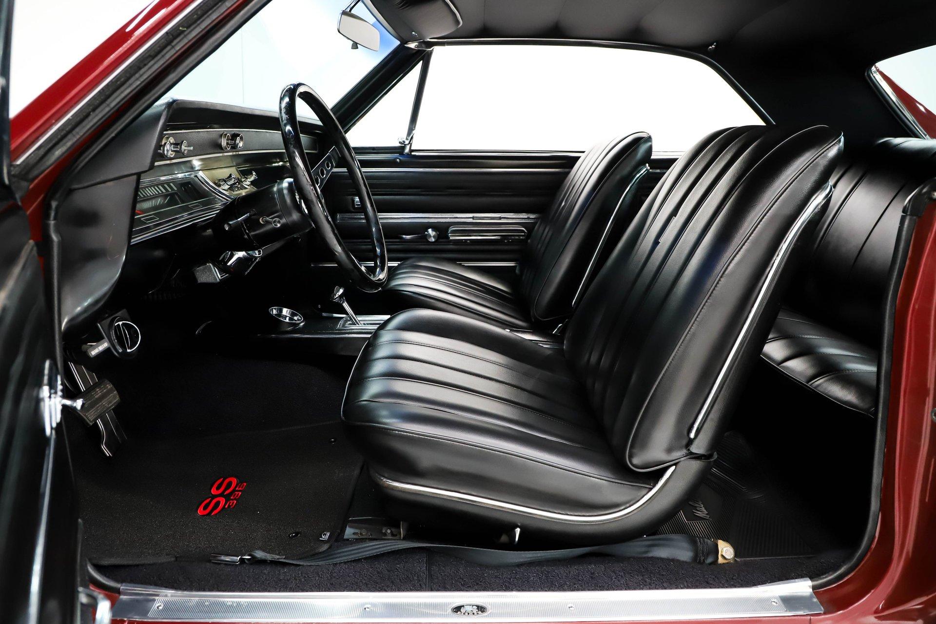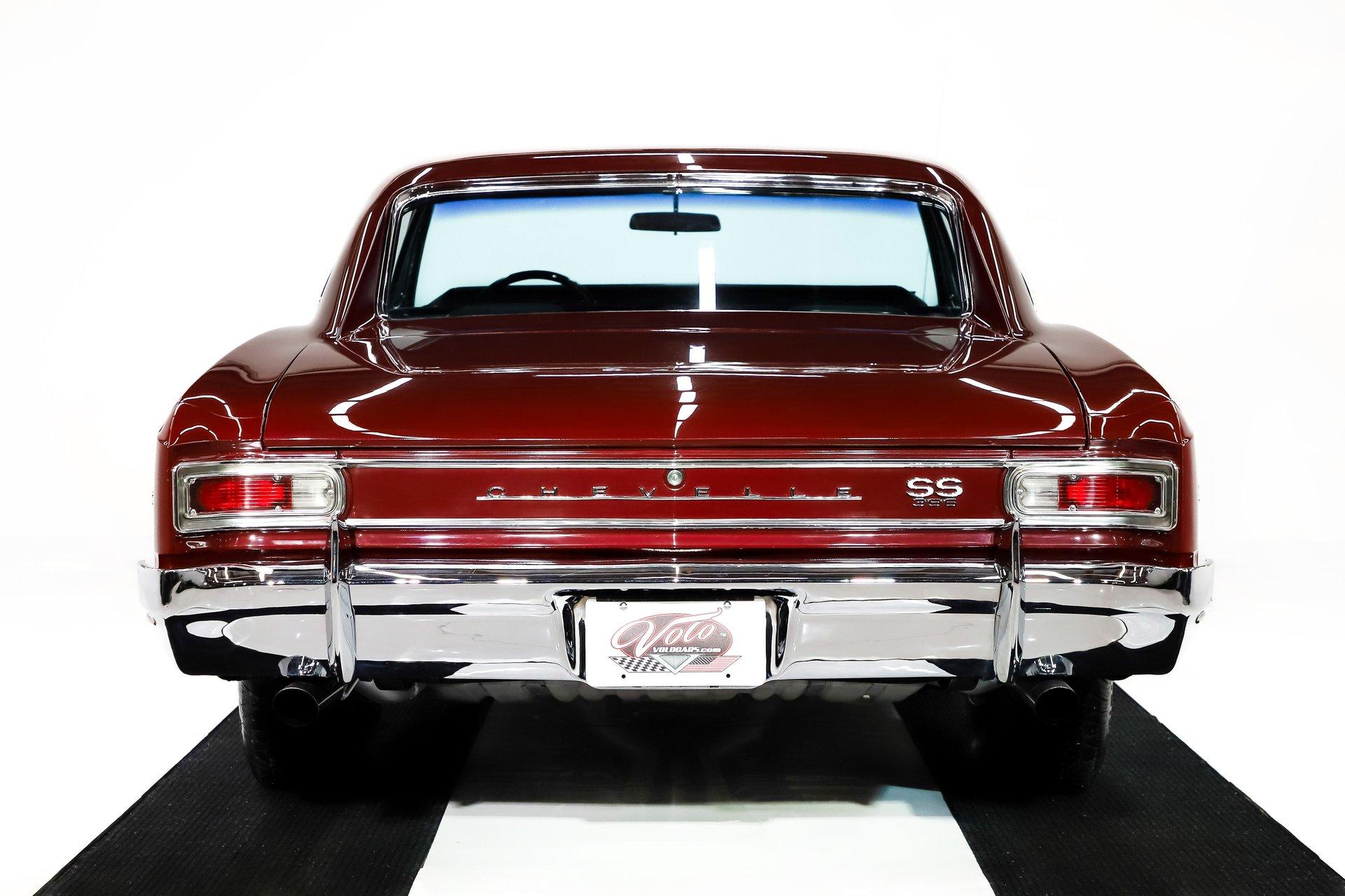 INTRODUCTION: Just 54,000 original miles on this authentic SS! #s matching, retaining its original metal, and loaded with factory options. Cars like this don’t come along often. EXTERIOR: The body is amazing! Absolutely straight and fits right, the doors shut like a new car! It appears to have its original rust free metal, the jambs still have original paint! One time exterior repaint in its original Madeira Maroon color without a vinyl top. The paint presents beautifully with a glossy finish, although it is an older paint with imperfections. The trim is shiny and straight, the bumpers have been rechromed. It has optional bumper guards, rare bowtie remote mirror and original antenna. The windshield is original which helps verify original miles, it also has correct T3 headlamps. It's rolling on a set of rally wheels with radial redline BFG tires. INTERIOR: This very well cared for interior is loaded up with some nice features! When you're sitting on the factory bucket seat and shifting gears down at the center console that happens to have the optional clock, you will be looking at a very clean dash that features factory gauges and the “knee knocker” tachometer. You can adjust the tilt steering column to optimize your comfort. The door panels and armrests all look immaculate, you'll notice the lack of window cranks and that's because this car also features factory power windows. It also has a couple upgrades as well: a retro stereo fits right in the factory hole and your tunes will be played through 6x9 speakers in the rear shelf. It also a neatly added air conditioning below the dash and the original heater control panel is upgraded with electric slides instead of the old cables. From carpet to headliner this is a very nice interior. ENGINE COMPARTMENT: This is the original VIN # matching 396-325hp engine for this car. It has a letter H stamped on its pad which indicates it came from the factory with a Holley intake which it still has. It has been upgraded with a new dual feed Holley carb with electric choke. A fresh tune was just done including a new distributor, HEI ignition, plugs, wires and coil. The valve cover and oil pan gaskets were recently replaced too. In addition to the factory power steering and power brakes it also has some upgrades: a modern Gen IV heat and air conditioning system, an aluminum radiator with dual electric fans and a polished Tuff Stuff alternator. It's complete: the squirters are hooked up, it has hood insulation and original cowl tag. TRUNK COMPARTMENT: Under the trunk lid and the jamb look great and are believed to be original paint. Inside is real clean original metal with a nice gray spatter finish. It has reproduction stickers, trunk mat, tire cover and weatherstrip. It's complete with the spare and jack assembly and even has a working optional trunk light. UNDERSIDE: Wow, the original floors, braces, rockers and chassis components are clean, smooth, rust free metal! It recently had new ball joints, front control arm bushings and KYB gas shocks in back. The dual exhaust has new Flowmaster mufflers. The brakes are in excellent working order, the e-brake is hooked up. Looking up at the motor it is clean Chevy orange with the correct fuel pump, starter and screw on oil canister. The original Powerglide automatic trans sends the power back to its original 12 bolt rear end with 3.31 posi gears. There's even some LED underglow lights you can operate with a remote! SERVICE: We take pride in our cars and reputation. Therefore, we built a 2 million dollar, 10,000 square ft service center, and hired a team of technicians to service the essentials on every car we sell. CONCLUSION: We sold this car a couple years ago to a customer in California, he made all the upgrades and now it's ready for you to drive and enjoy! Vehicles are displayed in a museum setting. Admission applies without an appointment and is refunded with purchase, including a one-year museum membership. ☎️ 815 385 3644 9-5 central ? Sales@volocars.com Answered ASAP Air conditioning Power steering Power brakes 3.31 posi Power windows Bucket seats Console Seatbelts Factory gauges Knee Knocker Tachometer Clock Retro stereo Floor mats Remote mirror Tilt column Bumper guards Rally wheels Radial redline tires