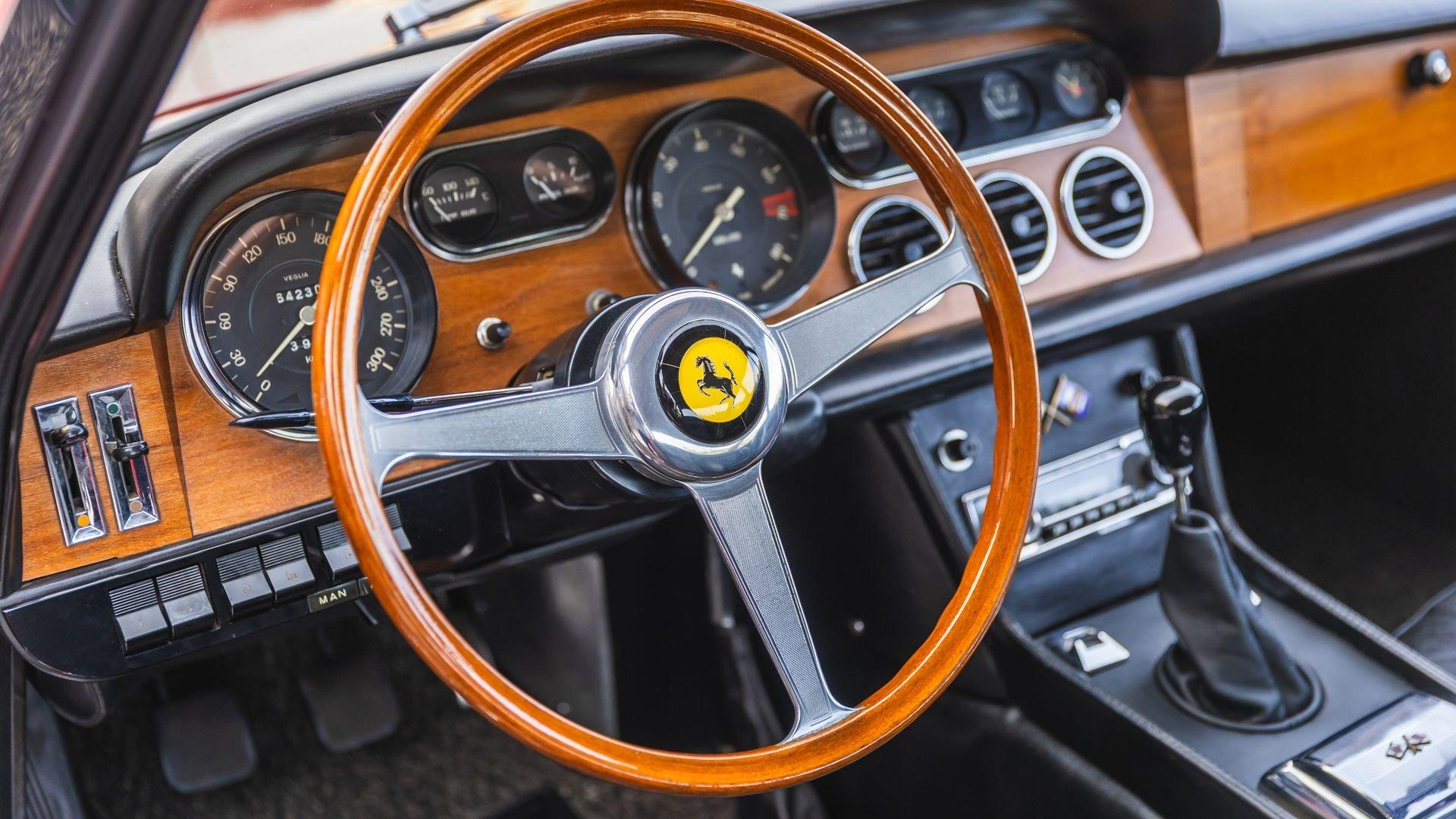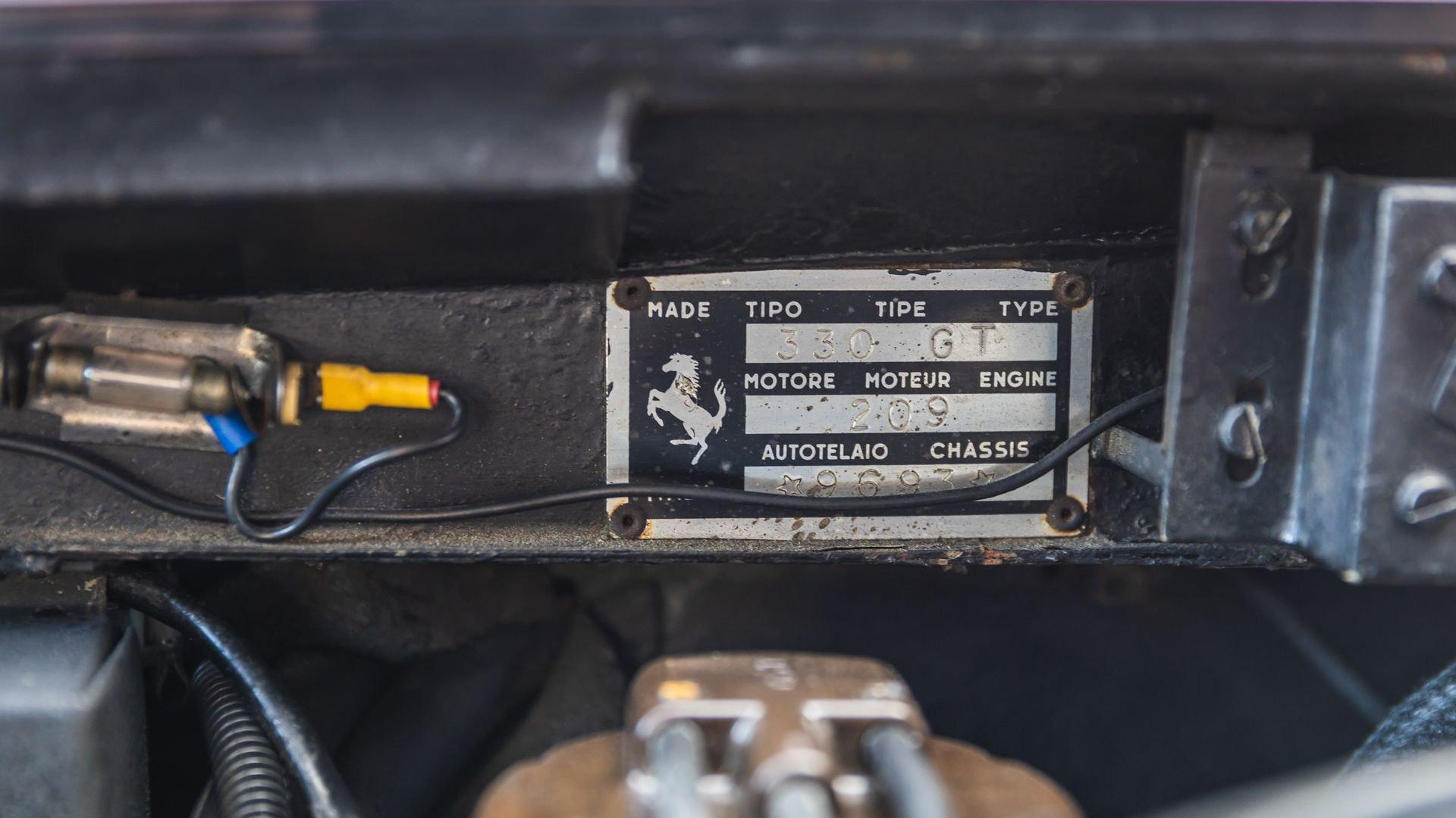 Chassis No. 9693 Engine No. 9693 Chassis 9693 is a sought-after two-headlight Series II model introduced in mid-1965 and produced in just 460 examples. Completed in March 1967, it was dispatched from Maranello finished in Argento (Silver) over Beige Scuro leather and was delivered new to M. G. Crepaldi Automobili S.a.s. in Milan. With its clean Pininfarina lines and supple ride, the 330 GT 2+2 offered a sophisticated rather than showy take on V12 motoring, engineered to carry four in genuine comfort without sacrificing the effortless pace expected of a Colombo-powered Ferrari. The 330 GT Registry notes that chassis 9693 remained in Italy before being imported to the United States in 1975 by enthusiast owner and retired U.S. Air Force Colonel Duffy Koeck of Tempe, Arizona, with images on file depicting Duffy and his wife, Evelyn, alongside the Ferrari. The 330 quickly became Koeck’s pride and joy, and during his retirement he doted on the car while becoming friends with Bob Wallace, the famed Lamborghini test driver and widely respected Italian-car mechanic. Koeck was welcomed into Wallace’s circle and was even permitted to use his Ferrari service shop in Phoenix, where he could work on the 330 under Wallace’s guidance. In May 1978, chassis 9693 benefited from a major mechanical recommissioning, including an engine and gearbox rebuild carried out by Wallace at 72,081 kilometers. Koeck's hand-written maintenance log (black book) documenting this work and his meticulous care of the Ferrari remains with the car today. Colonel Koeck’s passion for speed was not confined to the sleek aircraft he flew for the Air Force. Transforming his Ferrari into a weekend racer with number roundels affixed to its doors, he campaigned the 330 at Ferrari Owner’s Club events, including a Second in Class result at the Ferrari Club of America’s 1981 Virginia City Hillclimb in Nevada, and on-track participation during Monterey Car Week at Laguna Seca in 1984. By this point, the car had been refinished from its original Argento and Beige Scuro livery to classic Rosso Chiaro (Light Red) over black trim, a color combination it maintains today with an honest patina consistent with decades of use and careful enjoyment. Offered for sale by Koeck in 1987, chassis 9693 passed through a small number of dedicated U.S. owners, including Oregon-based caretaker George E. Crandall and later Brad Farr, before resurfacing for sale again in 2014. Mr. Crandall did three trips with his brother to the Historic Races in Monterey and many club trips in Eastern Washington, writing that he found the car amazingly reliable (correspondence included). Chassis 9693 was subsequently acquired by Thomas Choi, CEO of Hong Kong’s Asia Broadcast Satellite, during which it was kept in Hudson, New York, and then purchased in early 2015 by the current caretaker. Since 2015, the 330 has been consistently maintained for reliable touring, and it has since covered approximately 8,000 trouble-free kilometers under current ownership. Most recently, a significant mechanical investment was made in early 2025, including a valvetrain rebuild, timing chain adjustment, new clutch and pressure plate, transmission rebuild, new brake calipers by Terry Girone of Vintage Autowerks, and a complete fluid service. In preparation for the sale, the Ferrari also received a fresh service by J Frazar Motorcars in Savannah, Georgia, that included an oil and filter change, a brake-fluid flush, and a transmission-fluid flush. Today the car shows 64,230 (understood to be 164,230) kilometers and is presented as a solid, dry-climate example with a rust-free structure, undamaged frame, original belly pan, and charming patina that traces back to its 1980s refinish. It now rides on Borrani wire wheels, with its original and refinished 10-hole cast light alloy wheels included, and it is accompanied by extensive provenance in the form of photos, period literature, letters from past owners, additional parts, and two binders of records documenting nearly five decades of care. With its desirable two-headlight specification, decades of documented care, and its matching-numbers status, chassis 9693 presents as a fine example of an exclusive grand touring Ferrari and, with room for four, would make a practical companion for FCA tours and events.