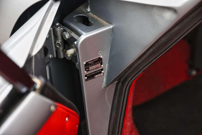 Offered here at Race Retro 2026 is a smartly executed homage to the Porsche 356A GT Lightweight, finished in Silbermetall (Silver Metallic R608) with red leather upholstery and matching carpets. According to official Porsche documents within the history file, chassis #100193 was supplied new to Munich in 1957, finished in a similar colour combination and originally equipped with a 60bhp engine.