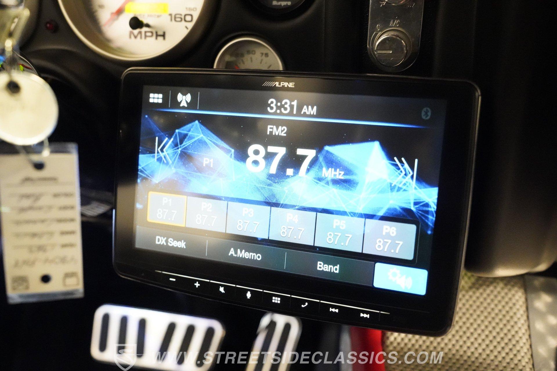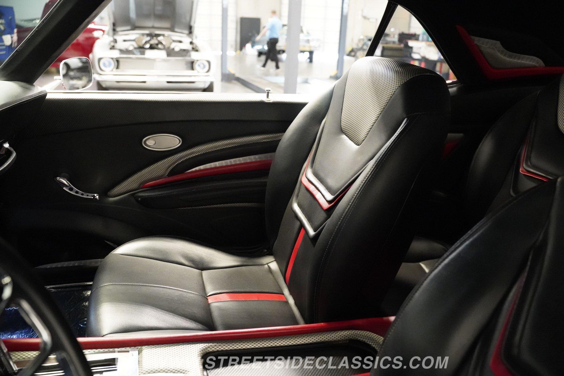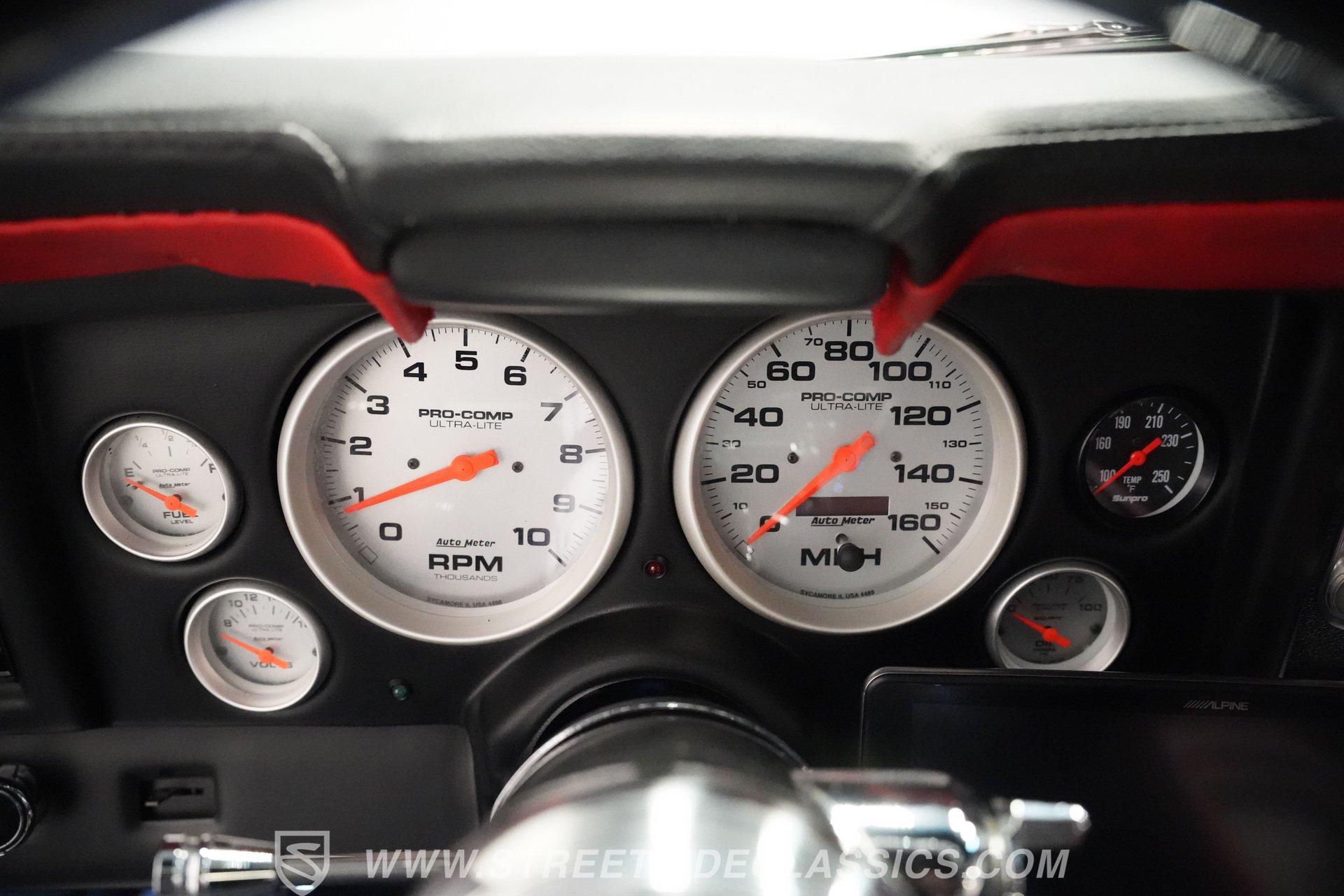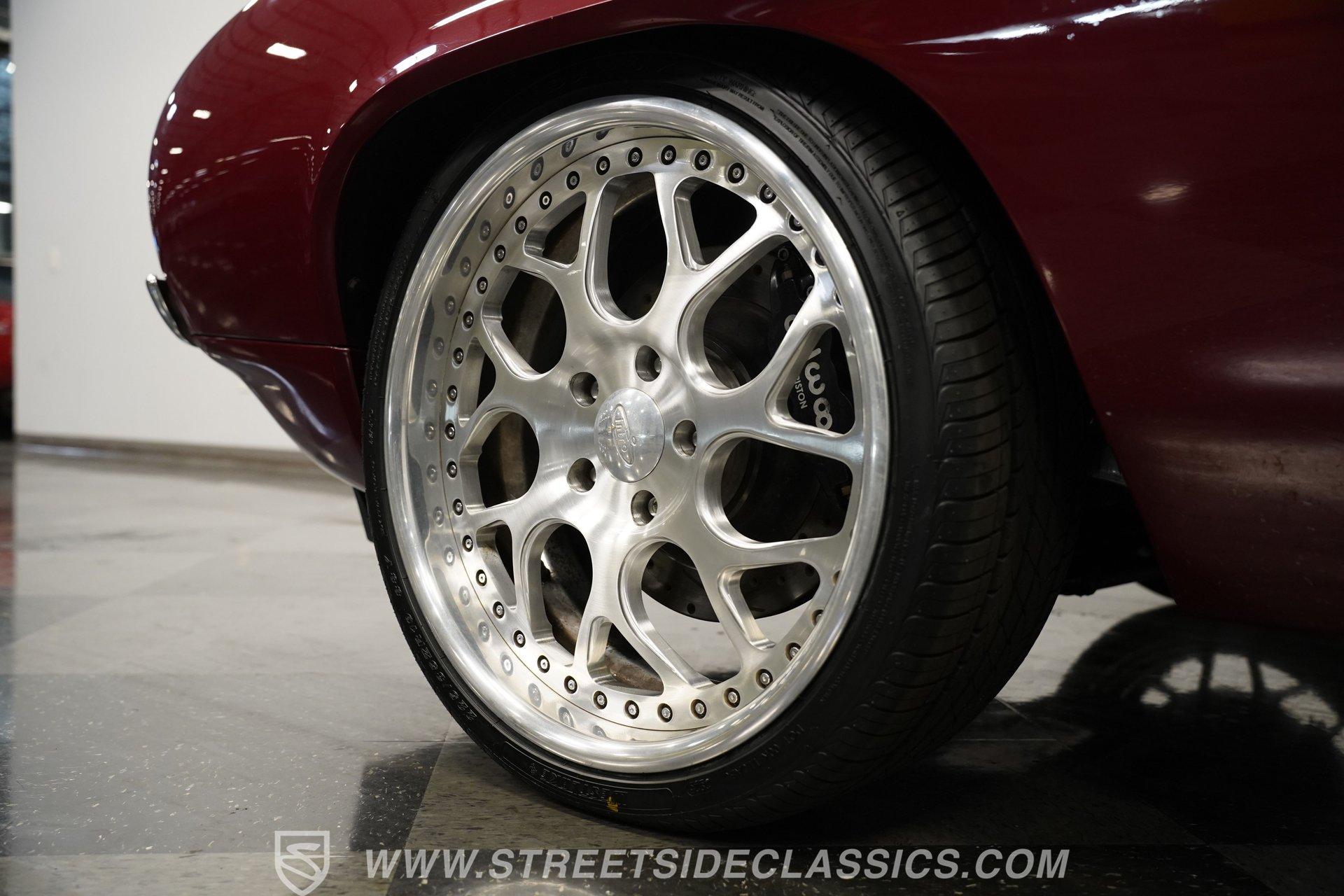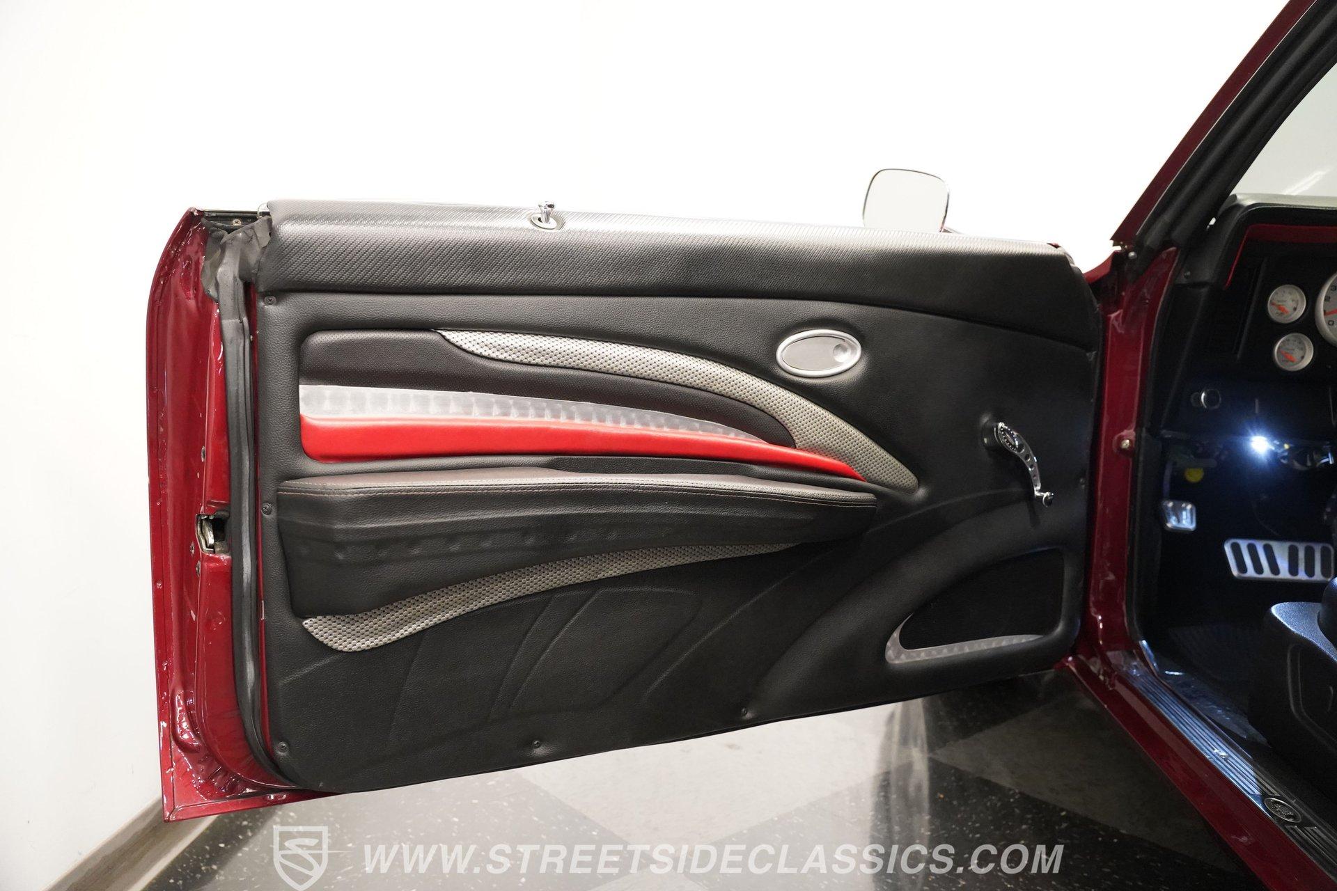 When it comes to muscle cars, there is nothing quite like a first-generation Camaro. Power, prestige, and pizazz begin to describe this beautiful 1969 Chevrolet Camaro SS Tribute. Fully repainted in a deep burgundy red exterior, complete with twin full-length black racing stripes, this racy restomod sports the correct grille and rear SS badges, along with its ducktail spoiler, cowl hood, and lowered stance, all complemented by its big polished Intro wheels. But before we get to the powerplant part of the fun, first let us introduce you to this exquisitely redone custom interior. Upgraded with premium black vinyl with red inserts for both the front and rear seats, this Camaro also features a power-assisted, six-spoke steering wheel that sits just ahead of a set of white-faced Auto Meter gauges set against a matte black dash panel. An Alpine AM/FM/AUX/Satellite touchscreen offers Bluetooth connectivity, giving you all of the entertainment options available to modern vehicles. A staple-style shifter and padded expletive handle give both the driver and passenger something to hold onto when this Pony Car really digs in. Under that aggressive hood, we find a clean engine bay with a powerful 350 cubic-inch V-8. A single four-barrel Holley Quick Fuel carburetor feeds an aluminum Weiland intake manifold, while a set of Patriot long-tube headers channels exhaust gases through a true dual exhaust, complete with FlowMaster mufflers for that unmistakably authentic muscle car sound. Power from that small block gets funneled through a 700R4 four-speed automatic transmission before heading out to the ten-bolt rear end. The aforementioned 20-inch Intro wheels are shod in 265/35ZR-120 in the rear, while staggered 225/35ZR-19 Westlake SA-07 rubber covers 19-inch wheels up front. HIGHLIGHTS: Full Burgundy Red Repaint Black Racing Stripes SS Badges SS Spoiler Cowl Hood 350ci V8 Holley QFT Carb Weiland Intake Patriot Long Tubes Dual Exhaust FlowMasters 700R4 Four Speed Auto Ten Bolt Rear Four Wheel Discs Cross Drilled Slotted Rotors Wilwood Calipers Tubular A-arm Front Suspension Front Coilovers Sway Bars Rear Hotchkis Sport Suspension Lowered Power Steering Fully Redone Custom Interior Premium Vinyl Seats AC Auto Meter Gauges Custom Wheel Alpine Touchscreen Satellite Radio Bluetooth This 1969 Chevrolet Camaro SS Tribute isn't just a straight-line monster. Thanks to a tubular A-Arm front end suspension, complete with adjustable coilovers and a sway car, and a rear setup featuring a Hotchkis Sport Suspension, sway bar, and Bilstein shocks, this Pony Car can gallop through the twisties too. A set of four-wheel disc brakes featuring cross-drilled and slotted rotors and Wilwood calipers stands ready to scrub off speed whenever necessary. If you enjoy the thrill of a first-gen Camaro as much as we do, then don't wait any longer because this beautiful burgundy boulevard bruiser won't be around long. Call today!