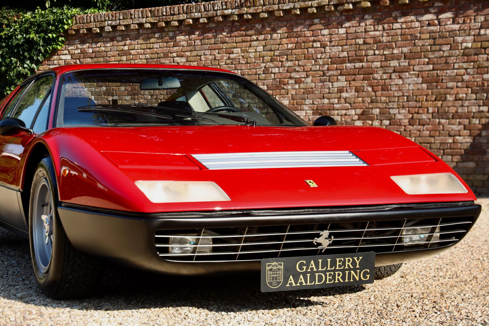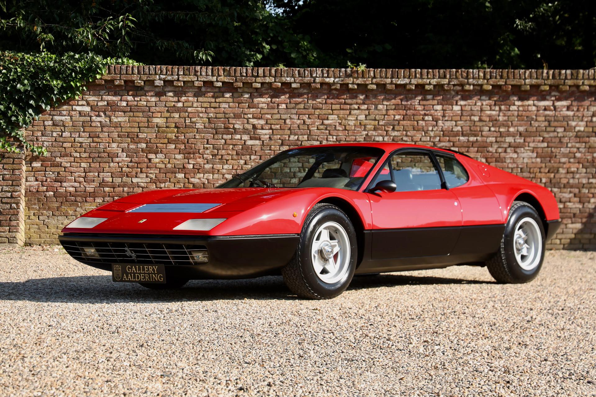 A wonderful Ferrari 365 GT4/BB aka the Berlinetta Boxer. This should not be confused with the later 512BB, which was modelled on the 365. The 365 BB was the first series produced Ferrari with a mid-engined 12 cylinder boxer engine. Over a three year course only 299 LHD Boxer Berlinetta Boxer's left the factory, making this BB the rarest of them all. Many details differ from the later 512 BB, like the six exhaust pipes, the characteristic 365 six rear taillights amongst various other body measurements and details. Production of this particular example was completed on the 5th March 1974. On the 27th May 1974 the Ferrari was delivered to the Italian Ferrari dealer Motor S.p.A. in Bologna. We still have a copy the original first registration document. Thanks to excellent care and maintenance this Ferrari has never been restored. The wonderful bodywork is nice and straight, well aligned with fine paintwork. The original underbody is completely rust-free. It has a 'Rosso' finish with a black leather interior trim. The interior trim is in a superbly original condition and excludes a lovely patina. It also has the popular 'Daytona' seats and Borletti aircon. Beautifull and fully original interior, first leather, original dashboard etc.! Original engine, perfectly working and driving. A legendary and now very rare first series Ferrari 365 GT4/BB Berlinetta Boxer. Gallery Aaldering is Europe's leading Classic Cars specialist since 1975! Always 300-350 Classic and Sportscars in stock, please visit www.gallery-aaldering.com for the current stock list (all offered cars are available in our showroom) and further information. We are located near the German border, 95 km from Düsseldorf and 90 km from Amsterdam. So easy traveling by plane, train, taxi and car. Transport and worldwide shipping can be arranged. No duties/import costs within Europe. We buy, sell and provide consignment sales (selling on behalf of the owner). We can arrange/provide registration/papers for our German (H-Kennzeichen, TÜV, Fahrzeugbrief, Wertgutachten usw.) and Benelux customers. Gallery Aaldering, Arnhemsestraat 47, 6971 AP Brummen, The Netherlands. Tel: 0031-575-564055. Quality, experience and transparency is what sets us apart. We look forward to welcoming you in our showroom