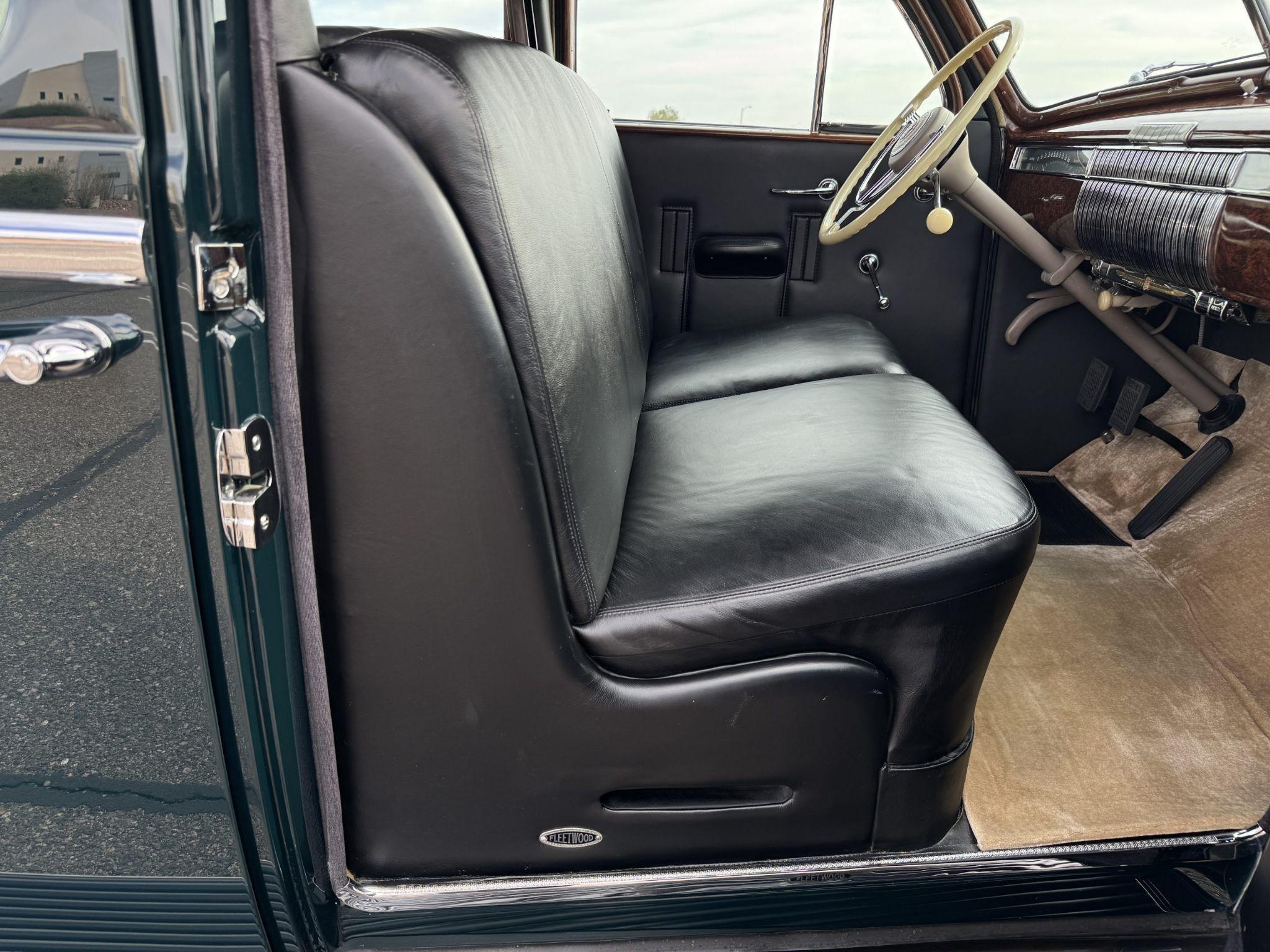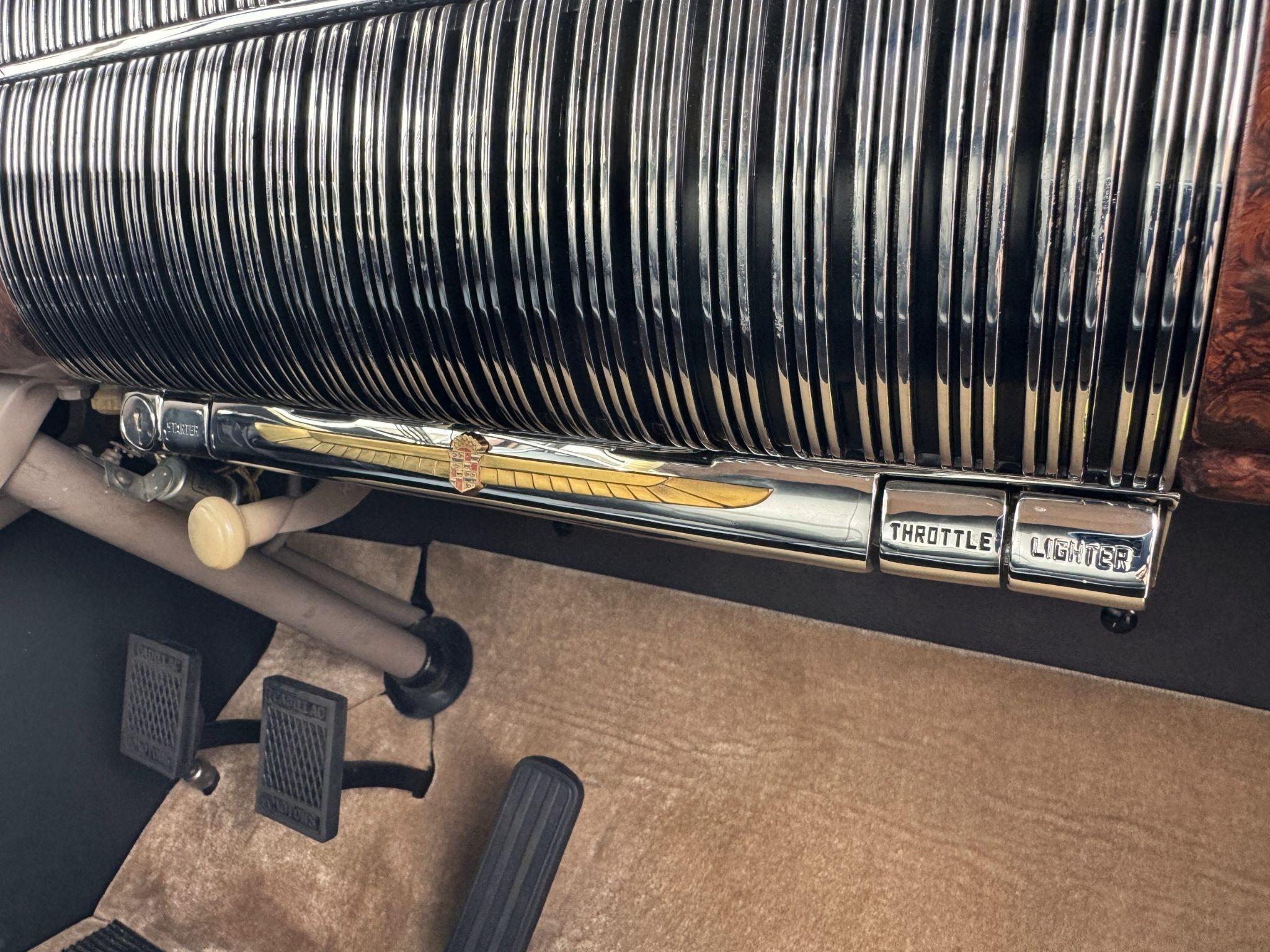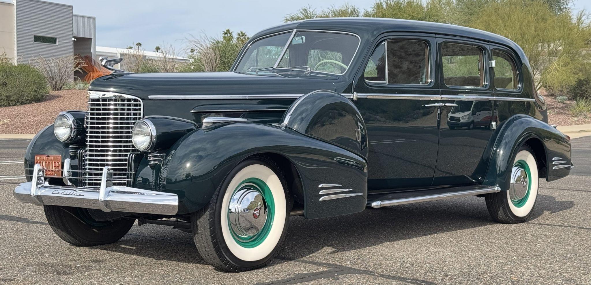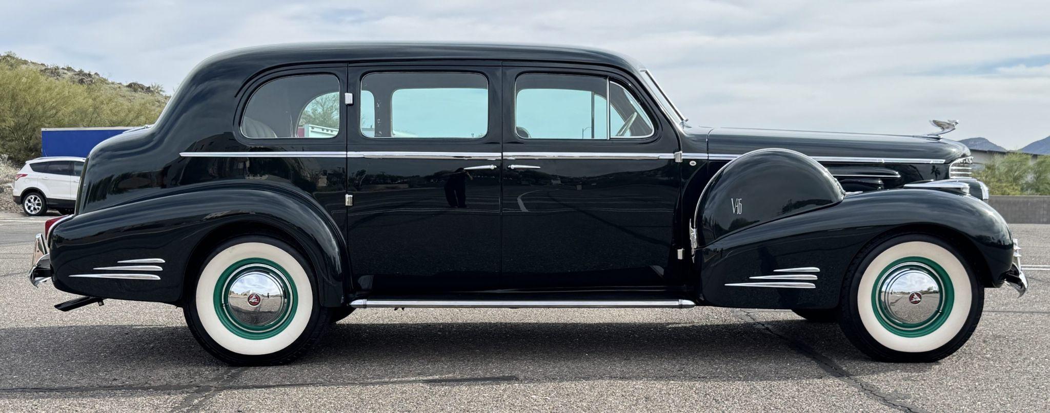 The 1940 Cadillac V-16 Imperial Sedan Model 9033 represents the final and most refined expression of Cadillacs legendary sixteen-cylinder era, combining Art Deco presence with unmatched mechanical sophistication. Powered by the original 431 cubic inch V-16 and configured as a seven-passenger Imperial Sedan by Fisher-Fleetwood, this example presents in excellent restored condition following a comprehensive frame-off restoration completed in 2018. With fewer than two dozen built and only five known to survive, the Cadillac is best suited for premier concours display, CCCA events, and significant collections focused on prewar American luxury. This Cadillac is documented as the ninth Model 9033 Imperial Sedan produced for the final year of the iconic V-16 engine, from a total production run of just 20 examples in 1940 with only five remaining today. The Cadillac was purchased in 1953 by John Confer of Tucson, Arizona, who enjoyed the Cadillac regularly for many years before storing it with the intention of eventual restoration. The current owner acquired the Cadillac in 2011 with 54,551 miles indicated and undertook a meticulous frame-off restoration that concluded in 2018. Since completion, the Cadillac has been selectively shown at CCCA and Concours events, earning recognition for both authenticity and presentation, and now shows 54,558 miles. The Imperial Sedan is finished in its original Cavern Green, presenting with exceptional gloss, depth, and surface quality that highlight the Fleetwood bodys dramatic scale and Art Deco proportions. The fully rechromed grille, brightwork, and trim are in excellent condition, anchored by the iconic Flying Goddess hood ornament that also serves as the hood latch release. The headlights are fitted into the body and appear slightly asymmetrical. Twin side-mounted covered spare tires reinforce the formal profile, while bright green painted wheels fitted with V-16 chrome hubcaps and wide whitewall tires complete the period-correct presentation. The interior reflects Cadillacs pinnacle of chauffeur-driven luxury, with a black leather front compartment trimmed with tan carpeting that presents in very good to excellent condition. The rear passenger compartment is upholstered in tan broadcloth in excellent condition and configured with two captain-style chairs, dual folding jump seats, and plush carpeting with folding footrests, creating a serene and formal traveling environment. Burled walnut window surrounds, period-correct Art Deco lighting, and a functioning roll-up division security plate glass provide both elegance and acoustic isolation. Instrumentation, including the sweeping 100-mph speedometer, gauges, and dash clock, remains functional, while the original Motorphone intercom system is present though not currently operational. Power is provided by the original Series 90 L-head 431 cubic inch V-16 engine, equipped with dual carburetors, twin fuel pumps, and twin distributors, paired with the original three-speed synchromesh manual transmission with column shift. The drivetrain has been thoroughly cleaned, serviced, and maintained since the restoration, delivering the hallmark smoothness and near-silent operation that defined Cadillacs V-16 flagship. Independent front suspension with coil springs, semi-elliptic rear leaf springs, and four-wheel hydraulic drum brakes provide a composed, boat-like ride quality, with the steering box rebuilt in 2024. This Cadillac remains a mechanically sorted and historically significant example of prewar American engineering at its absolute peak. The Hagerty Value for a 1940 Cadillac V-16 Imperial Sedan Model 9033 is $200,000 for a No. 1 example and $145,000 for a No. 2 example. We have this priced fairly for our client and the buyer as a 1- for its condition, preservation and provenance. The Cadillac comes with authenticity, shop, owners and manufacturing manuals, restoration and maintenance records, and a soft car cover. For more information and details, please call or text Kendi Brown at 1.623.404.9042 or email us at sales@classicpromenade.com . This 1940 Cadillac V-16 Model 9033 Imperial Sedan is available for inspection at our showroom in Phoenix. We are pleased to offer FaceTime or WhatsApp live video inspections, and we help coordinate shipping worldwide. We also have financing partners if you are interested in financing.