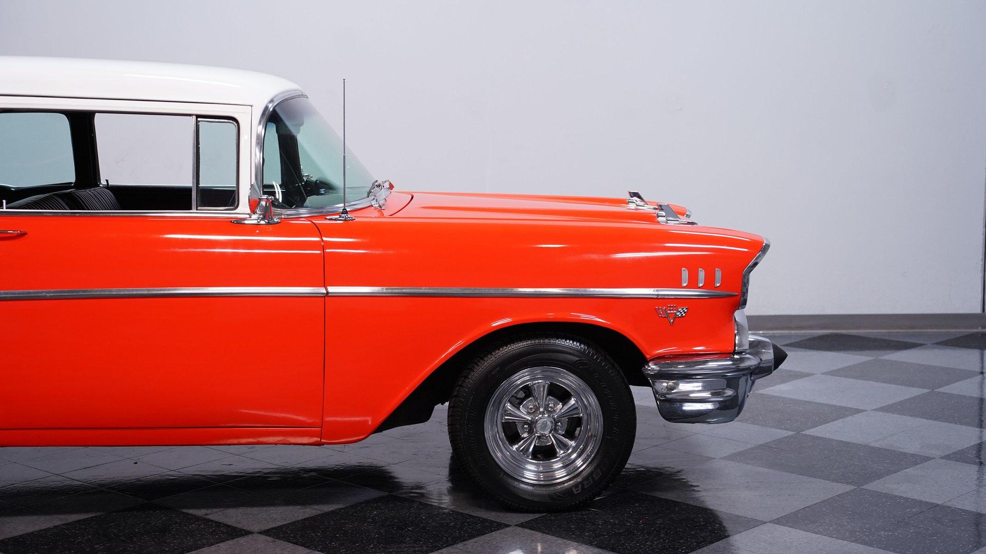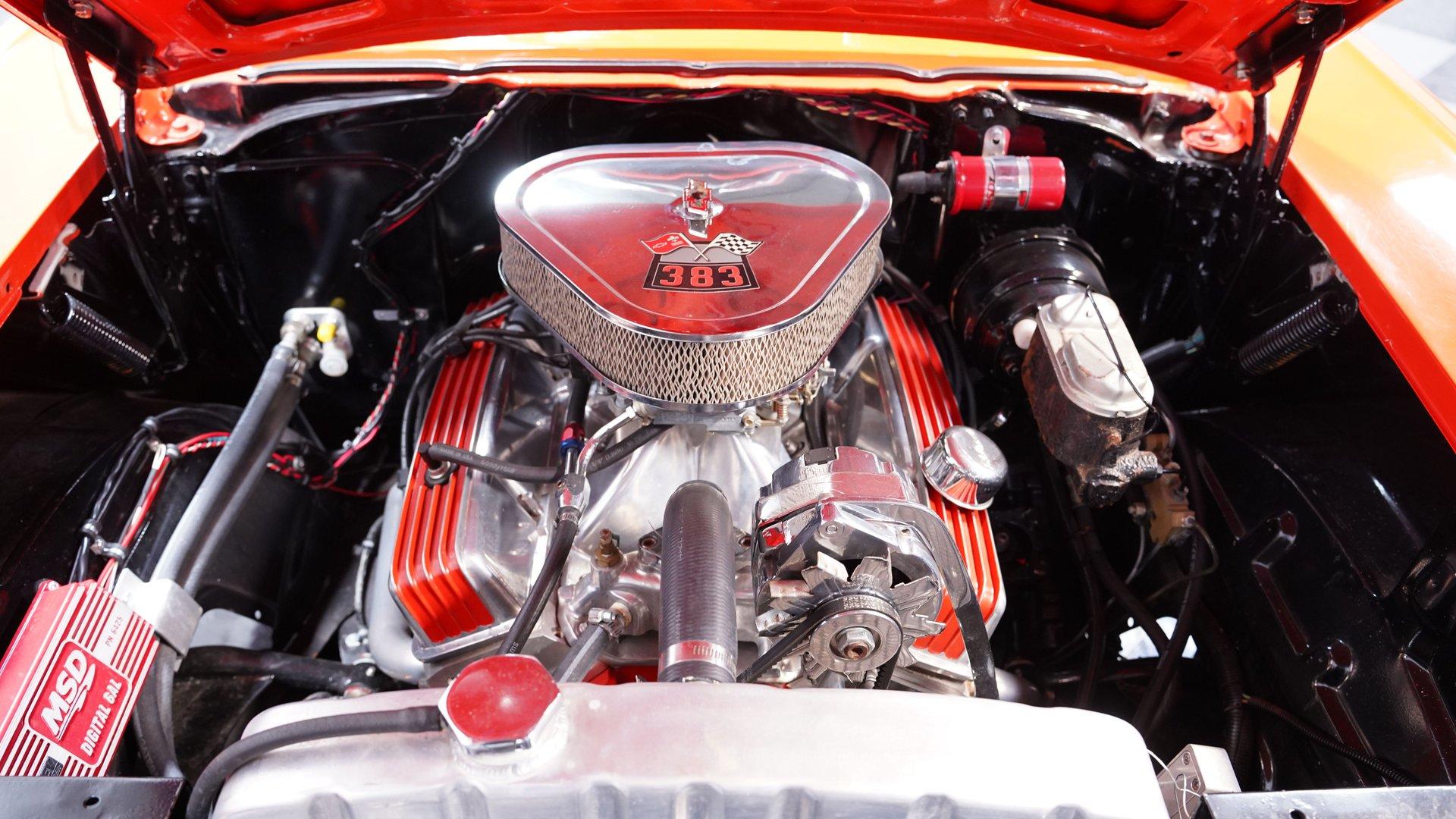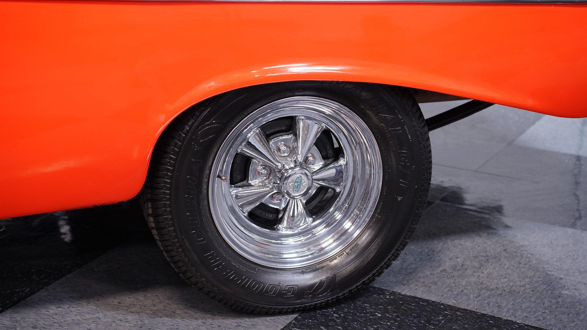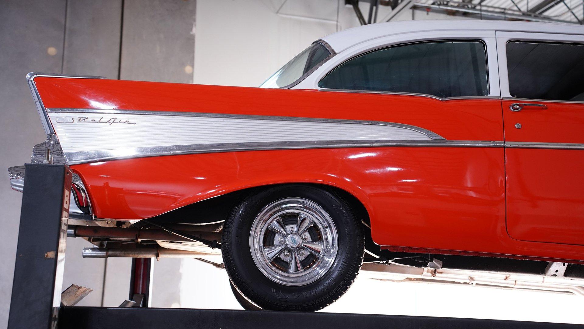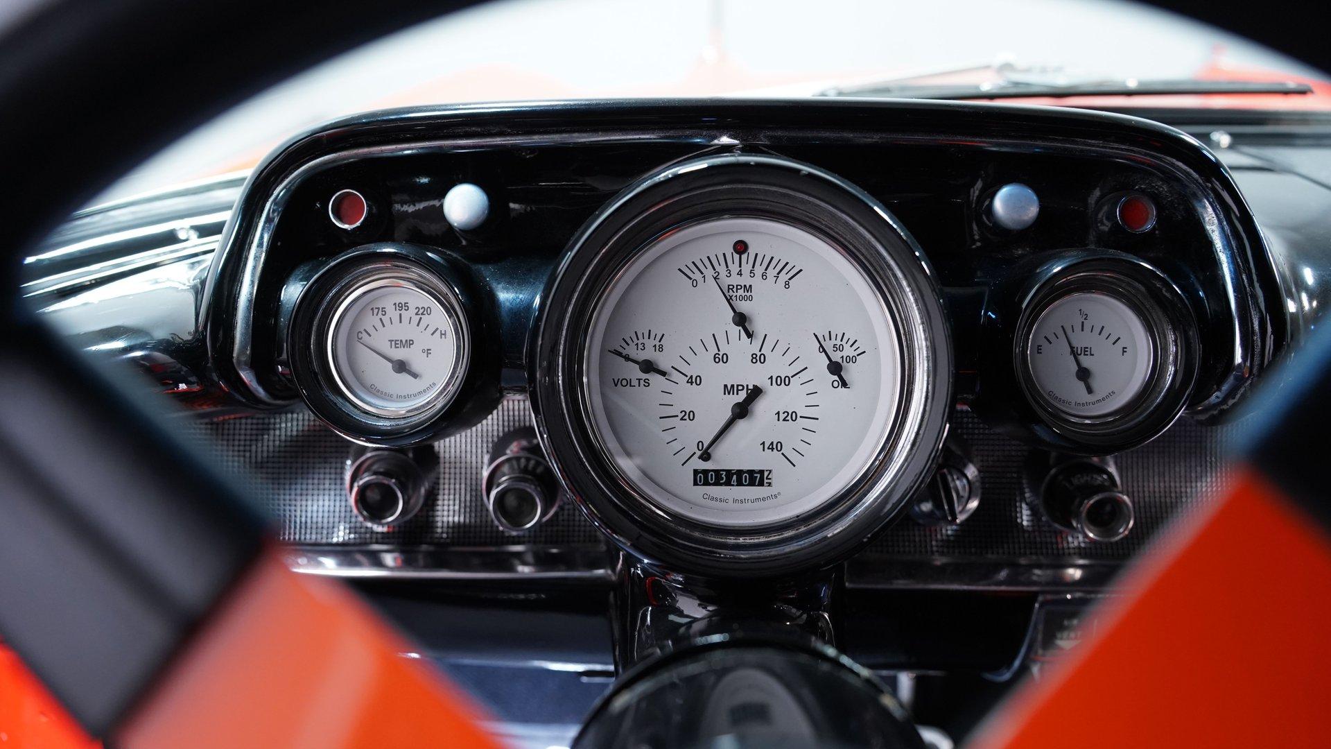 If you're on this site browsing cars, odds are that at some point, you have probably fantasized about owning a Tri-Five Chevy like this, fully repainted orange and white 1957 Chevrolet 210. Tastefully and thoughtfully modified, this two-door post has been upgraded to a Bel Air-level trim, with all its polished chrome in the right places, and retains its classically sporty look, which so many of us have fallen in love with over the years. Inside, we find a well-done tuck-and-roll style upholstery. Black leather seating is contrasted with orange seatbelts, while a matching orange insert is in the four-spoke power-assisted steering wheel. The traditional three-pod cluster has been upgraded with a set of Classics Instruments gauges. Push/pull HVAC knobs handle cabin temperature, while an old-school analog clock and Bel Air logo fill up the passenger side of the expansive dashboard. An upgraded AM/FM radio sits in its production spot, but offers the added benefit of Bluetooth connectivity. Under that signature '57 hood, we find a Summit 383 cubic-inch crate V-8. A single four-barrel Holley carburetor sits atop a high-rise intake manifold and lightweight aluminum heads, while spent gases are sent through a set of long-tube headers, and true dual exhaust capped off with a pair of FlowMaster mufflers gives this '57 the sound it should have had all along. If even more volume and efficiency are desired, then the dual electric cut-outs allow you to make a truly grand entrance. That power is routed through a T10 four-speed manual transmission before heading out to the twelve-bolt rear. HIGHLIGHTS: Upgraded Bel Air Trim Full Orange and White Repaint 383ci Stroker V8 Aluminum Heads Holley Four Barrel High Rise Intake Long Tubes FlowMaster Dual Exhaust Electronic Cutouts T10 Four Speed Manual 12 Bolt Rear Coilover Suspension Cragar SS Wheels Power Brakes Front Disc Brakes Power Steering Tuck and Roll Interior Leather Classics Instruments Gauges Hurst Shifter Orange Accents Sony Speakers AM/FM Stereo Bluetooth This 1957 Chevrolet 210 rides on a coilover suspension, with polished Cragar SS wheels shod in Cooper Cobra tires. Power brakes featuring front discs are ready to rein in speed whenever necessary, allowing you to simply enjoy cruising to the car show or down the interstate without a worry. If you're here, it probably means you've been set on a Tri-Five Chevy for a while, or have had a lingering thought about what it might be like to get behind the wheel of one of the most iconic cars in the history of the autoverse. So, what else are you waiting for? Call today!