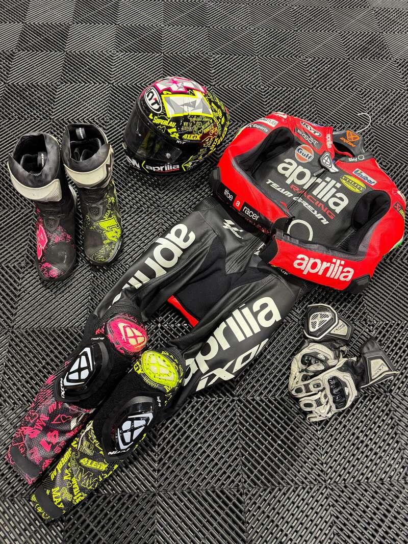 - The bike is being sold by Aleix and he is also including a set of leathers, helmet, boots and gloves from that season