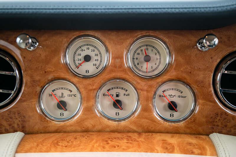 Highly specified, it features diamond-fluted seating, veneered picnic tables and a wood-and-leather steering wheel, together with navigation, cruise control, heated seats front and rear, and front and rear parking sensors. Built to Diamond Series specification and notably specified without a sunroof, it further benefits from factory-recorded Mulliner non-standard features including quartered straight-grain veneered waist rails, picnic tables finished in quartered straight-grain veneer with boxwood inlay, together with its Diamond Series identifiers, creating a particularly well-considered and discreetly specified example of Bentley’s flagship Arnage. The Diamond Series also saw the reintroduction of the 'Flying B' mascot, a feature that last adorned the radiator of a series-production Bentley in the late 1970s. Mechanically the model was based on the Arnage R and was available with either the 400bhp or, at extra cost, the 450bhp version of the Crewe-designed and produced 6.75-litre, twin-turbocharged V8 engine.