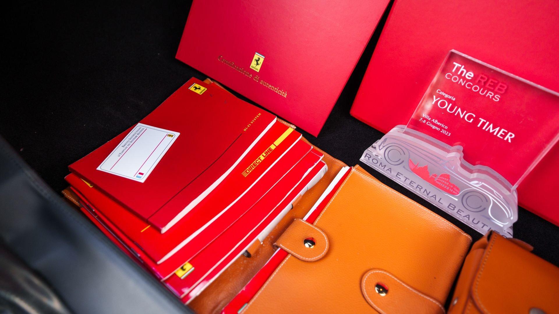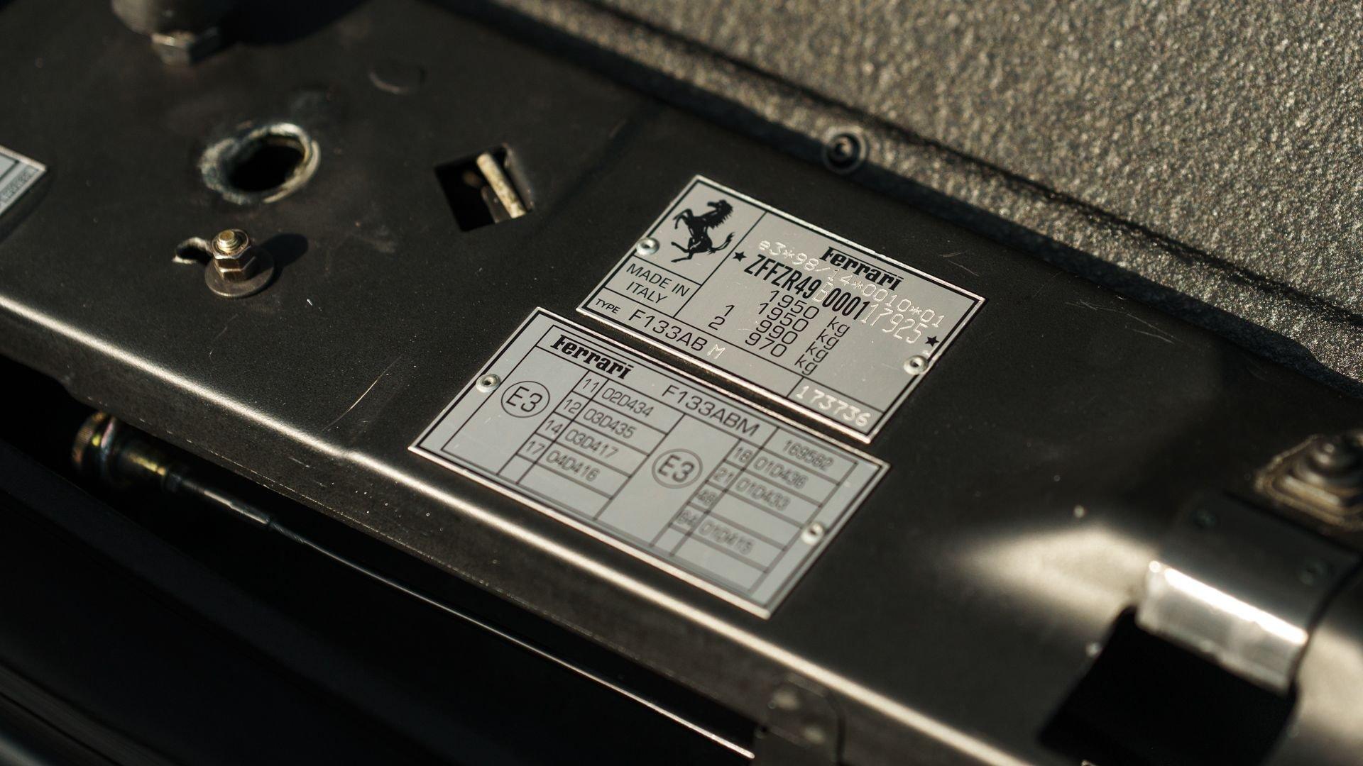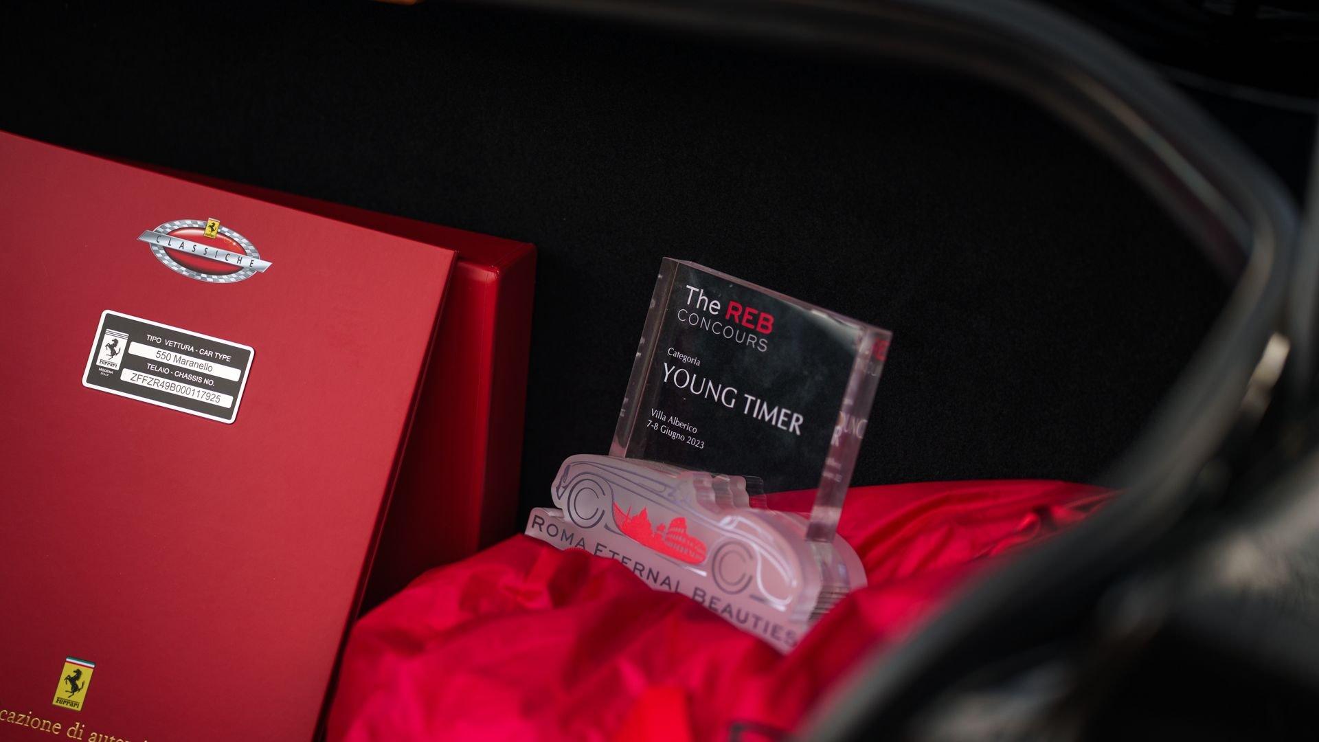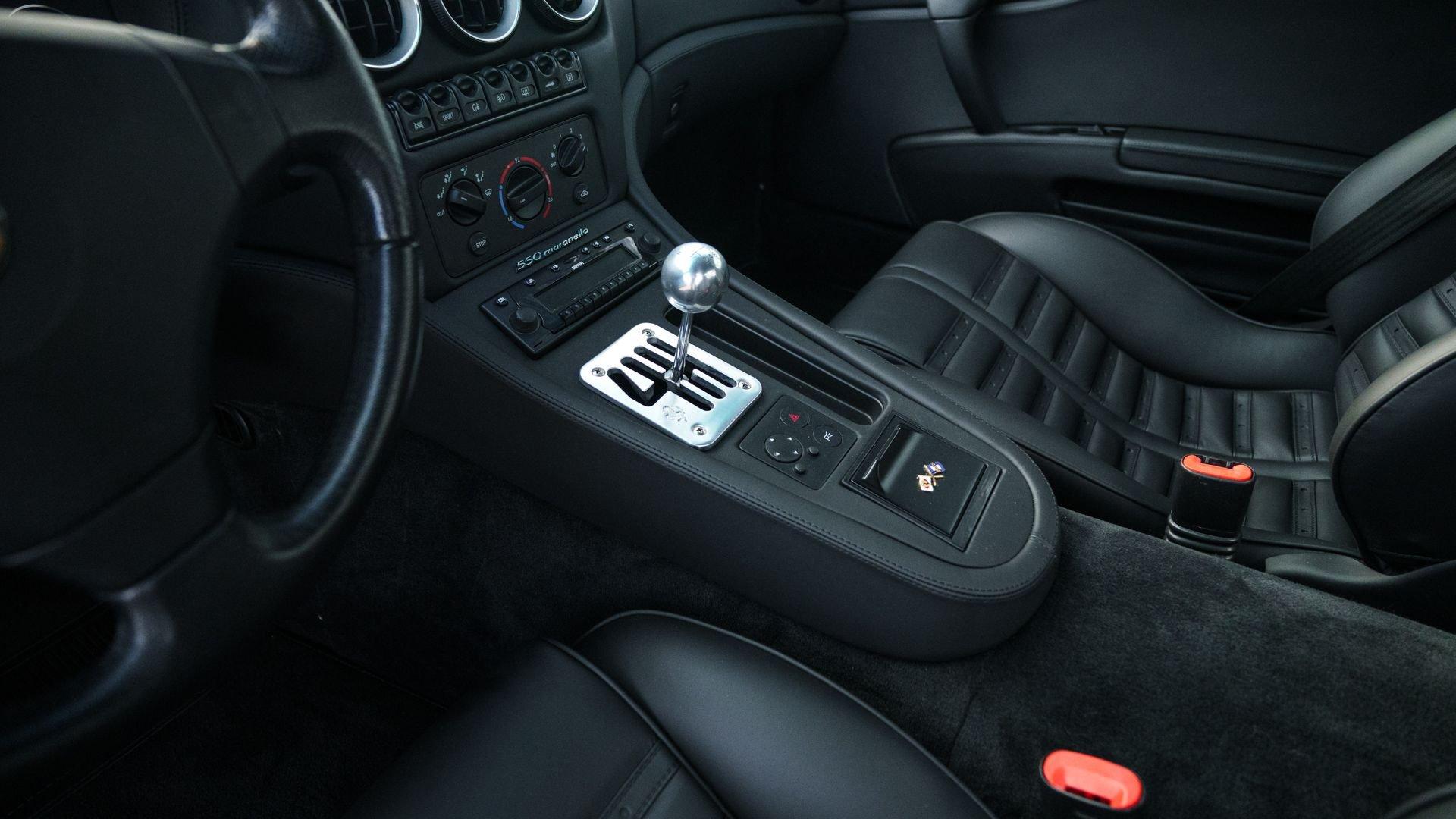 Chassis No. ZFFZR49B000117925 Among the most coveted variants of Ferrari’s 550 Maranello are the ultra-limited World Speed Record (WSR) and Michael Schumacher editions—factory-built, uniquely-specified takes on Maranello’s V12 grand tourer, produced in just 33 and 19 examples respectively. Created for clients who wanted the same equipment from Carrozzeria Scaglietti without model-specific badging, a discreet series of approximately 49 550s were produced with many of these same exclusive options. Chassis 117925 is a standout example of this uncommon specification, pairing the desirable Fiorano Handling Package (FHP) with the ultra-rare, leather-trimmed “Stradale” roll bar, an option more commonly associated with the WSR/Schumacher-badged cars. The Fiorano Handling Package sharpened the 550’s character through a quicker steering ratio and revised rack, stiffer springs, a thicker rear anti-roll bar, upgraded brake pads, and revised ECU tuning, delivering a noticeably more responsive feel from Ferrari’s last truly analog front-engine V12 GT. Completing the exterior are red-finished Ferrari-branded brake calipers and “Scuderia Ferrari” fender shields. A European-market car finished in Nero (Black) over a matching Nero cabin featuring Daytona-style seats, chassis 117925 was delivered via Alfred Gohm GmbH on 7 February 2000 to its first owner in Germany. On 20 October 2004, the car sold to a Ferrari enthusiast in Spain where it was carefully maintained for the next 18 years, documented by a clean EU CARFAX Vehicle History report and numerous stamps in its service and warranty booklet. In January 2023, the car was acquired by its current, U.S.-based collector-owner and entrusted to respected Ferrari specialists in the Modena area—including Auto Elite, Carrozzeria Europa, and Leather by Design—for a comprehensive cosmetic and mechanical refurbishment to concours standards. The cabin was retrimmed in black leather in May 2023, and the body was subsequently disassembled and refinished in its correct Nero finish in December 2023 with all seals and weatherstripping renewed. In September 2023, the suspension and braking systems were overhauled, while the 5.5-liter F133A V12 received a major service that included a thorough reseal, replacement timing belts, head gaskets, valve cover gaskets, and drive belts. In February 2024, the fluid in the six-speed manual transaxle was replaced, along with the installation of four new Michelin Pilot Super Sport tires later that year. The 550 made its post-refurbishment debut at the REB Concours at Circolo del Golf Roma Acquasanta in June 2023, where it received the well-deserved “Roma Eternal Beauties” award in the Youngtimer category owing to its exceptional presentation. Chassis 117925 was then submitted for Ferrari’s rigorous Classiche certification, culminating in its “Red Book” being issued in late 2024, which documents that the car retains its original engine, as-delivered color combination, and that the distinctive roll bar is factory equipment. Now displaying 84,417 kilometers at cataloging and accompanied by its Classiche Red Book, Schedoni leather tool kit, leather manuals folio, and car cover, this is, unquestionably, one of the finest and most compellingly specified 550 Maranellos available today.