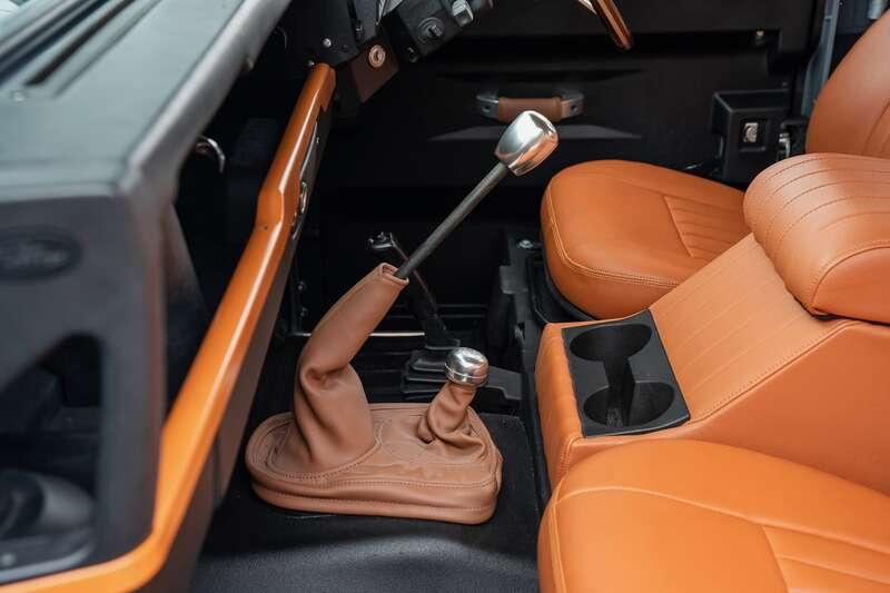 Crucially, this Defender retains its original engine, gearbox, axles and chassis, making it eligible for export to the US. The original chassis was shot-blasted, zinc primed and powder-coated, preserving originality while ensuring long-term protection. A new galvanised bulkhead, doors, tailgate and cappings have been fitted, with tub cappings hot dip galvanised and finished in silver for lasting appearance.