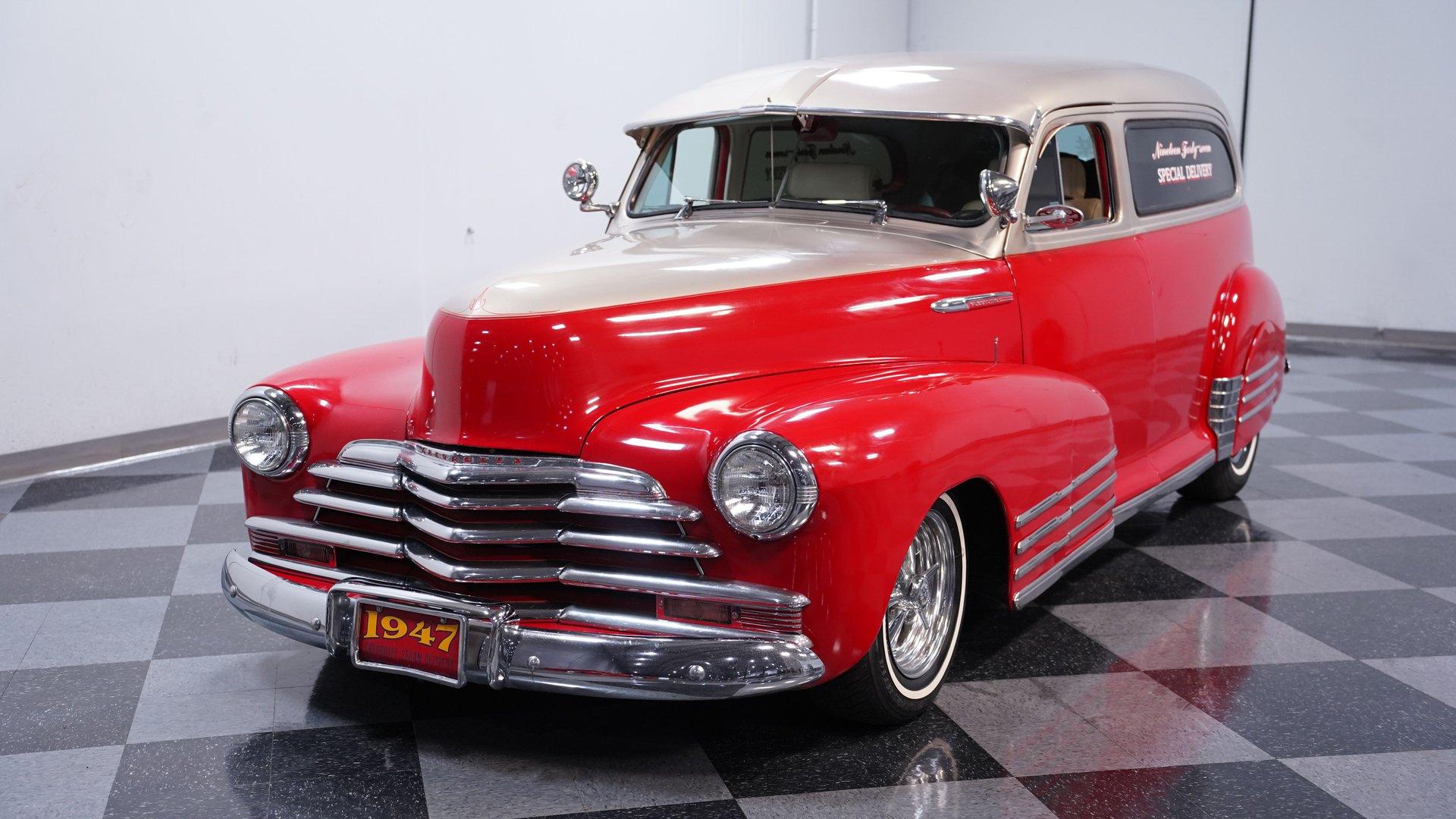 Some vehicles are more than just a means of transportation they are rolling time capsules, carrying the spirit of a bygone era wherever they go. Imagine the stories this classic could tell, from postwar American roads to modern-day cruise-ins, turning heads and starting conversations at every stoplight. With its unmistakable silhouette and custom touches, this is a vehicle that stands out in any crowd, blending nostalgia with a dash of hot rod attitude. If you've been searching for a classic that makes a statement and offers a canvas for your next adventure, the 1947 Chevrolet Sedan Delivery is ready to become part of your story. Step inside, and you'll find an inviting interior that balances classic style with thoughtful upgrades. The white vinyl seats offer a comfortable perch, accented by red carpeting and custom door panels. A tilt steering column adds convenience, while clear gauges and an aftermarket head unit bring a modern touch to the cockpit. The cargo area features custom side glass, and there's a handy center console, making this a great cruiser for weekend getaways or local events. Under the hood, a 283 V8 engine delivers reliable performance, complemented by an aluminum radiator for improved cooling. The engine bay showcases the car's older restoration, while the 3-speed automatic transmission ensures smooth shifts on the open road. Power steering with a rack and pinion upgrade and power disc brakes up front provide confidence and control, making this classic as enjoyable to drive as it is to admire. Highlights 283 V8 Engine 3 Speed Automatic Transmission Aluminum Radiator Rack And Pinion Power Steering Front Power Disc Brakes Rear Power Drum Brakes 10 Bolt Rear Axle Full Repaint With Custom Pinstripes Cragar Wheels, 14" Front 15" Rear Aftermarket Air Conditioning Tilt Steering Column Custom Side Glass In Cargo Area Shaved Door Handles With Door Poppers Frenched Tail Lights And License Plate Premium Fleetline Trim And Aerosedan Fender Skirts Financing Available Vehicle Protection Plans Available Worldwide Shipping This 1947 Chevrolet Sedan Delivery offers a unique blend of classic style and modern upgrades, making it a standout addition to any collection or garage. If you're ready to experience the charm and excitement of owning this special piece of automotive history, call, email, or come visit our showroom today!