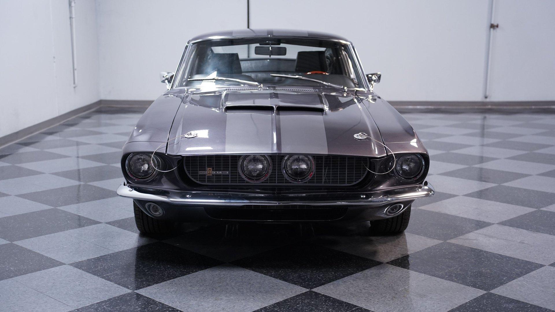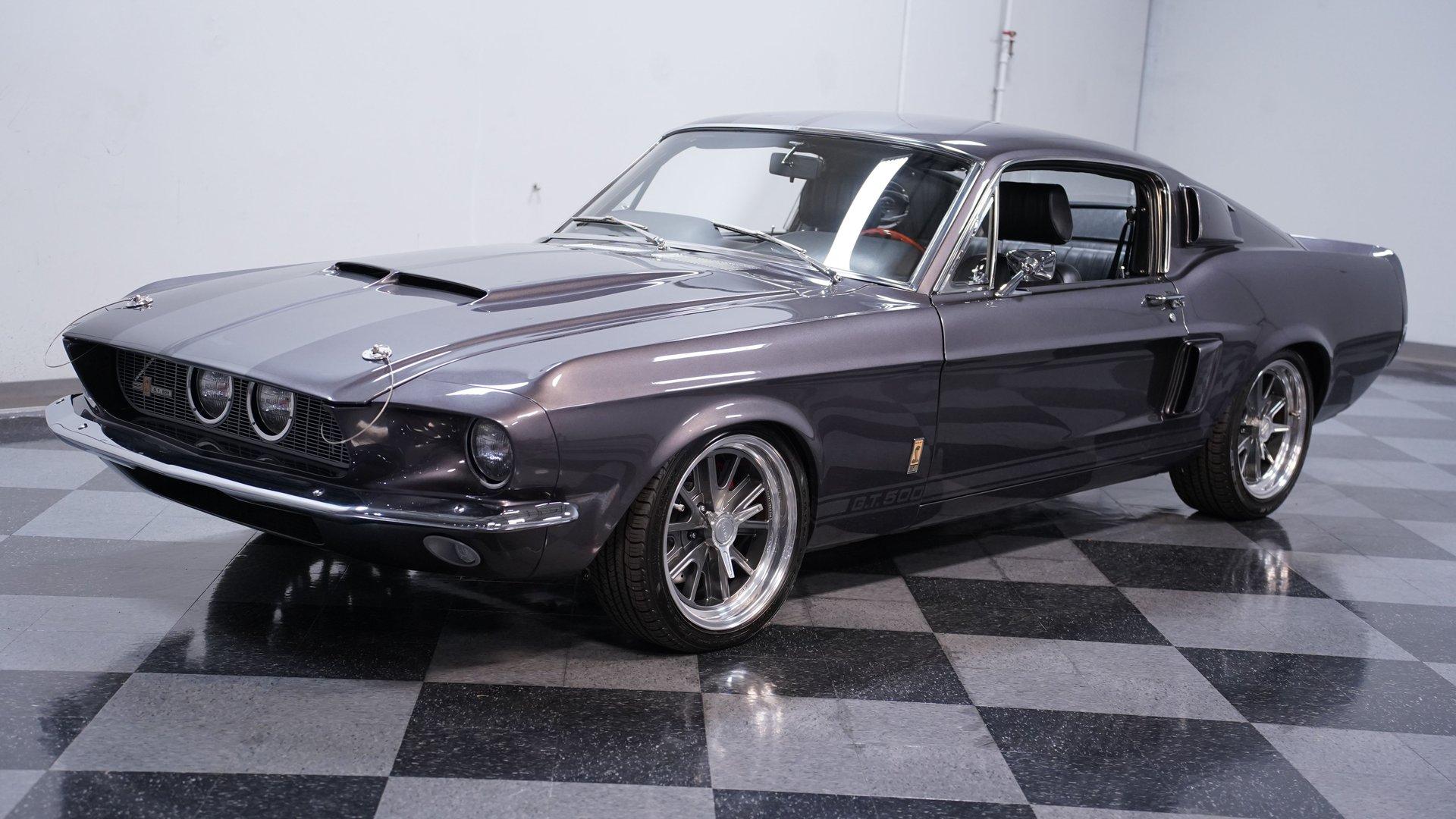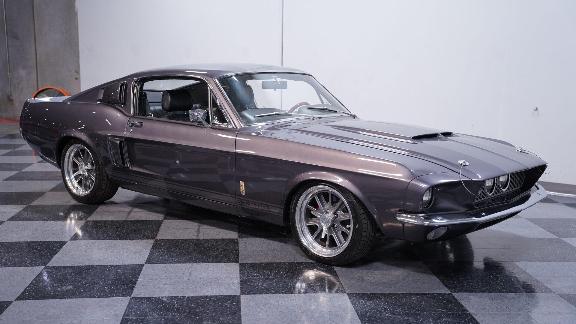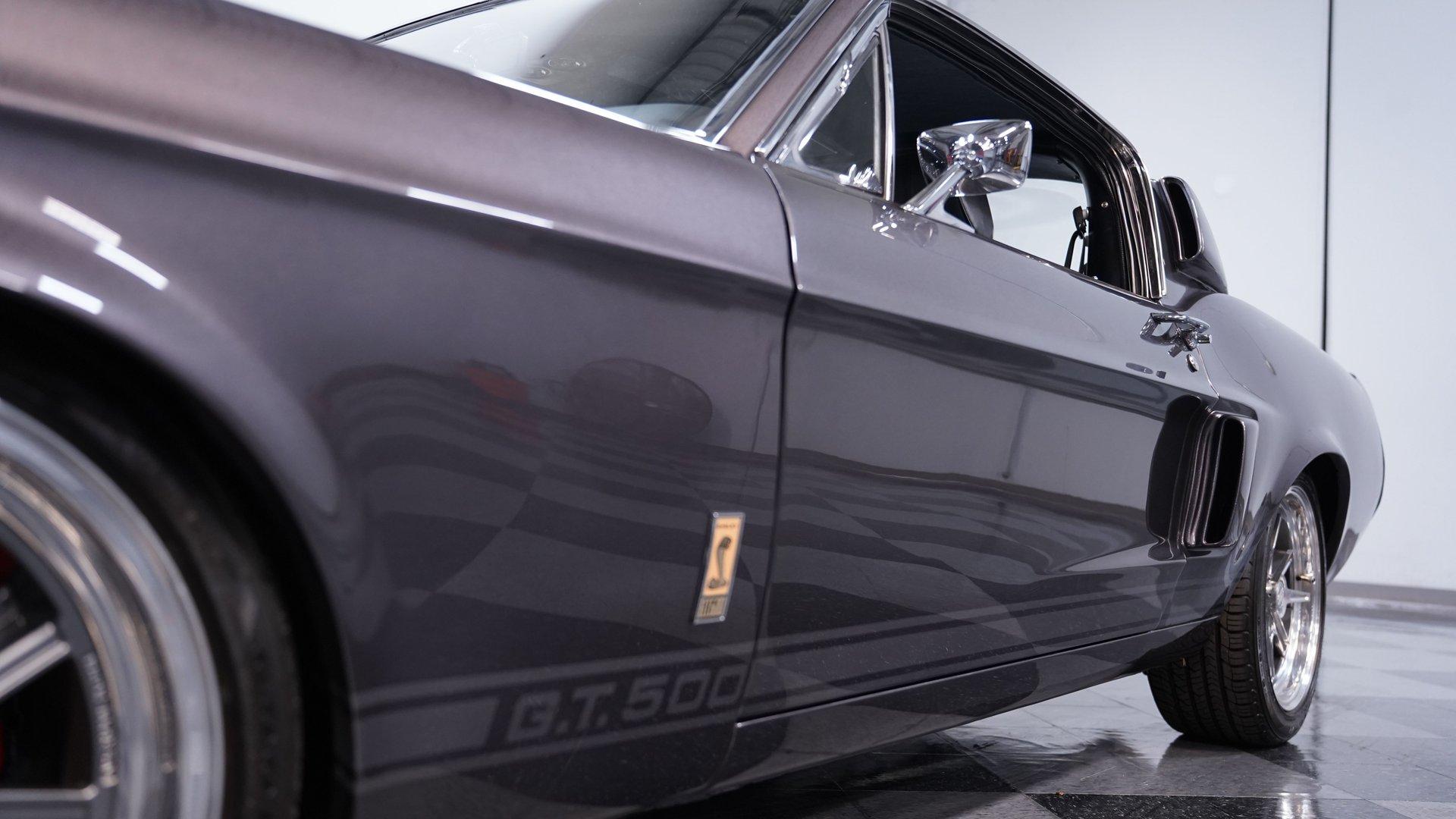 While it may be almost impossible to get your hands on one of the original 2,000 or so GT500s made, thankfully, we have this stunning 1967 Ford Mustang Shelby GT500 Tribute available for you today. Fully repainted in this stellar Gun Metal Metallic, this Tribute sports just 880 miles on its odometer since it was built along with a scooped and pinned hood, centrally-mounted grille lights, upper and lower quarter panel scoops, ducktail-style rear spoiler, GT500 rocker panel stripes, and correctly placed badging that, in totality, would make even Carroll Shelby nod and smile with approval at this fantastic Ford. Inside, we find a clean black vinyl interior that uses a Mustangs to Fear interior package. A large center console separates a pair of Procar Rally Edition bucket seats, while a power-assisted, Grant wood-rimmed steering wheel features a Cobra emblem center cap. A five-pod gauge cluster features a 6,000-rpm tachometer and a 140-mph speedometer. A one-piece headliner, dash pad, and rear quarter trim panels make this interior feel as comfortable as any classic Mustang ever has, while Dynamat sound-deadening material is installed throughout the cabin, allowing communication to be kept at a conversational volume. A Pioneer AM/FM/AUX/Satellite head unit offers Bluetooth connectivity, while the charging port in the console keeps your phone charged for as long as you need on the road. Under that aggressive hood, we find an even more aggressive motor. Inside this clean engine bay sits a 408-cubic-inch overhead-valve stroker V-8. Professionally built by Performance Unlimited, this wild Windsor motor features an MSD ignition, March serpentine belt system, Edelbrock aluminum heads, Holley Terminator X EFI, long tube headers, and Borla exhaust, this Tribute sounds every bit the GT500 it was built to emulate. Power is routed through a tried-and-true Tremec TKO600 five-speed manual transmission before heading out to the Currie nine-inch rear end that transfers power to the pavement via custom-made-to-order American Racing GT40 wheels with Shelby spinner caps, shod in Goodyear Eagle Sport tires. HIGHLIGHTS: 880 Miles Since Built Full Gun Metal Metallic Repaint Ducktail Spoiler Grille Lights 408ci Stroker V8 Cobra Jet Heads Edelbrock Aluminum Heads Holley Terminator X EFI MSD Ignition March Serpentine Belt Long Tubes Borla Exhaust Total Cost Involved Suspension Adjustable Coilovers X Bracing Subframe Connectors Currie Nine Inch Rear Custom American Racing GT40 Wheels Shelby Spinner Caps Wilwood Four Wheel Power Disc Brakes Power Steering Pioneer Touchscreen Bluetooth Mustangs to Fear Interior One Piece Headliner Brushed Aluminum Door Panels Procar Rally Edition Seats Ididit Steering Column Grant Wood Rimmed Wheel Dynamat Throughout AC Too Much To List This 1967 Ford Mustang Shelby GT500 Tribute rides on a custom Total Cost Involved-supplied suspension featuring an independent front and rear with four-wheel adjustable coilovers, subframe connectors with X-bracing, driveshaft safety loop, and front and rear sway bars. Wilwood power disc brakes hide behind those wheels at all four corners, ready to scrub off speed at a moment's notice. If you've always loved the 1967 GT500, but couldn't find or afford one of those sparse vehicles, then this incredible tribute is the car you've been waiting for. But don't wait, call today!