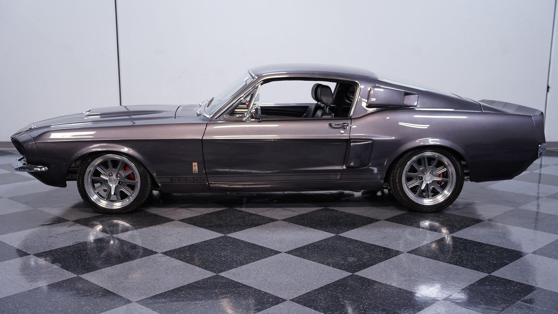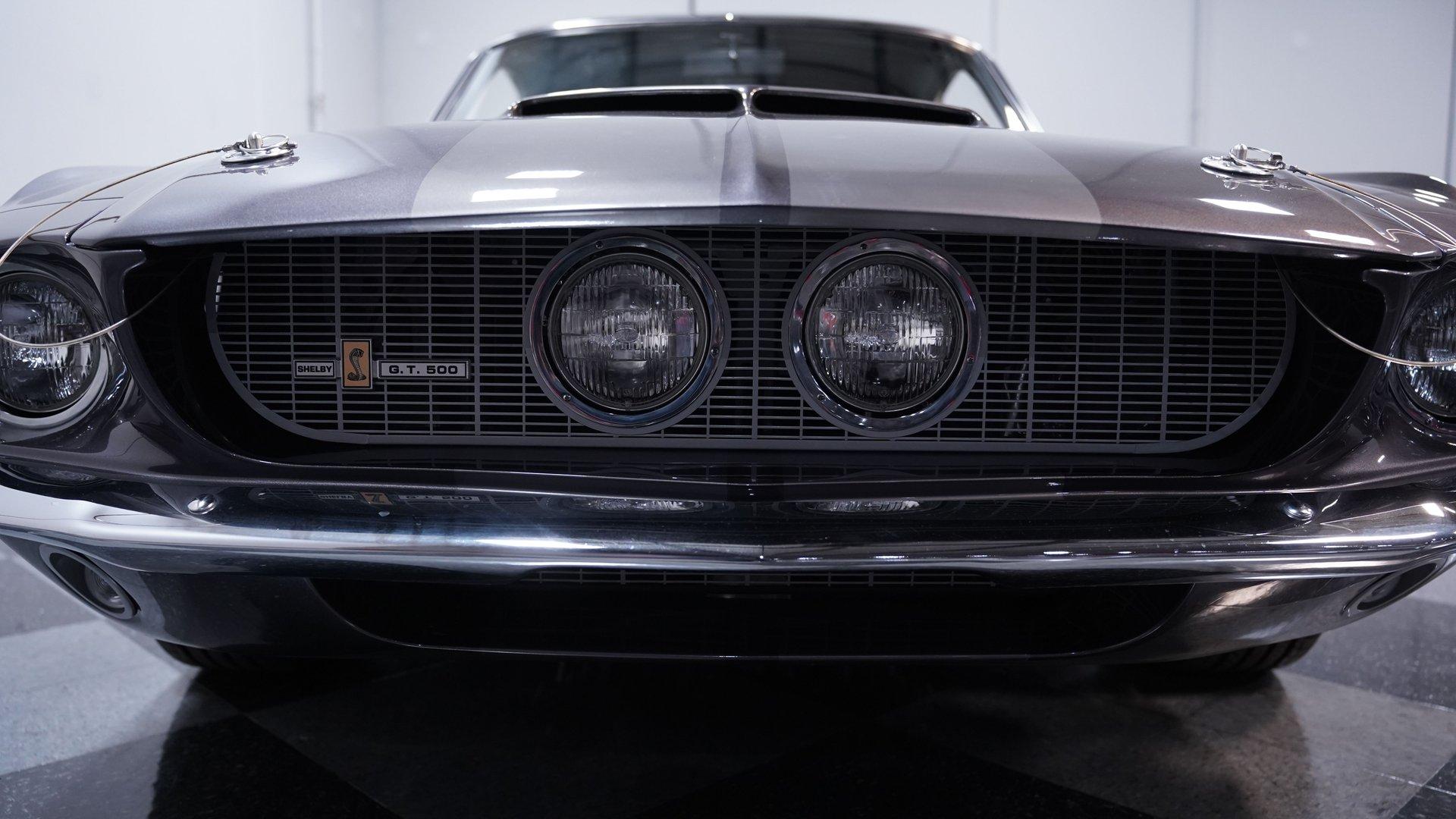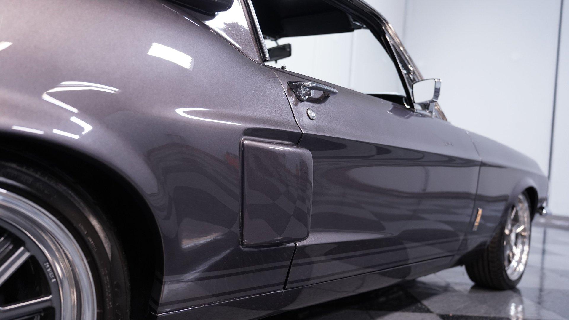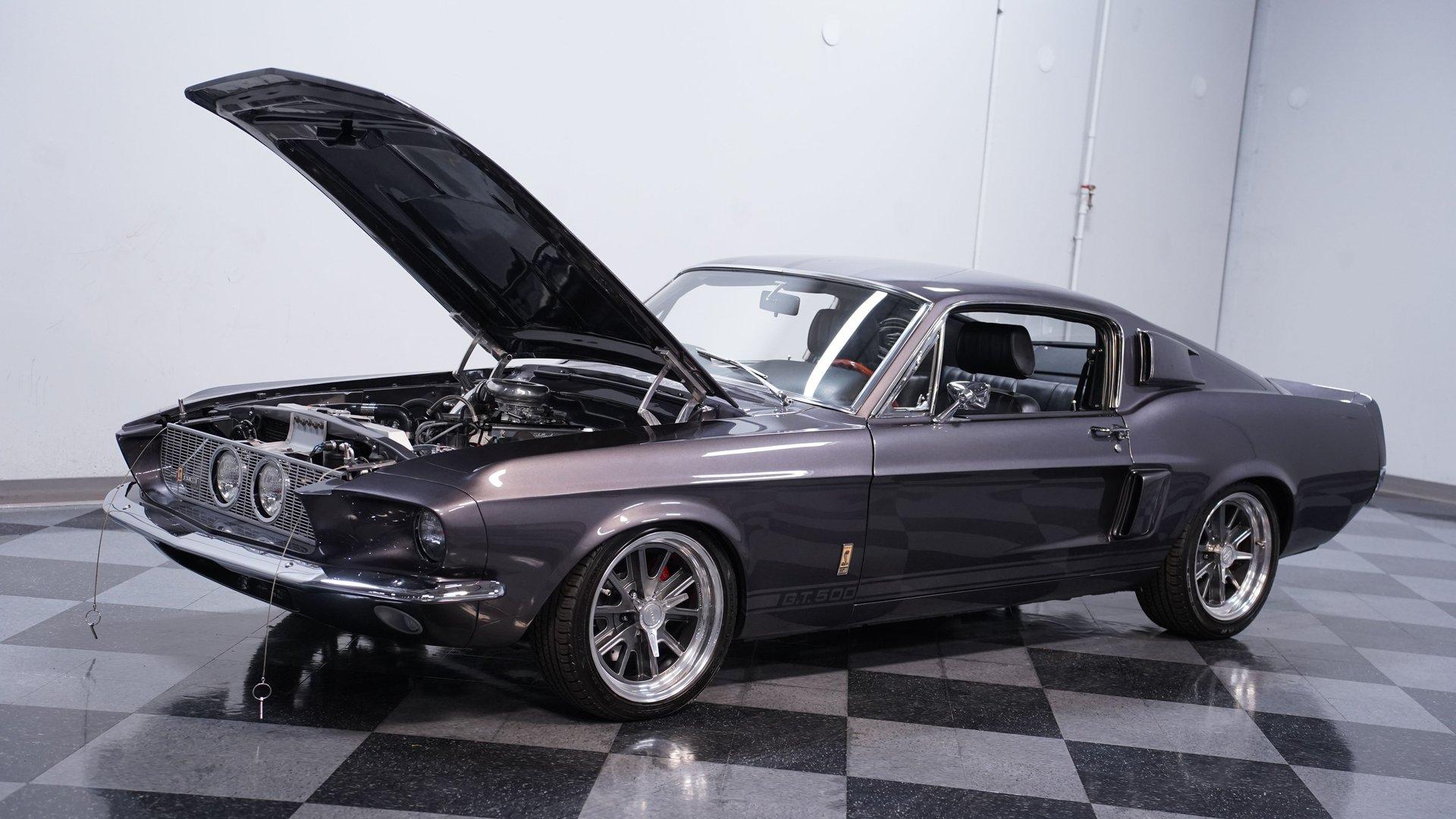 While it may be almost impossible to get your hands on one of the original 2,000 or so GT500s made, thankfully, we have this stunning 1967 Ford Mustang Shelby GT500 Tribute available for you today. Fully repainted in this stellar Gun Metal Metallic, this Tribute sports just 880 miles on its odometer since it was built along with a scooped and pinned hood, centrally-mounted grille lights, upper and lower quarter panel scoops, ducktail-style rear spoiler, GT500 rocker panel stripes, and correctly placed badging that, in totality, would make even Carroll Shelby nod and smile with approval at this fantastic Ford. Inside, we find a clean black vinyl interior that uses a Mustangs to Fear interior package. A large center console separates a pair of Procar Rally Edition bucket seats, while a power-assisted, Grant wood-rimmed steering wheel features a Cobra emblem center cap. A five-pod gauge cluster features a 6,000-rpm tachometer and a 140-mph speedometer. A one-piece headliner, dash pad, and rear quarter trim panels make this interior feel as comfortable as any classic Mustang ever has, while Dynamat sound-deadening material is installed throughout the cabin, allowing communication to be kept at a conversational volume. A Pioneer AM/FM/AUX/Satellite head unit offers Bluetooth connectivity, while the charging port in the console keeps your phone charged for as long as you need on the road. Under that aggressive hood, we find an even more aggressive motor. Inside this clean engine bay sits a 408-cubic-inch overhead-valve stroker V-8. Professionally built by Performance Unlimited, this wild Windsor motor features an MSD ignition, March serpentine belt system, Edelbrock aluminum heads, Holley Terminator X EFI, long tube headers, and Borla exhaust, this Tribute sounds every bit the GT500 it was built to emulate. Power is routed through a tried-and-true Tremec TKO600 five-speed manual transmission before heading out to the Currie nine-inch rear end that transfers power to the pavement via custom-made-to-order American Racing GT40 wheels with Shelby spinner caps, shod in Goodyear Eagle Sport tires. HIGHLIGHTS: 880 Miles Since Built Full Gun Metal Metallic Repaint Ducktail Spoiler Grille Lights 408ci Stroker V8 Cobra Jet Heads Edelbrock Aluminum Heads Holley Terminator X EFI MSD Ignition March Serpentine Belt Long Tubes Borla Exhaust Total Cost Involved Suspension Adjustable Coilovers X Bracing Subframe Connectors Currie Nine Inch Rear Custom American Racing GT40 Wheels Shelby Spinner Caps Wilwood Four Wheel Power Disc Brakes Power Steering Pioneer Touchscreen Bluetooth Mustangs to Fear Interior One Piece Headliner Brushed Aluminum Door Panels Procar Rally Edition Seats Ididit Steering Column Grant Wood Rimmed Wheel Dynamat Throughout AC Too Much To List This 1967 Ford Mustang Shelby GT500 Tribute rides on a custom Total Cost Involved-supplied suspension featuring an independent front and rear with four-wheel adjustable coilovers, subframe connectors with X-bracing, driveshaft safety loop, and front and rear sway bars. Wilwood power disc brakes hide behind those wheels at all four corners, ready to scrub off speed at a moment's notice. If you've always loved the 1967 GT500, but couldn't find or afford one of those sparse vehicles, then this incredible tribute is the car you've been waiting for. But don't wait, call today!
