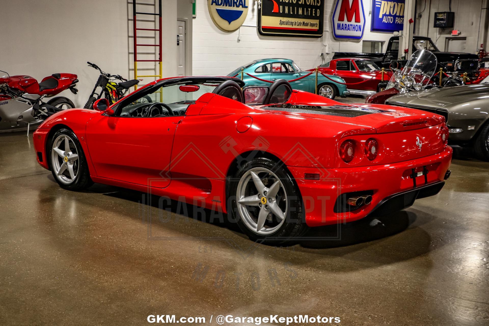2001 Ferrari 360 Spider- Only 8k Original Miles!- European Market Example- Imported in to the U.S. in 2001- Rossa Corsa with Black Soft Top- Nero Leather Interior- 3.6L Rear Engine V8- 6 Speed F1 Sequential Gearbox- Limited Slip Differential - 2025 Timing Belt Service- 18 Inch 5 Spoke Alloy Wheels- Clean CarFaxThe 2001 Ferrari 360 Spider is a beautiful representation of early 2000s Italian performance and design, delivering open-top driving excitement paired with the raw emotion Ferrari is known for. This particular example is a rare European market model that was imported into the United States in 2001, making it a unique find among domestic 360 Spiders. With just 8,000 original miles, it remains in exceptional condition, offering a near time-capsule experience for collectors or enthusiasts seeking originality and low mileage.Finished in the iconic Rosso Corsa paint with a black soft top, this Ferrari exudes classic styling and presence. The factory 18-inch 5-spoke alloy wheels give the car a balanced, aggressive stance while maintaining the refined look of a true exotic. The body and paint are in excellent shape, showcasing the low miles and careful ownership history. A clean CarFax further confirms its accident-free past and adds value and peace of mind for prospective buyers.Inside, the Nero leather interior provides a sharp, purposeful contrast to the vibrant exterior. The cabin is well-preserved, with minimal signs of wear on the seats, dash, and trimfitting for a vehicle with such low usage. The driver?s environment is designed for engagement, featuring F1-style paddle shifters, clear analog gauges, and premium materials throughout. It?s a cockpit that reminds you this car is built for spirited driving as much as for visual appeal.Power comes from a 3.6-liter rear-mounted V8 that delivers a thrilling sound and engaging powerband. Paired with a 6-speed F1 sequential gearbox, the car shifts rapidly and precisely, providing an experience close to Ferrari?s Formula 1 heritage. The limited-slip differential enhances traction and control, especially during spirited cornering. Importantly, a timing belt service is scheduled for 2025, addressing one of the most crucial maintenance needs for long-term ownership confidence.With its European origins, extremely low mileage, and desirable Rosso Corsa over Nero color combination, this 2001 Ferrari 360 Spider stands out as a highly collectible and enjoyable modern classic. It's a turn-key exotic that offers the kind of performance, design, and pedigree that continues to define Ferrari?s legacy. Whether destined for a collection or weekend canyon runs, this Spider is an opportunity to own one of the marque?s most iconic drop-top models.