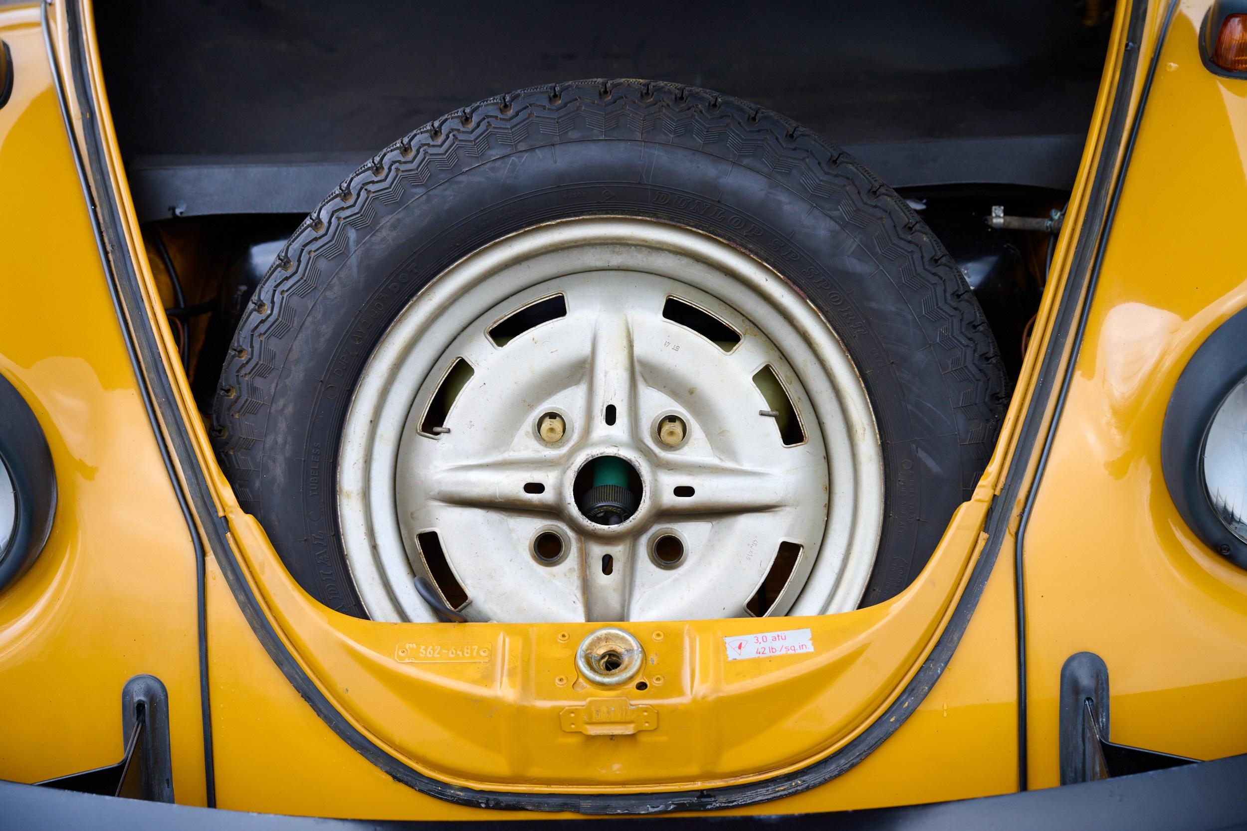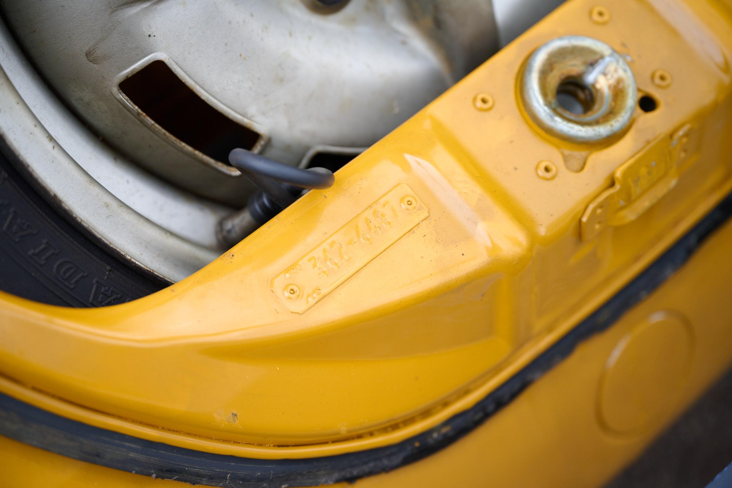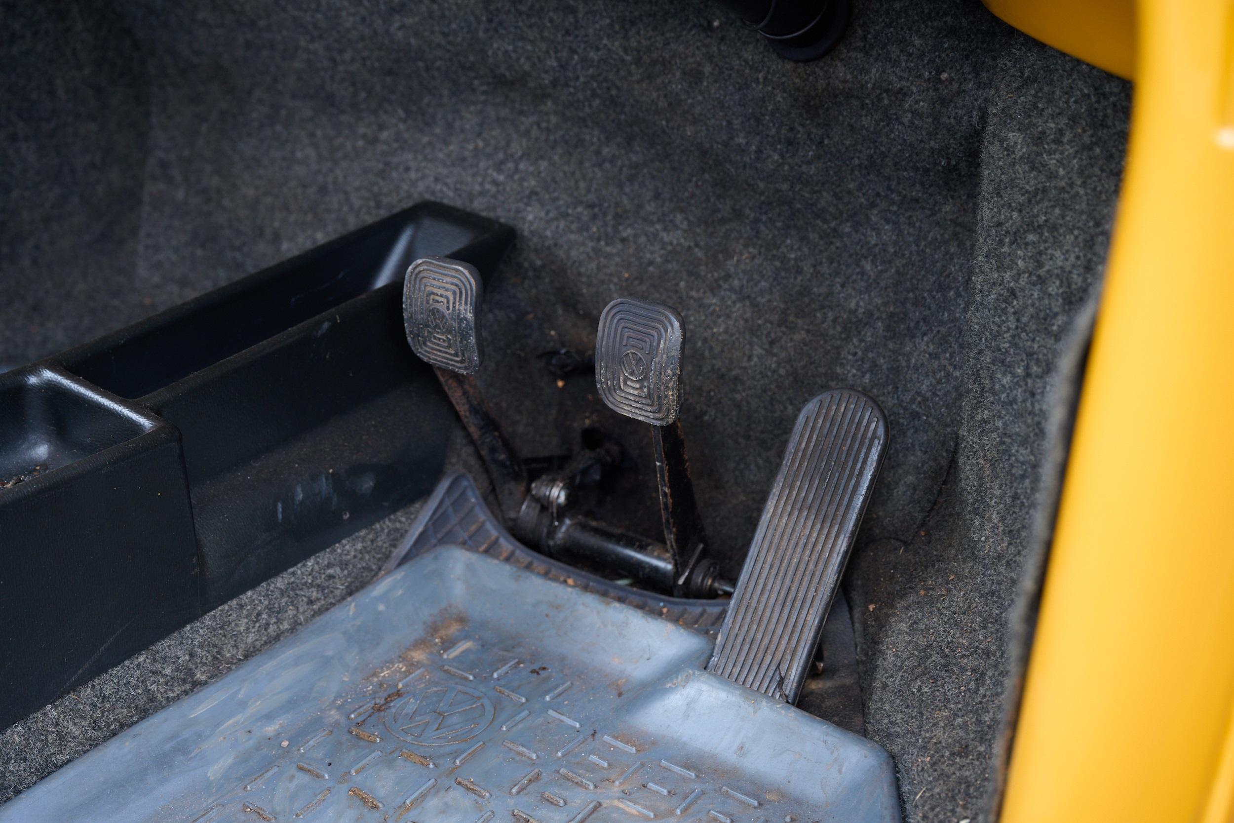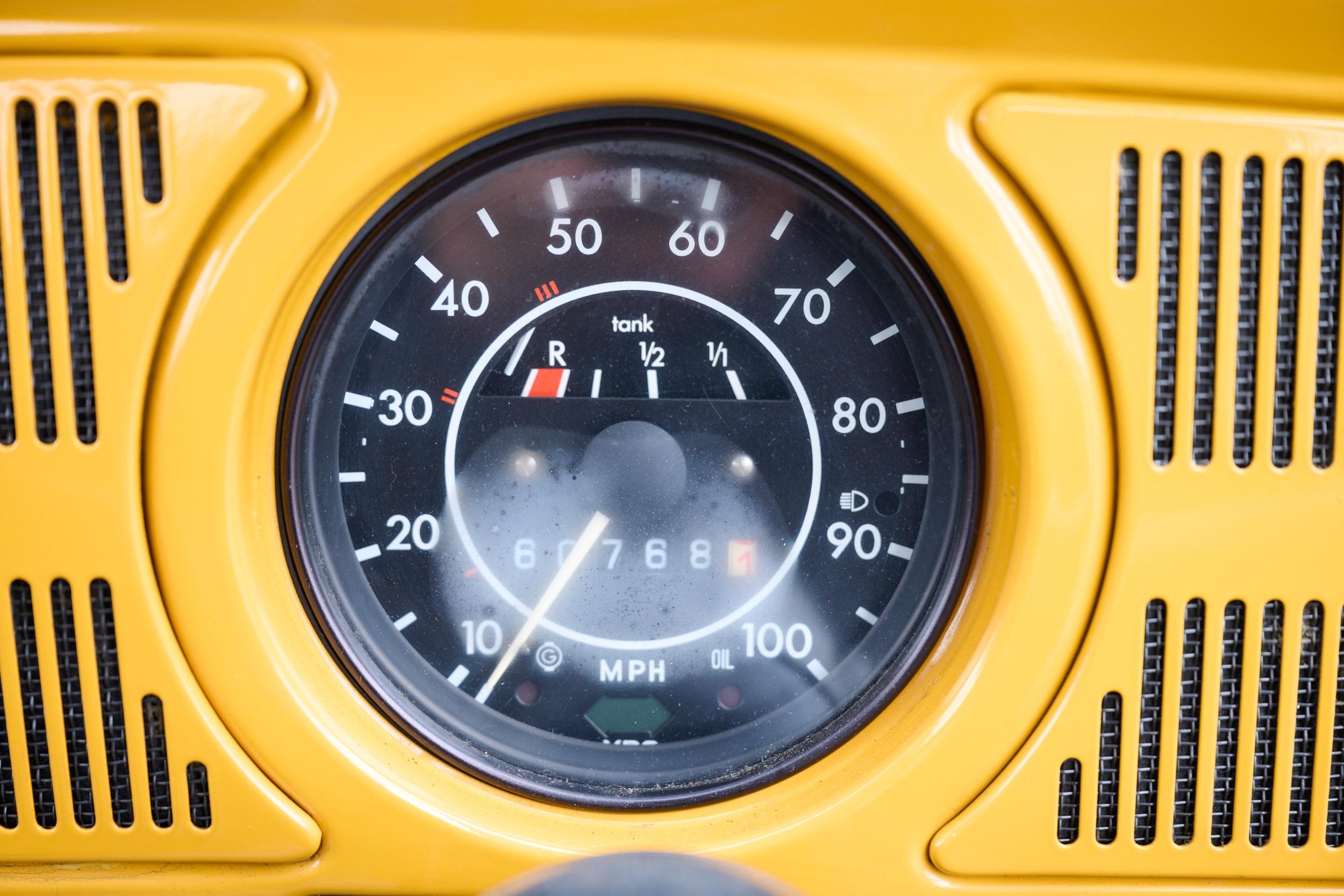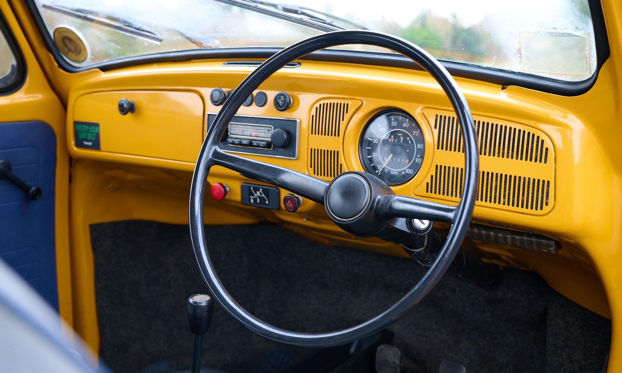 All Jeans Editions were painted in the very evocative 'Tunis Gelb', while the previously chrome-plated elements on the standard Beetle were painted black. The Jeans also features a black decal along the side, with a very 70s 'Jeans' script. More importantly, it gained the denim interior with yellow stitching that gave this limited edition its name. These elements all conjure images of beachside sunsets and surfing, exactly the notes the Stuttgart marque was trying to hit.