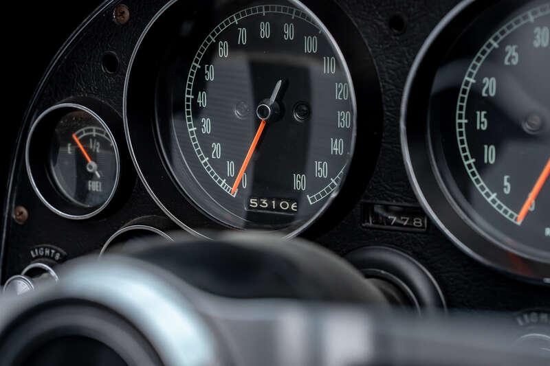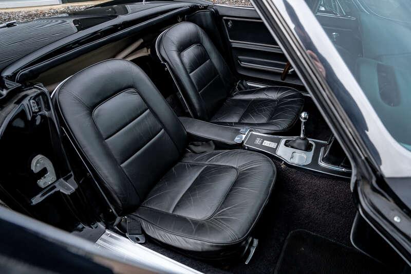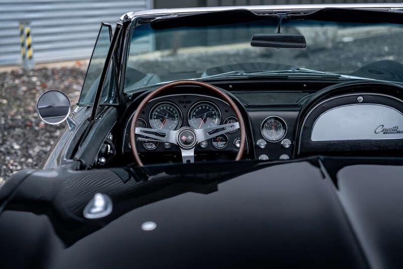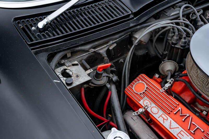 This C2 Sting Ray Convertible was built in December 1965 in the St Louis factory, finished in Tuxedo Black over a black interior and as a 1965 model, benefited from the introduction of 4-pot Kelsey Hayes ventilated discs all round. The specification is impressive and includes a 327ci 350bhp V8 (HV suffix) mated to a 4-speed manual transmission, Positractraction (LSD) axle, teak wood telescopic steering wheel, and a factory-supplied hard top.