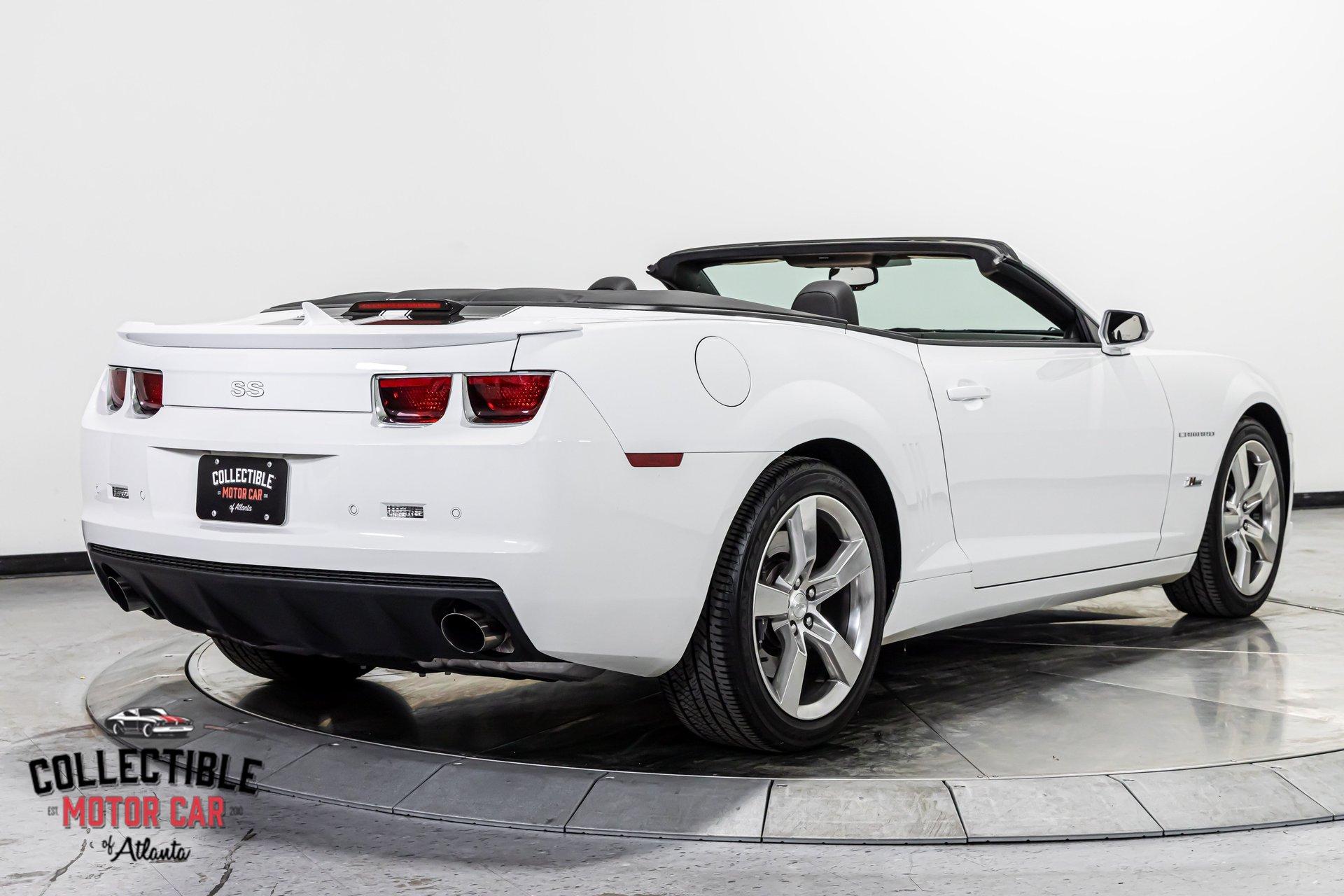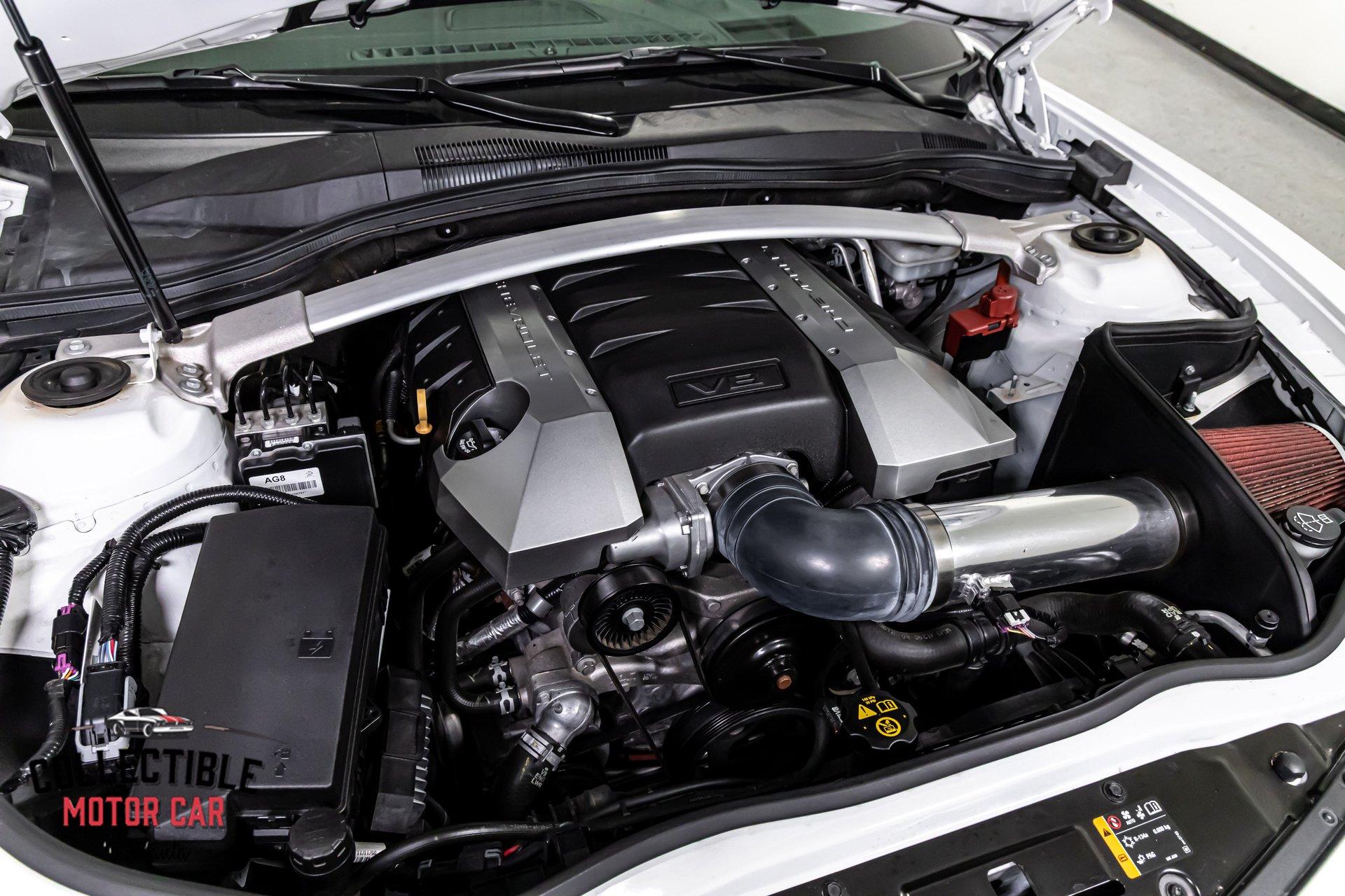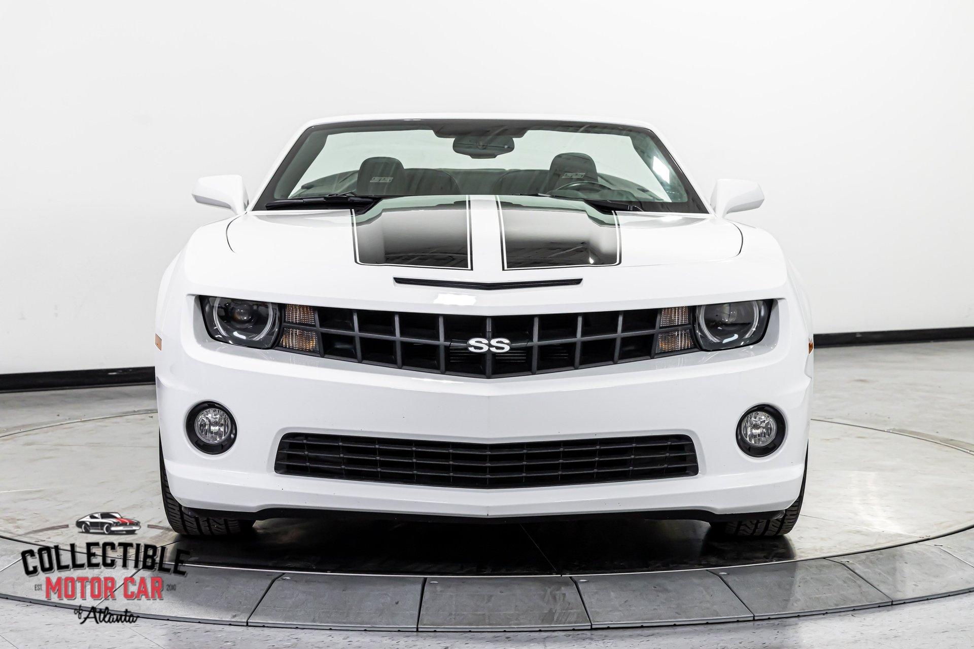 2011 Chevrolet Camaro 2SS Convertible — Low-Mile SS Power, Classic White/Black Combo If you’re looking for a modern muscle car that still feels raw, mechanical, and special every time you fire it up, this 2011 Chevrolet Camaro 2SS Convertible checks all the right boxes. Finished in Bright White with bold black SS-style hood stripes, this Camaro has the presence everyone remembers from the early 5th-gen cars—wide, low, aggressive—and it backs it up with true SS V8 performance and the premium 2SS interior package. The instrument display shows 22,799 miles, and the overall presentation reflects it—clean cosmetics, tidy engine bay, and a sharp interior that still feels tight and driver-focused. Key Highlights 2011 Camaro 2SS Convertible Bright White exterior with black hood stripes Black power convertible soft top (shown up and down) SS front fascia/grille with SS badging Low miles shown on display: 22,799 Black leather 2SS interior Manual transmission (traditional console shifter) Auxiliary gauge pack on the center console (oil/battery/temps, etc.) Aftermarket cold air intake with polished inlet tube and cone filter Staggered 20” wheel/tire setup Front tires: 245/45R20 103Y Rear tires: 275/40R20 106Y Clean trunk presentation and a tidy undercarriage view with dual exhaust/catalysts in place Exterior & Styling The white-over-black color combo is one of the best looks on a 5th-gen Camaro, and the black hood stripes add the right amount of attitude without being overdone. Up front, the car carries the unmistakable SS grille and fascia, with a wide stance and a crisp, modern take on classic Camaro muscle. With the top up, the black convertible soft top gives it a sleek profile. With the top down, it transforms into the kind of car you can cruise, show, or simply enjoy—especially with that SS soundtrack. Interior & Driver Experience (2SS Package) Inside, this Camaro delivers the more upscale feel you want in a 2SS, while keeping the cockpit layout performance-first. You’ll find: Black leather seating Steering wheel-mounted controls Center console auxiliary gauges (a signature SS detail) A clean, well-kept cabin that matches the mileage and overall presentation Everything is laid out exactly how an enthusiast wants it: low seating position, straightforward controls, and that “wrapped around you” Camaro cockpit that makes the car feel purpose-built. Engine & Performance Under the hood is Chevrolet’s 6.2L SS V8, the heart of what makes these cars so much fun. In SS form, this platform is known for strong torque, instant throttle response, and the kind of acceleration that still feels serious today. Notably, this car features an aftermarket cold air intake (polished inlet tube with cone filter), adding a more aggressive induction sound and a cleaner performance look in the engine bay. Transmission & Drivetrain This Camaro is equipped with a manual transmission, giving it the true muscle-car driving experience—more control, more involvement, and more fun. It’s the configuration most enthusiasts hunt for when they want an SS that feels connected and analog. Wheels, Tires & Stance The car sits on 20-inch wheels with a staggered performance tire setup: Front: 245/45R20 103Y Rear: 275/40R20 106Y That wider rear tire helps put the power down and gives the car the correct SS posture—wide hips, planted stance, and a confident look from every angle. Trunk & Undercarriage The trunk presents cleanly and looks well cared for—no messy finishes or questionable repairs visible in the provided photos. The underside view shows a solid, honest layout with the drivetrain and exhaust routing visible, including catalytic converters in place and a generally clean presentation consistent with a properly kept, low-mile car. The Takeaway This is the kind of Camaro that hits the sweet spot: Low miles SS V8 performance 2SS comfort and appearance upgrades Convertible fun A timeless white/black spec that always looks right