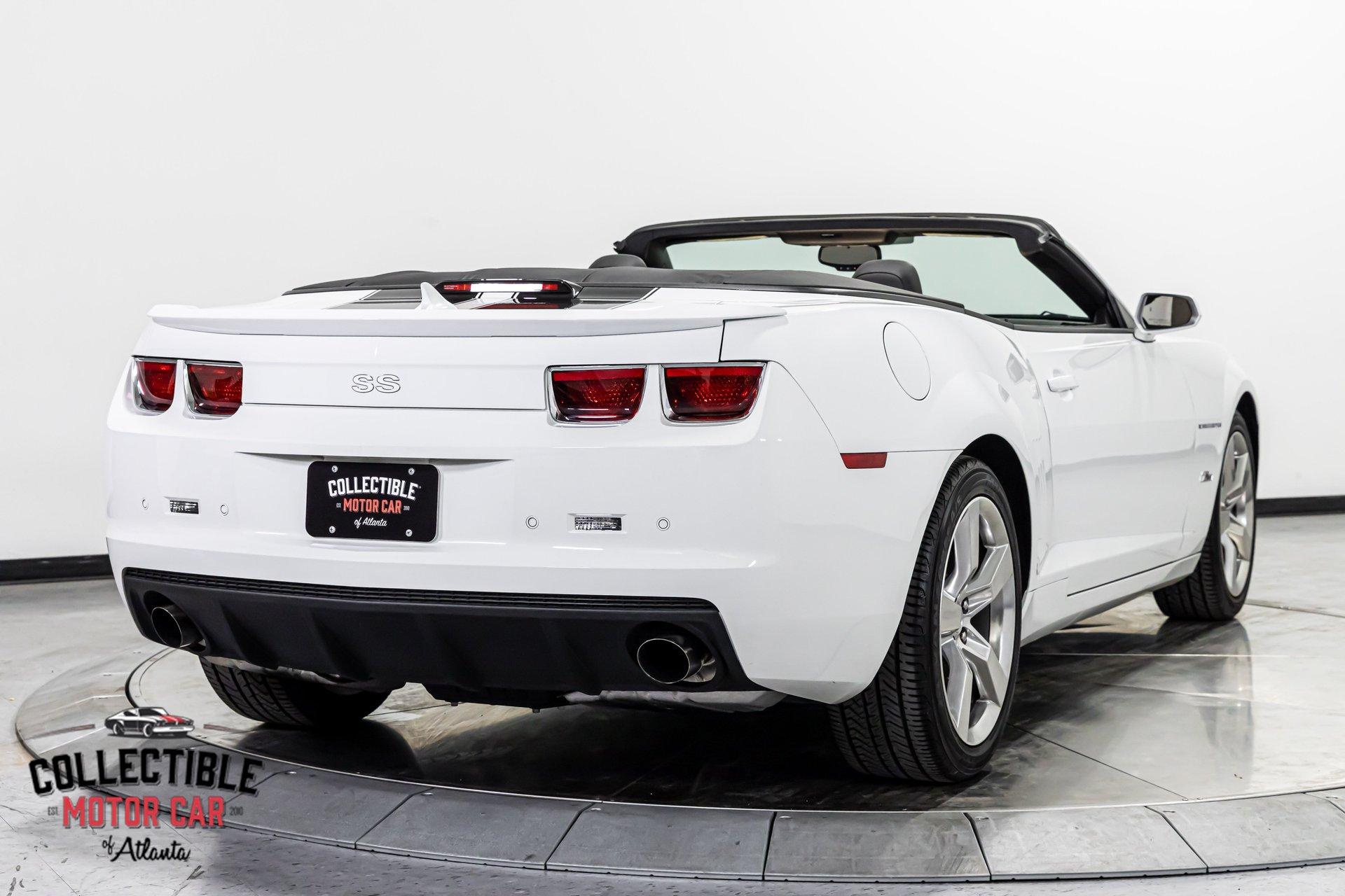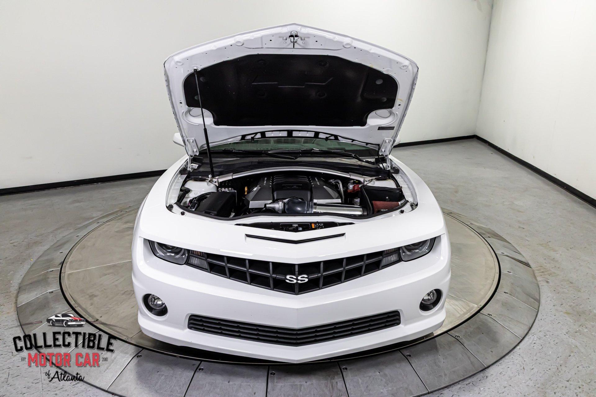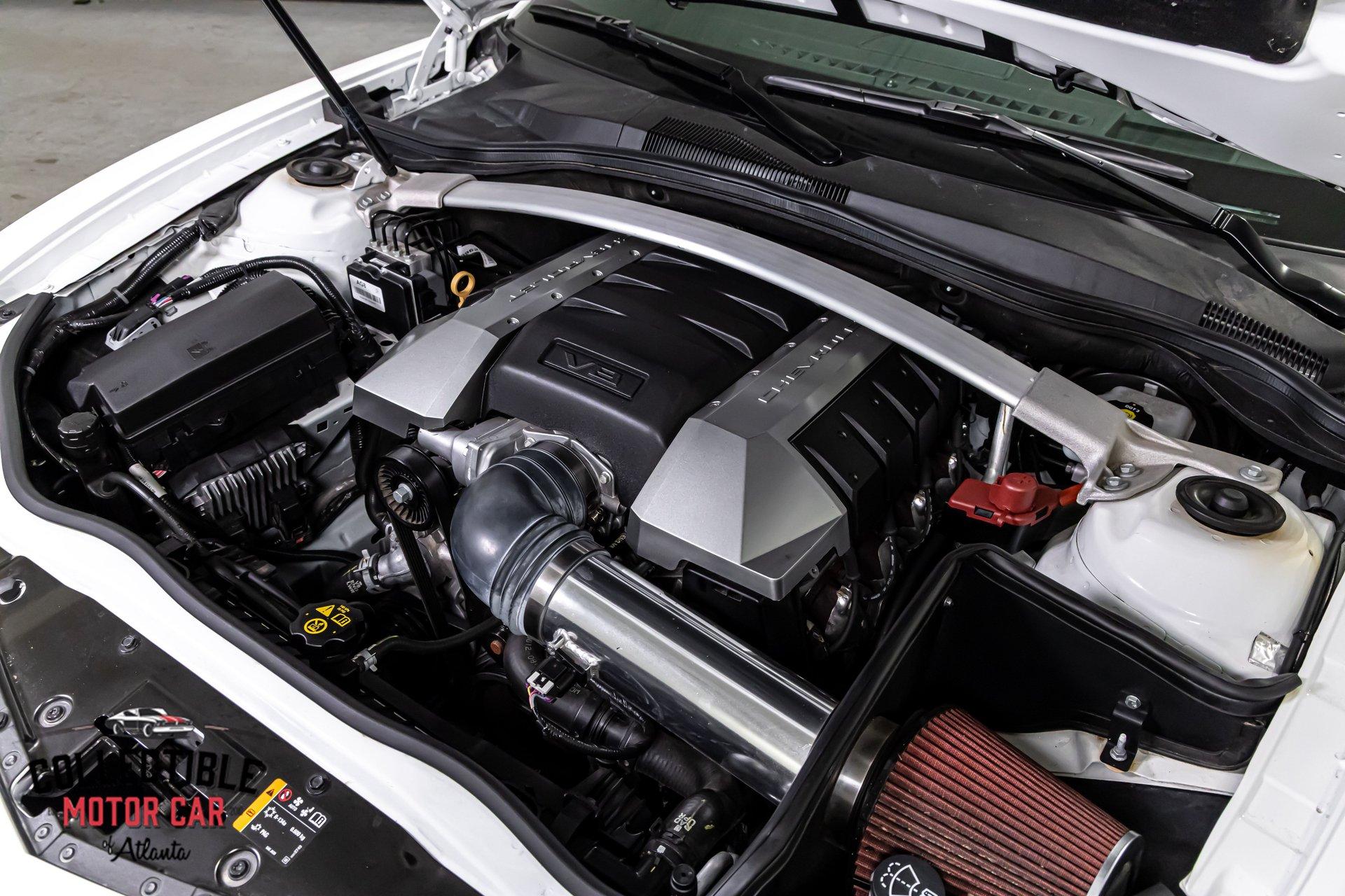 2011 Chevrolet Camaro 2SS Convertible — Low-Mile SS Power, Classic White/Black Combo If you’re looking for a modern muscle car that still feels raw, mechanical, and special every time you fire it up, this 2011 Chevrolet Camaro 2SS Convertible checks all the right boxes. Finished in Bright White with bold black SS-style hood stripes, this Camaro has the presence everyone remembers from the early 5th-gen cars—wide, low, aggressive—and it backs it up with true SS V8 performance and the premium 2SS interior package. The instrument display shows 22,799 miles, and the overall presentation reflects it—clean cosmetics, tidy engine bay, and a sharp interior that still feels tight and driver-focused. Key Highlights 2011 Camaro 2SS Convertible Bright White exterior with black hood stripes Black power convertible soft top (shown up and down) SS front fascia/grille with SS badging Low miles shown on display: 22,799 Black leather 2SS interior Manual transmission (traditional console shifter) Auxiliary gauge pack on the center console (oil/battery/temps, etc.) Aftermarket cold air intake with polished inlet tube and cone filter Staggered 20” wheel/tire setup Front tires: 245/45R20 103Y Rear tires: 275/40R20 106Y Clean trunk presentation and a tidy undercarriage view with dual exhaust/catalysts in place Exterior & Styling The white-over-black color combo is one of the best looks on a 5th-gen Camaro, and the black hood stripes add the right amount of attitude without being overdone. Up front, the car carries the unmistakable SS grille and fascia, with a wide stance and a crisp, modern take on classic Camaro muscle. With the top up, the black convertible soft top gives it a sleek profile. With the top down, it transforms into the kind of car you can cruise, show, or simply enjoy—especially with that SS soundtrack. Interior & Driver Experience (2SS Package) Inside, this Camaro delivers the more upscale feel you want in a 2SS, while keeping the cockpit layout performance-first. You’ll find: Black leather seating Steering wheel-mounted controls Center console auxiliary gauges (a signature SS detail) A clean, well-kept cabin that matches the mileage and overall presentation Everything is laid out exactly how an enthusiast wants it: low seating position, straightforward controls, and that “wrapped around you” Camaro cockpit that makes the car feel purpose-built. Engine & Performance Under the hood is Chevrolet’s 6.2L SS V8, the heart of what makes these cars so much fun. In SS form, this platform is known for strong torque, instant throttle response, and the kind of acceleration that still feels serious today. Notably, this car features an aftermarket cold air intake (polished inlet tube with cone filter), adding a more aggressive induction sound and a cleaner performance look in the engine bay. Transmission & Drivetrain This Camaro is equipped with a manual transmission, giving it the true muscle-car driving experience—more control, more involvement, and more fun. It’s the configuration most enthusiasts hunt for when they want an SS that feels connected and analog. Wheels, Tires & Stance The car sits on 20-inch wheels with a staggered performance tire setup: Front: 245/45R20 103Y Rear: 275/40R20 106Y That wider rear tire helps put the power down and gives the car the correct SS posture—wide hips, planted stance, and a confident look from every angle. Trunk & Undercarriage The trunk presents cleanly and looks well cared for—no messy finishes or questionable repairs visible in the provided photos. The underside view shows a solid, honest layout with the drivetrain and exhaust routing visible, including catalytic converters in place and a generally clean presentation consistent with a properly kept, low-mile car. The Takeaway This is the kind of Camaro that hits the sweet spot: Low miles SS V8 performance 2SS comfort and appearance upgrades Convertible fun A timeless white/black spec that always looks right
