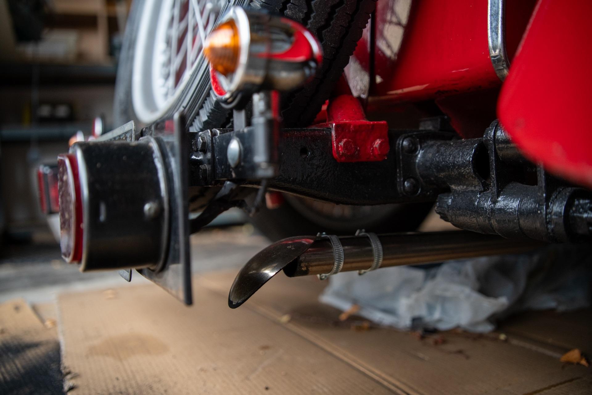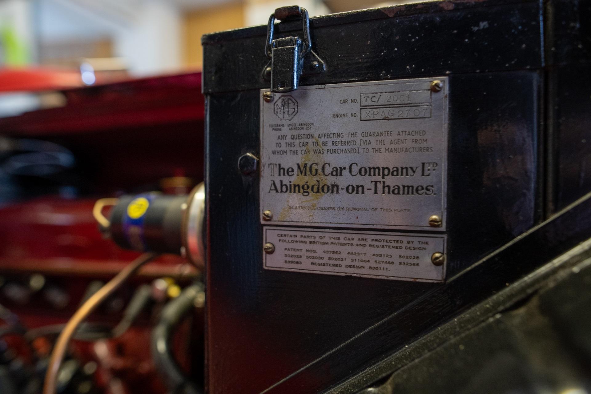 The TC Midget was the first post-war MG launched in 1945. It was quite similar to the pre-war TB, sharing the same 1250cc pushrod-OHV engine with a slightly higher compression ratio of 7.4:1 generating 54bhp at 5200rpm. The makers also provided several alternative stages of tuning for 'specific purposes'. It was exported to the United States in large numbers, despite only ever being built in right hand drive. The body was approximately four inches wider than the TB measured at the rear of the doors to give more cockpit space. The overall car width remained the same resulting in narrower running boards with two tread strips as opposed to the previous three. The tachometer was directly in front of the driver while the speedometer was on the other side of the dash in front of the passenger.