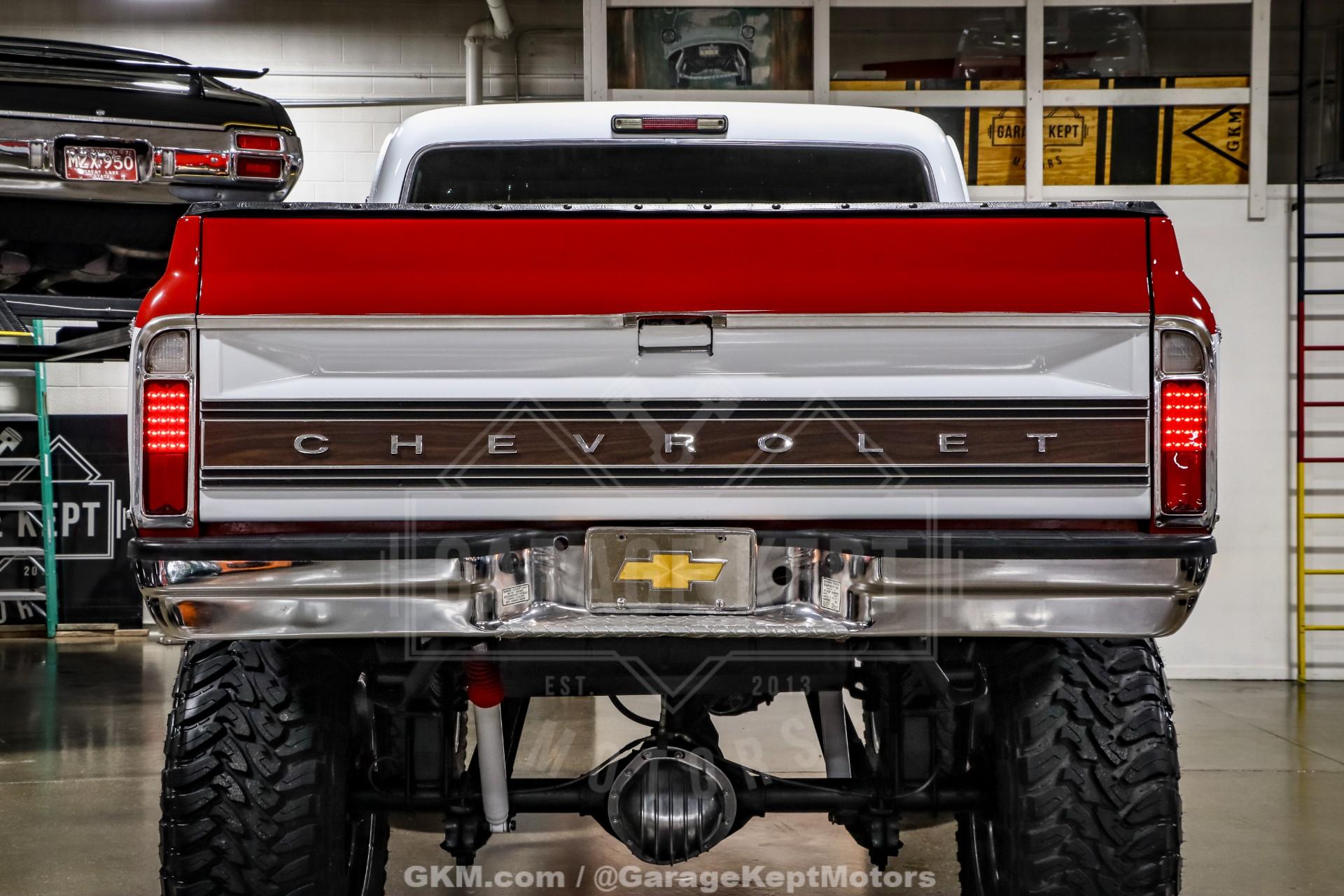 1971 Chevrolet C/K10- 350ci V8- Automatic Transmission- 4x4- Skyjacker Lift Kit- 20" Fuel Wheels- 37" Toyo Open Country Tires- Red and White Exterior- Red InteriorThis 1971 Chevrolet C/K10 is a bold, lifted classic pickup that blends vintage square-body style with serious off-road presence. Powered by a dependable 350ci V8 and paired with an automatic transmission, this K10 delivers strong performance both on and off the pavement. With factory 4x4 capability, it's built to handle rough terrain while still offering the unmistakable feel of a classic Chevrolet truck.Finished in a striking red and white exterior, this K10 wears its classic lines proudly while standing tall on a Skyjacker lift kit. The aggressive stance is completed by 20-inch Fuel wheels wrapped in massive 37-inch Toyo Open Country tires, giving the truck a commanding look and the ground clearance to match. The combination of modern wheels and tires with the vintage body creates a standout appearance that turns heads wherever it goes.Inside, the red interior complements the exterior perfectly, delivering a cohesive and period-correct look with plenty of classic truck charm. The cabin retains its straightforward, functional design while offering a comfortable driving position and excellent visibility, exactly what enthusiasts love about early '70s Chevy pickups.Highly sought after for their rugged simplicity and timeless styling, 1971 C/K10s are becoming increasingly hard to find, especially in lifted 4x4 form. This truck offers the best of both worlds: classic muscle-era attitude and modern off-road capability. Whether you're cruising, hitting trails, or showing it off at local events, this K10 is ready to be enjoyed.