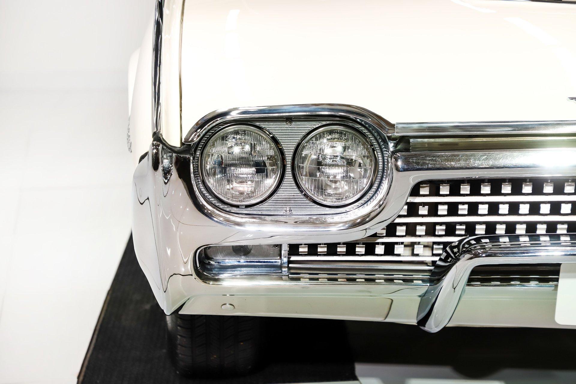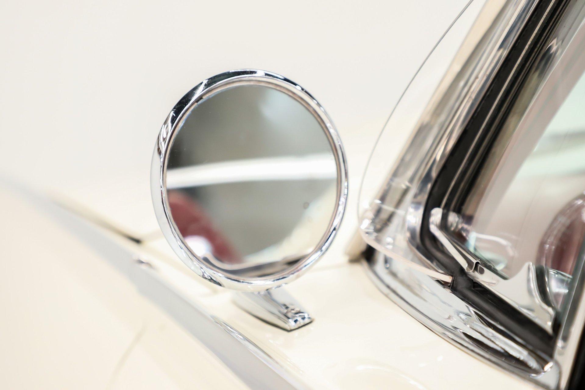 EXTERIOR: It looks like a horizontal rocket ship with its bullet shaped front end and twin thruster tail lights! This one is even that much cooler with the Sport Roadster package. The tonneau cover over the back seat lifts right off and does not interfere with the top. The fit and finish is really excellent on this car. Someone worked hard making sure it is straight as an arrow. It has the scoop on the hood and fender skirts in back.R epainted its original Corinthian white, they gave it the same effort as a black car, it's a white mirror! The chrome sparkles, the stainless is polished and straight. It's a spectacle demonstrating the power top function. All from one switch the rear lid unscrews, opens, unfolds, then the top comes up, the lid closes and screws down tight. The white convertible top looks great. You know what else looks great? The wire wheels! They sparkle like jewelry and are wearing Hankook tires.