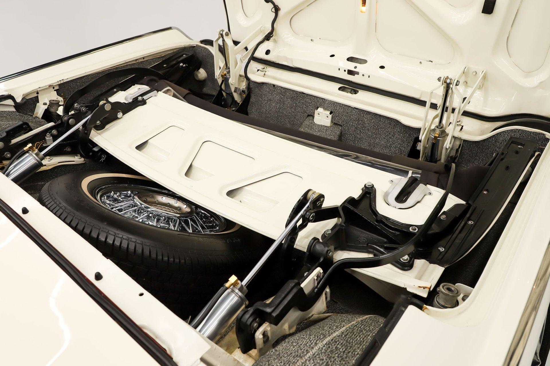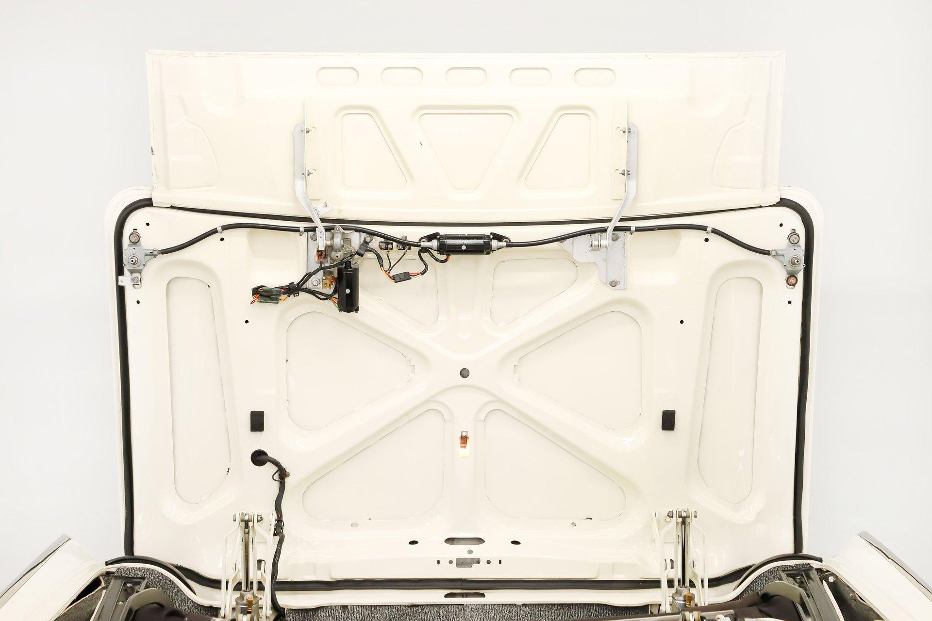 TRUNK COMPARTMENT: It's one of the best compartments I've seen in one of these! It has an upgraded relay system from Thunderbird Ranch. It replaces the old relays with failsafe electronic relays with manual overrides and also comes with an emergency deck unlock switch. The rams and hoses look new too. It has the complete reproduction liner kit and they even sprung for a 5th wire wheel for the spare.