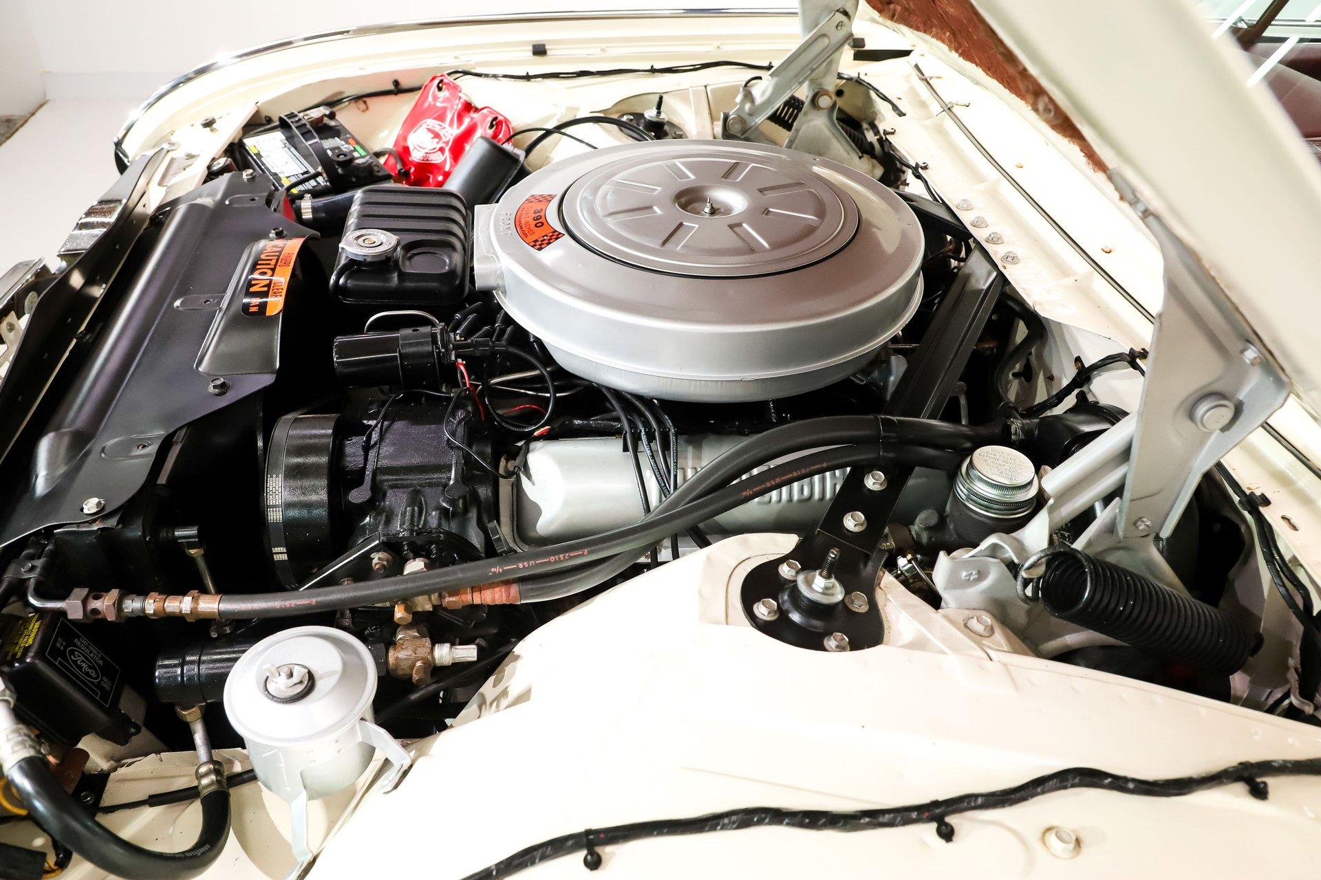 ENGINE COMPARTMENT: It is obvious that this motor compartment was disassembled and restored! Every component looks clean and proper. That's a 390 motor making 300 hp, it runs smooth as silk. It also features factory air conditioning along with power steering and brakes. It's very tidy, the plug wires are run neatly, the choke tube has correct cloth wrap, it has the rubber flaps over the suspension, it has hood insulation and even the Ford washer fluid bag. The metal surfaces are painted neatly, the bolts look fresh.