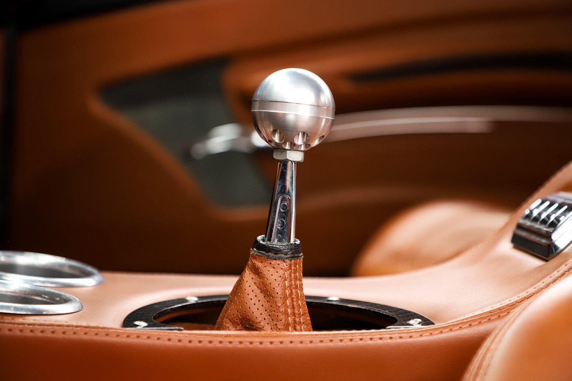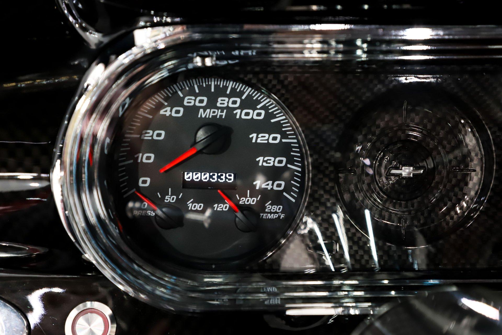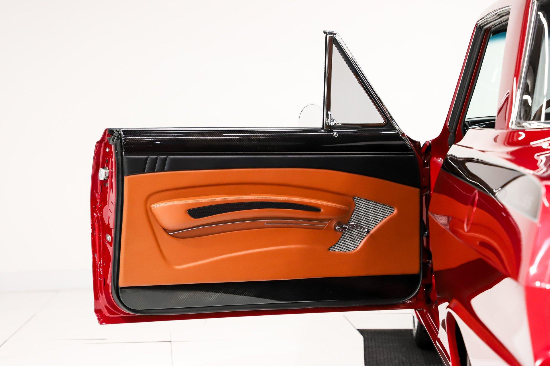 INTERIOR: First class in here! My words won't do it justice but I'll try, look at the pictures. Every square inch was professionally customized. There's so much sculpturing and 1 of a kind hand fabrication. It's upholstered in hand stitched, glove soft Italian leather. There are 4 bucket seats and a very nice center console. Custom sculpted side panels and rear shelf. The dash panel has a carbon fiber effect and premium billet Vintage Air controls and vents. A custom lower panel was made for a very finished look. The custom gauges show just 339 miles on the odometer. It uses an electric e-brake and a keyless ignition! You hit unlock on the key fob then push the starter button to fire up that NASCAR motor. The console is home to luxury items like power windows, a 12 volt receptacle, JBL Bluetooth stereo and cup holders. Too high class for you? That manual 6-speed shifter will remind you that you're in a wolf with sheep's clothes! You won't see the Fat Mat sound deadener or the amps and speakers but you will appreciate that they are there. The leather wrapped Billet Specialties wheel is on a polished column.