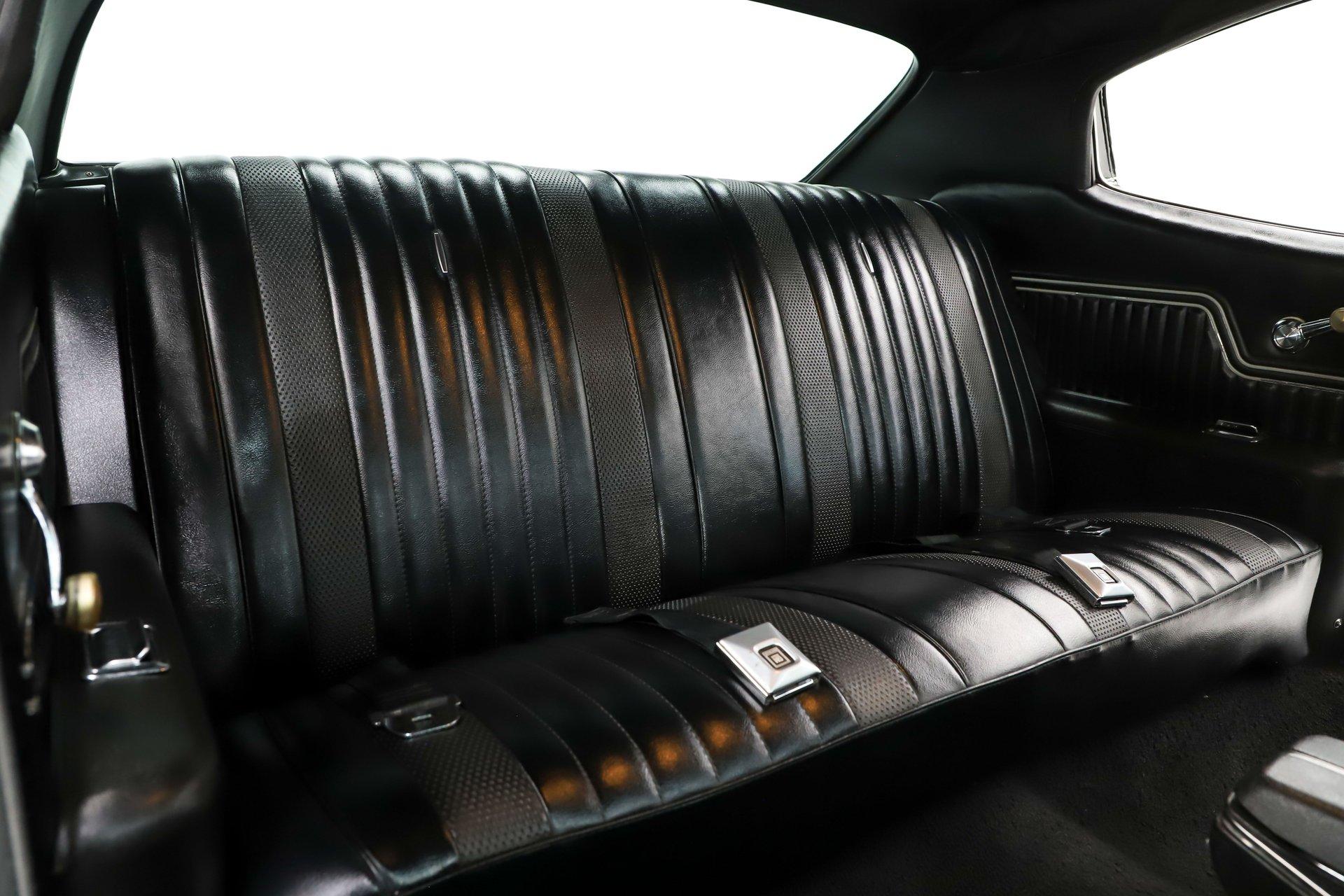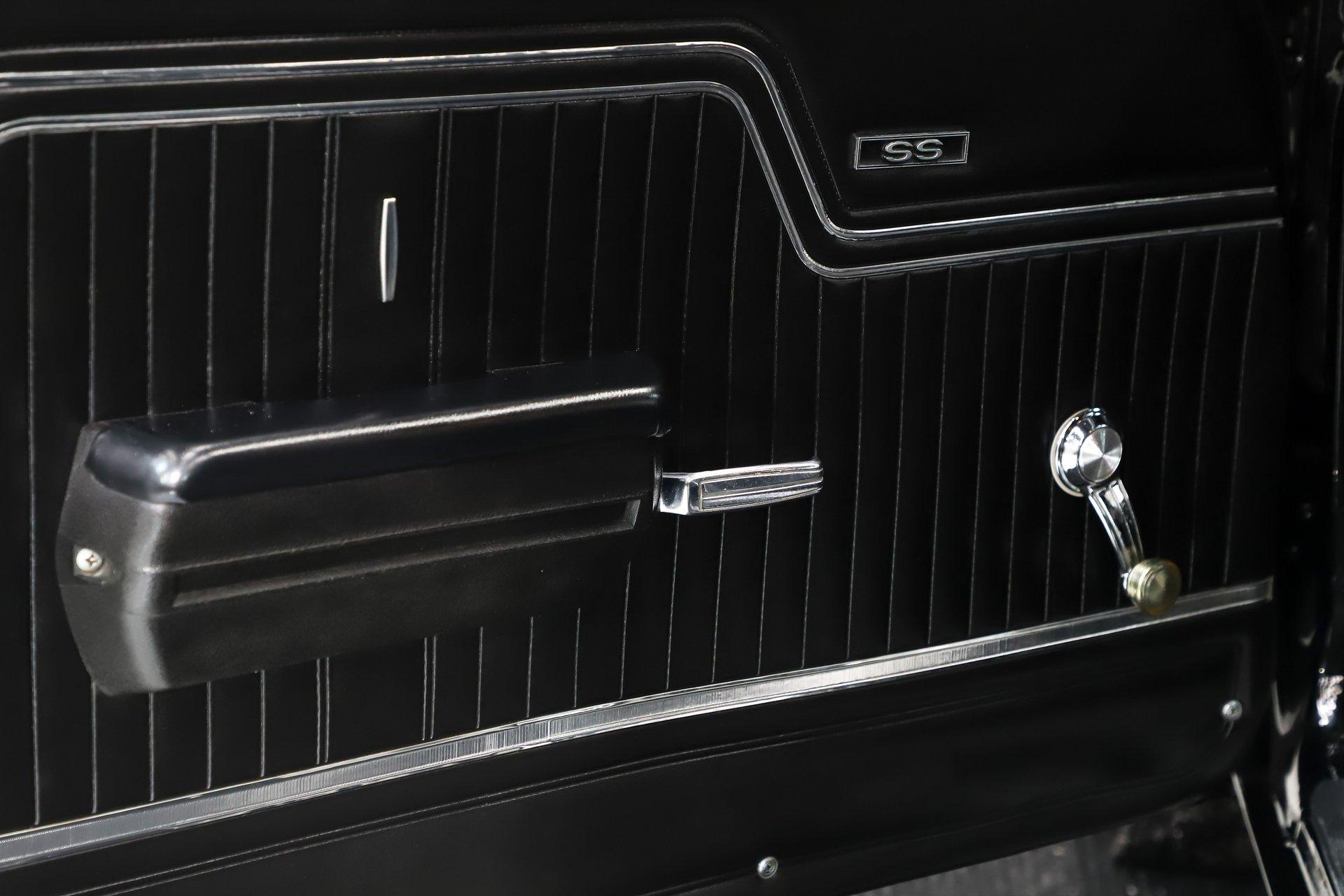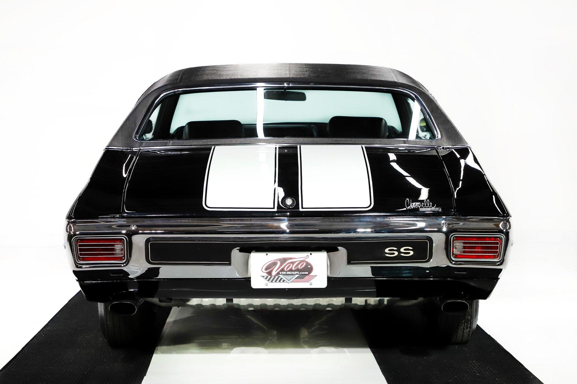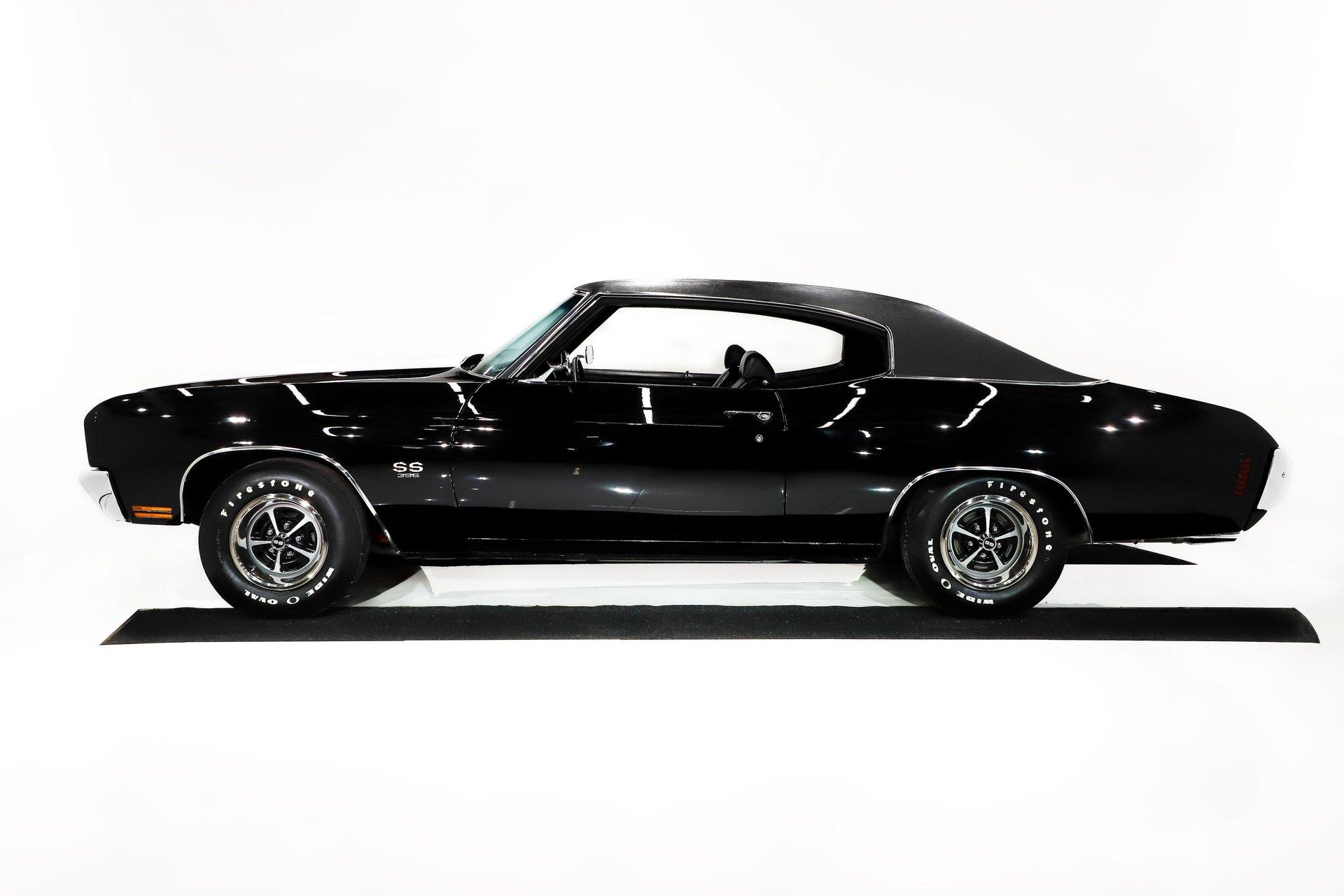 EXTERIOR: This the best looking skunk I've ever seen! Stunning factory tuxedo black with the white SS stripes. The body is laser beam straight and smooth all the way down to the rockers. The gaps fit exceptionally well and the paint is polished to a very smooth high gloss finish. It looks like all of the trim has been replaced including the moldings, door handles, emblems, bumpers etc. The vinyl top and weatherstrips were replaced. All of the glass was even replaced! Brought back exactly to 1970 specs with T3 headlights and Firestone Wide Oval tires!
