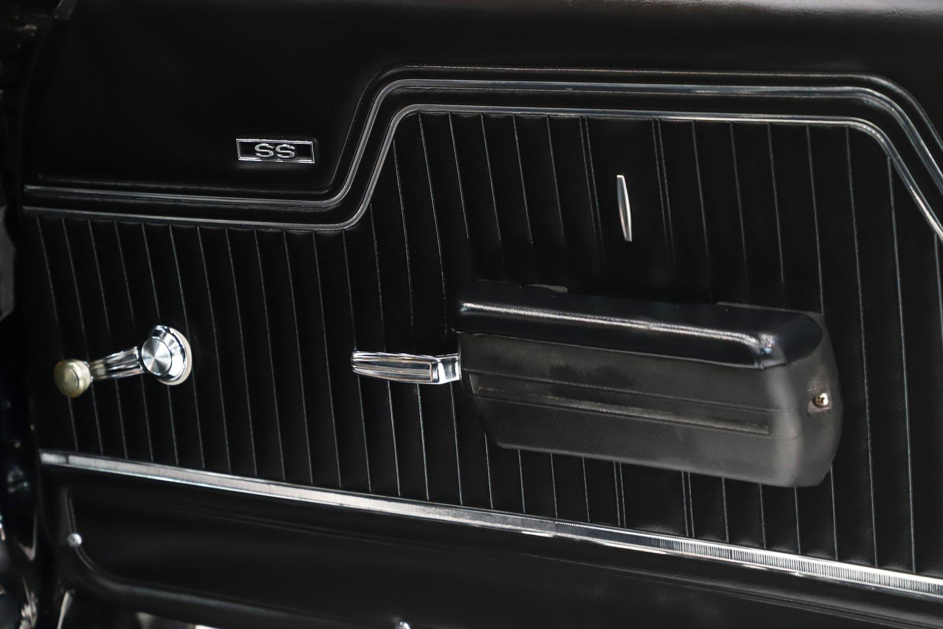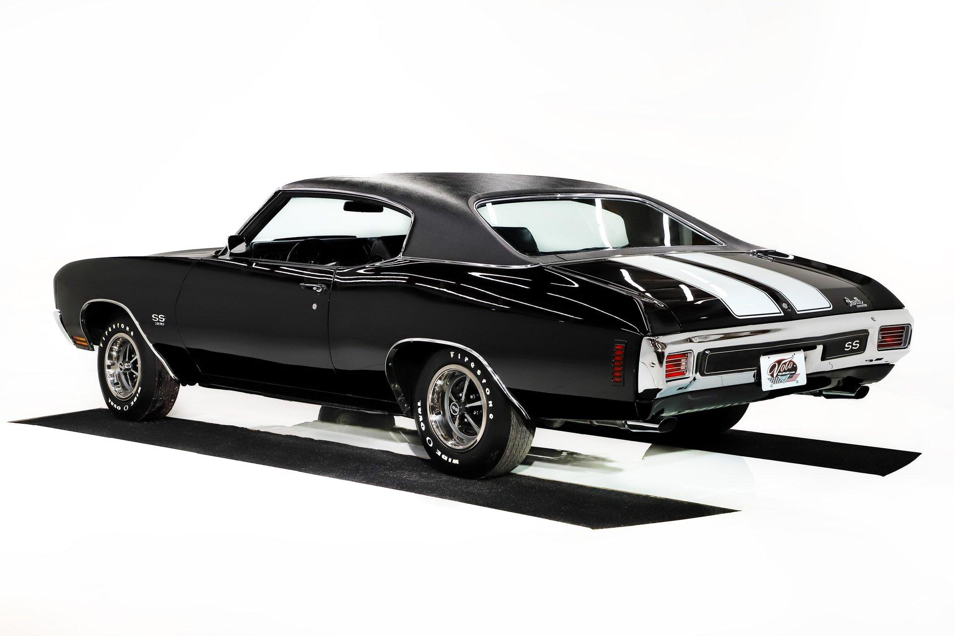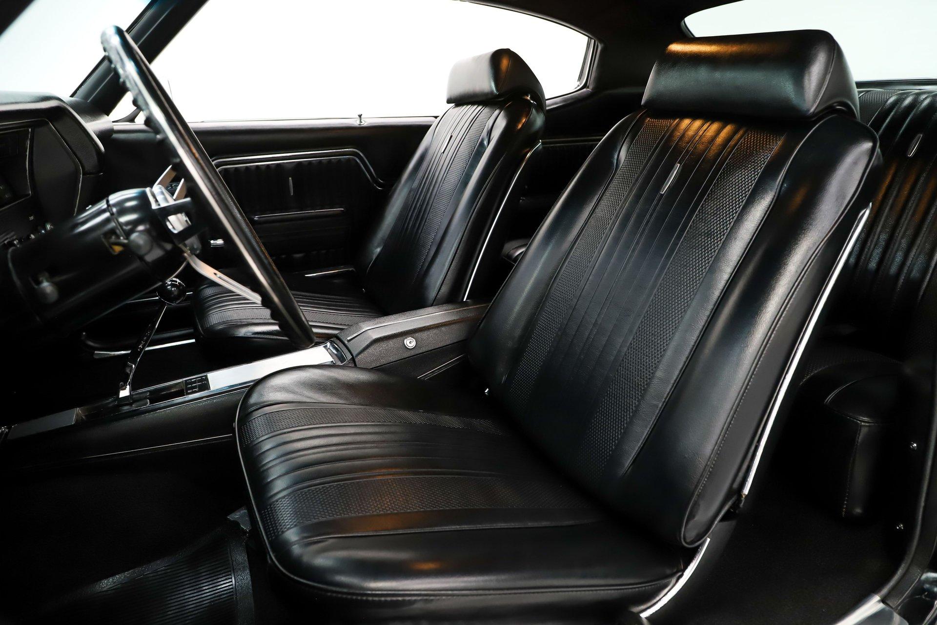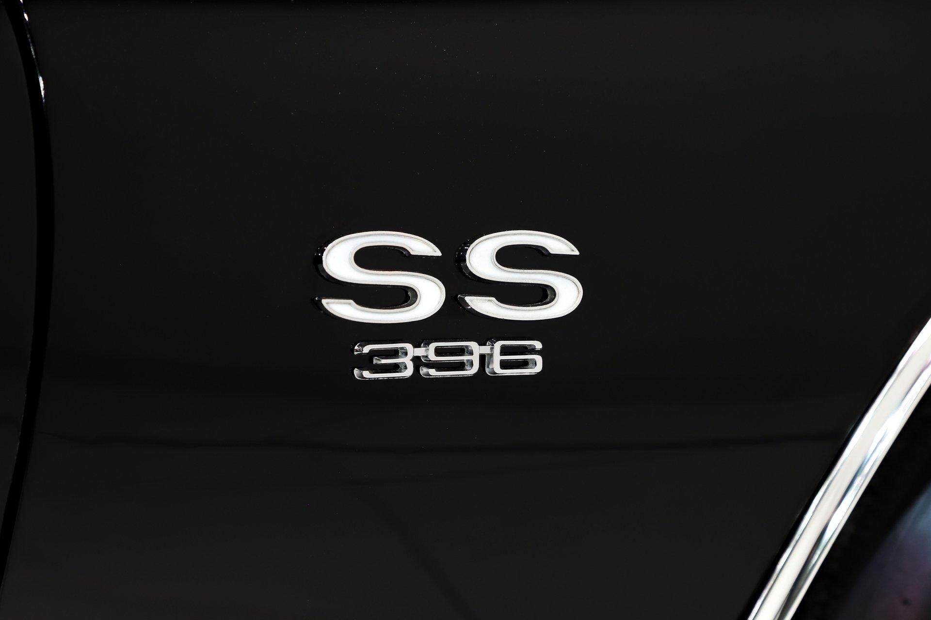 EXTERIOR: This the best looking skunk I've ever seen! Stunning factory tuxedo black with the white SS stripes. The body is laser beam straight and smooth all the way down to the rockers. The gaps fit exceptionally well and the paint is polished to a very smooth high gloss finish. It looks like all of the trim has been replaced including the moldings, door handles, emblems, bumpers etc. The vinyl top and weatherstrips were replaced. All of the glass was even replaced! Brought back exactly to 1970 specs with T3 headlights and Firestone Wide Oval tires!
