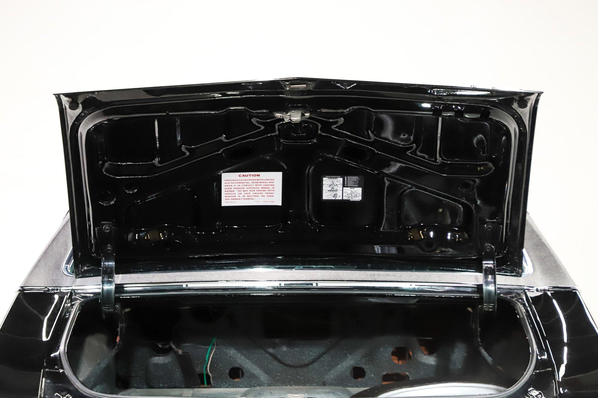 TRUNK COMPARTMENT: Very clean and complete under the trunk lid and the jamb is gloss black. Inside is all clean metal with a nice spatter finish paint. There's a reproduction trunk mat, weatherstrip and stickers. it even has a reproduction SS wheel, Firestone and jack assembly!