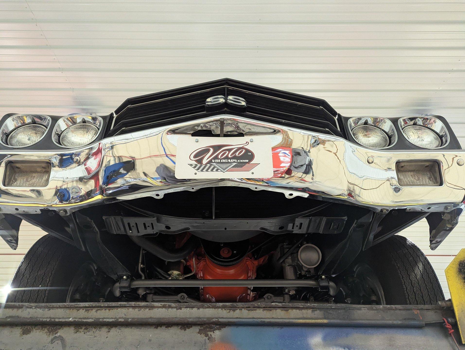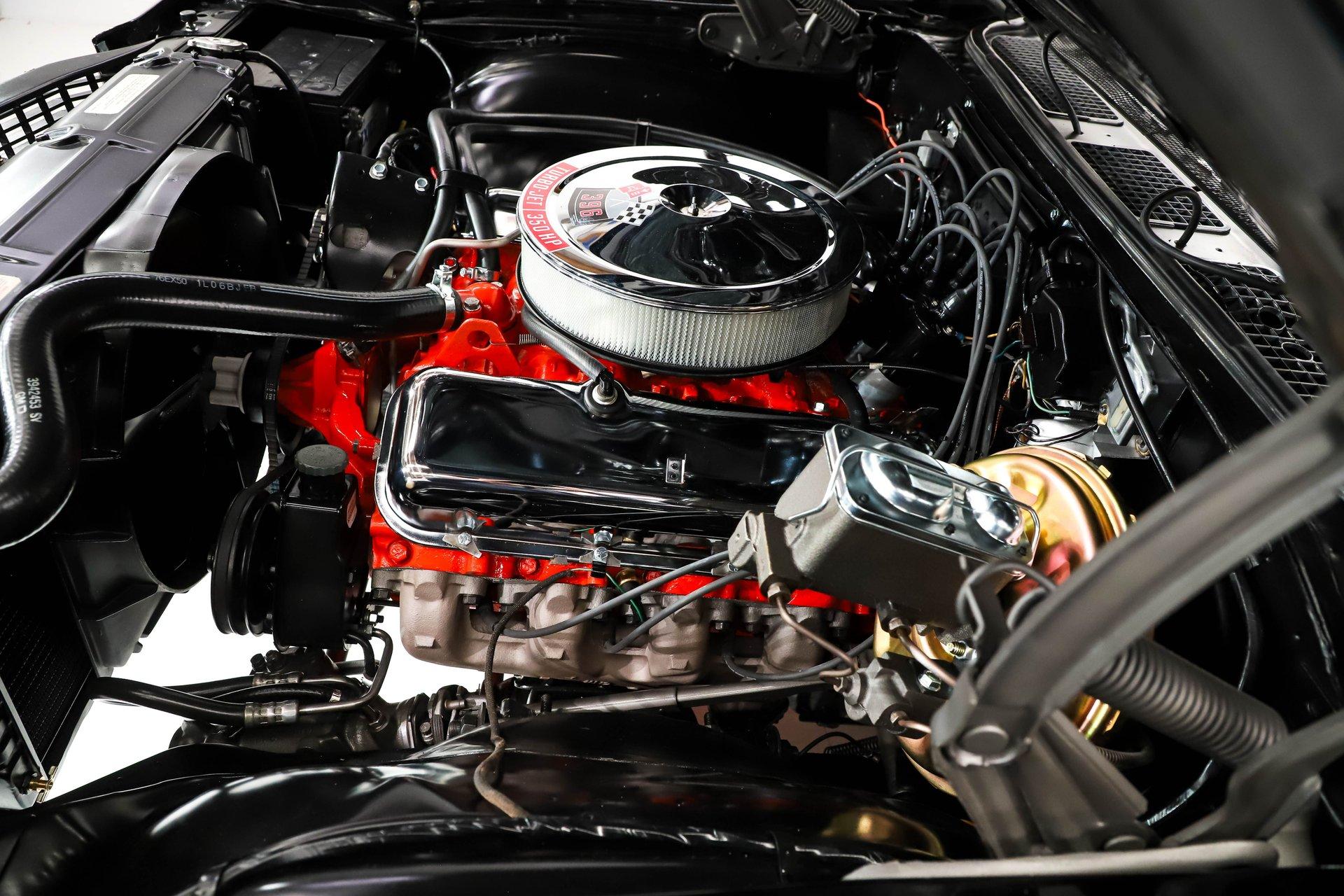 ENGINE COMPARTMENT: This is a freshly detailed engine compartment to factory original. It has a period correct 396 motor with all the stock components. New correct chrome valve covers and air cleaner set it off. Features include power steering and power brakes with a cadmium plated booster. There's reproduction hoses and clamps, the wiring is new and the washers are even hooked up. Everything is very neatly painted too.