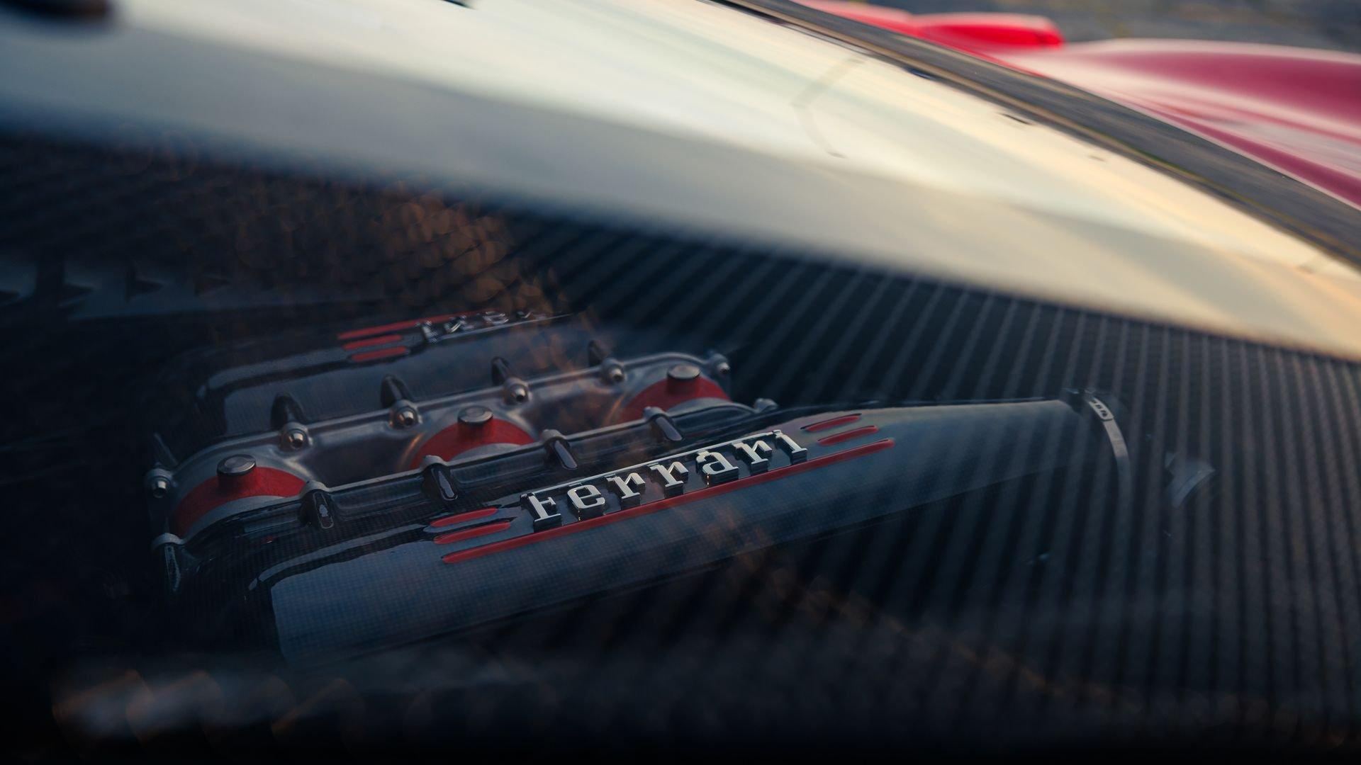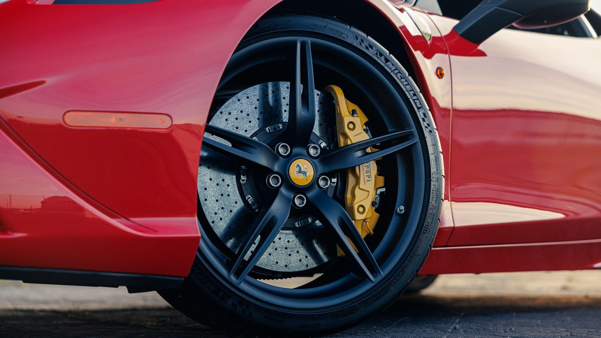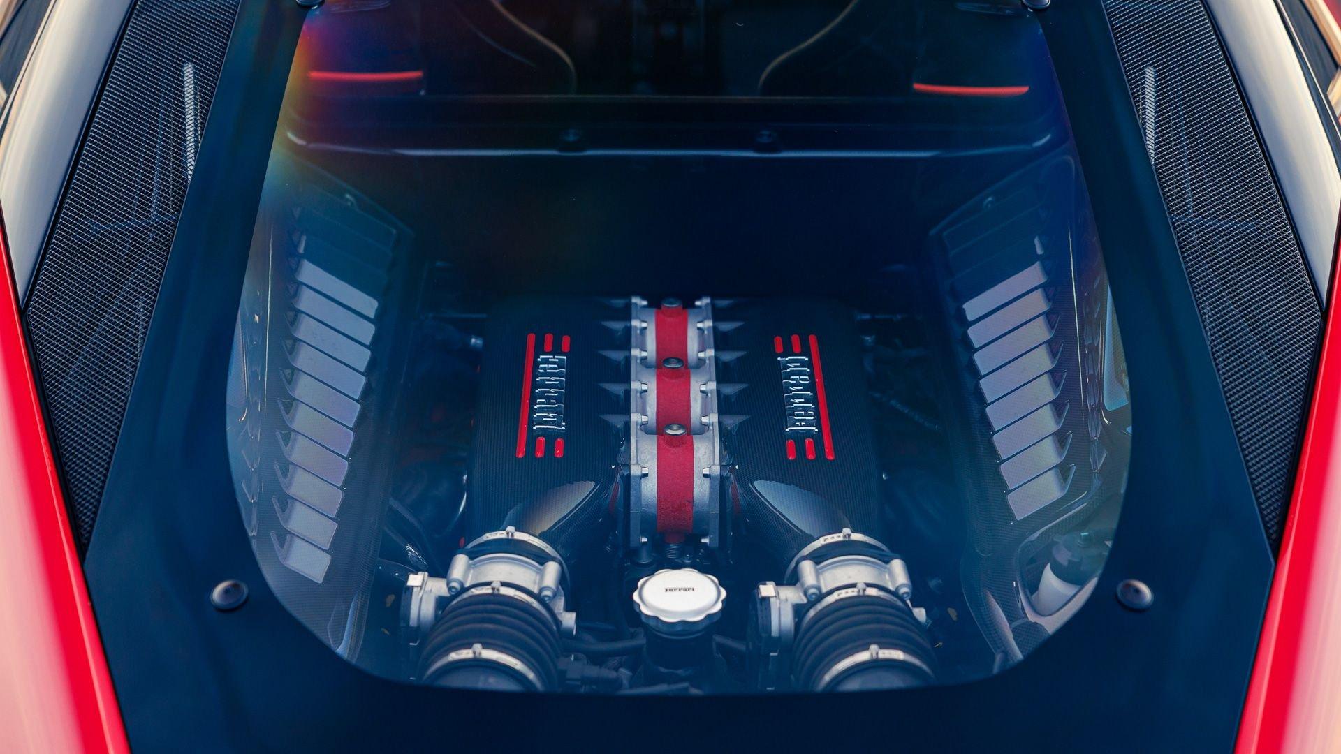 Behind the driver sat Ferrari's F136 4.5-liter V8, reworked with upgraded internals and a 14.0:1 compression ratio, enabling a screaming 9,000-rpm redline and establishing, at the time, the marque's most powerful naturally aspirated V8 to date. Complementing the engine was a comprehensive set of chassis and aerodynamic developments, including active aero surfaces, Side Slip Control system integrating the adaptive magnetic dampers, F1 dual-clutch gearbox, and E-Diff to deliver a Fiorano Circuit lap record of 1 minute, 23.5 seconds-1.4 seconds faster than the legendary Ferrari Enzo on the 1.86-mile circuit.
