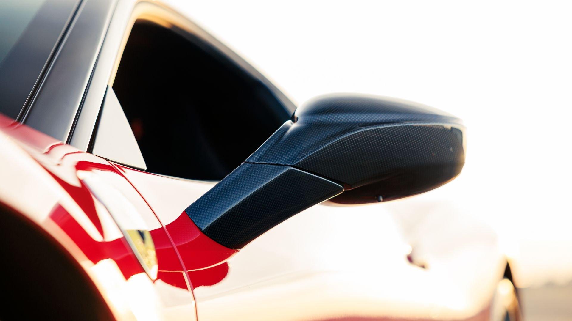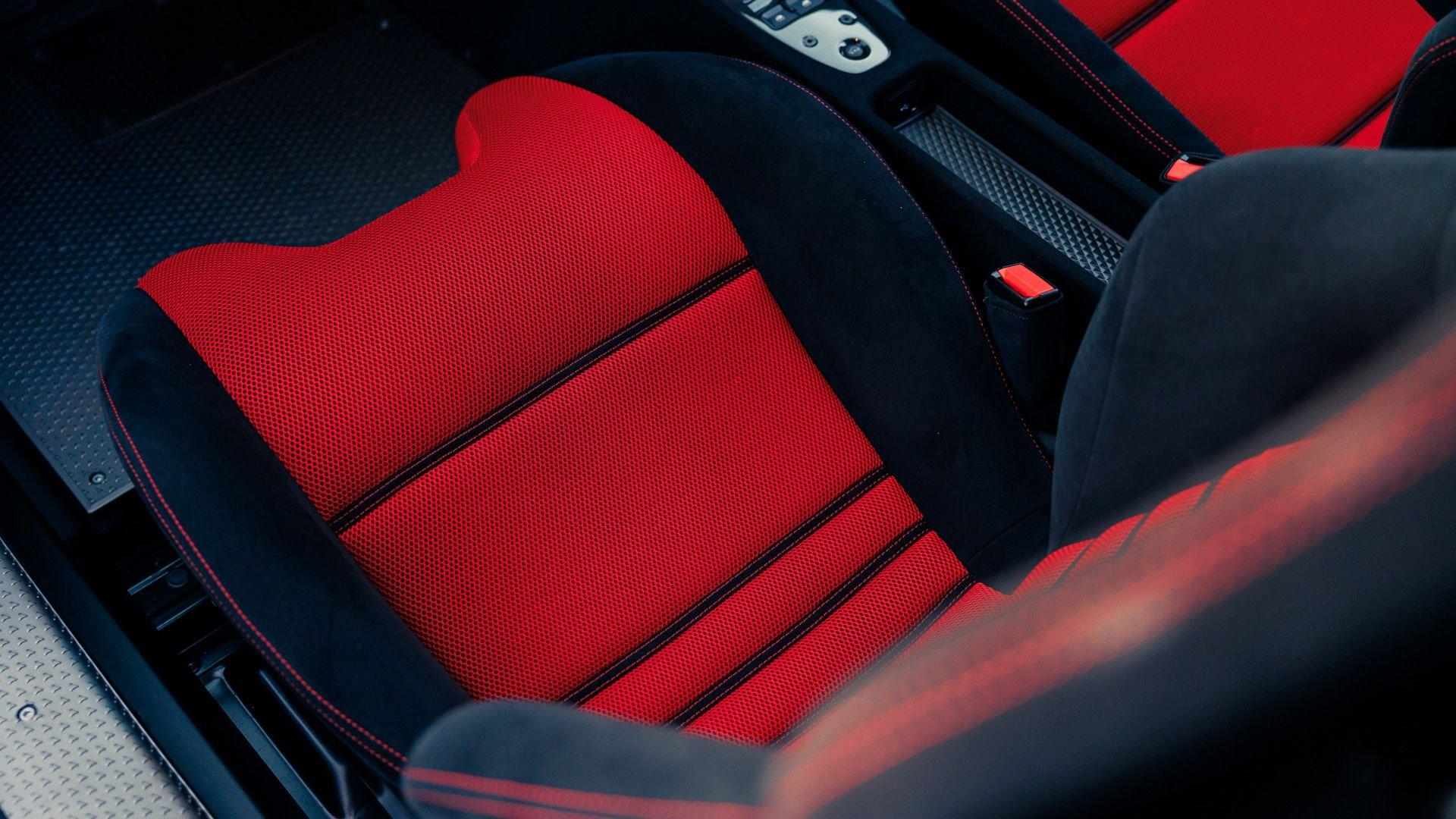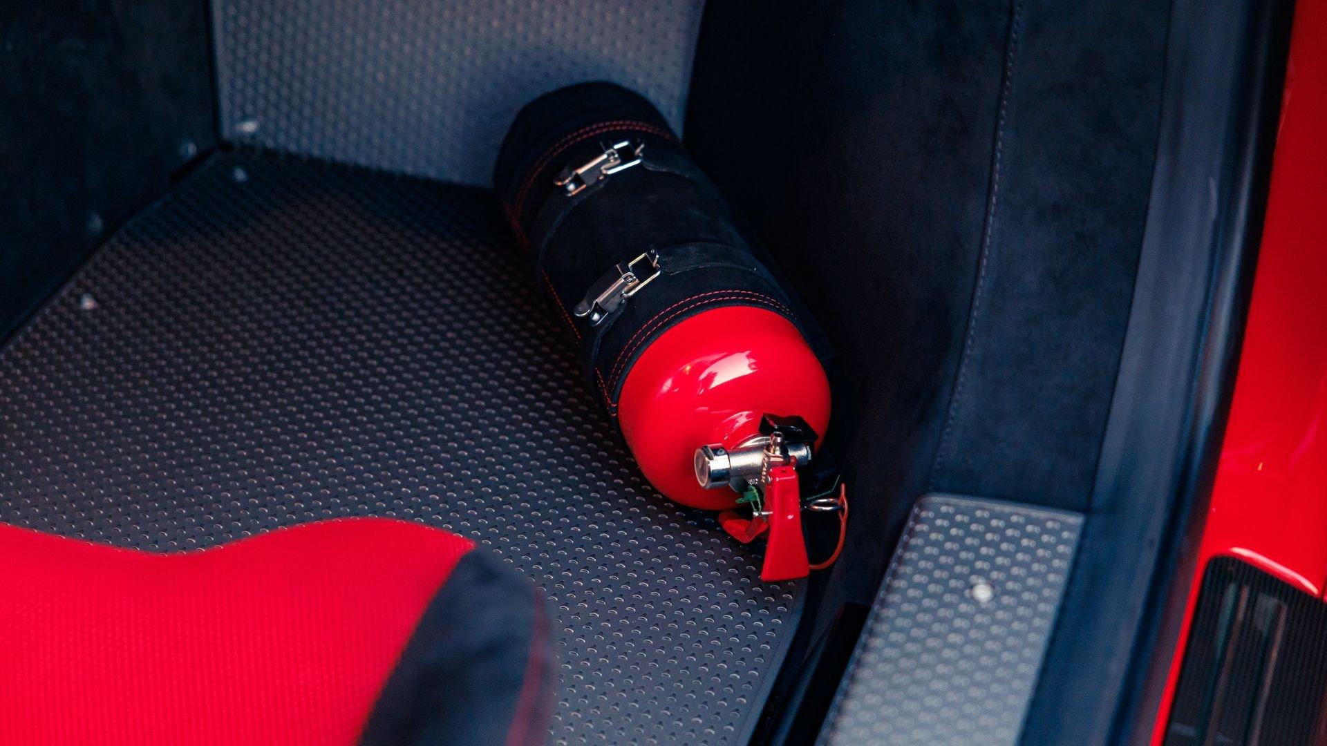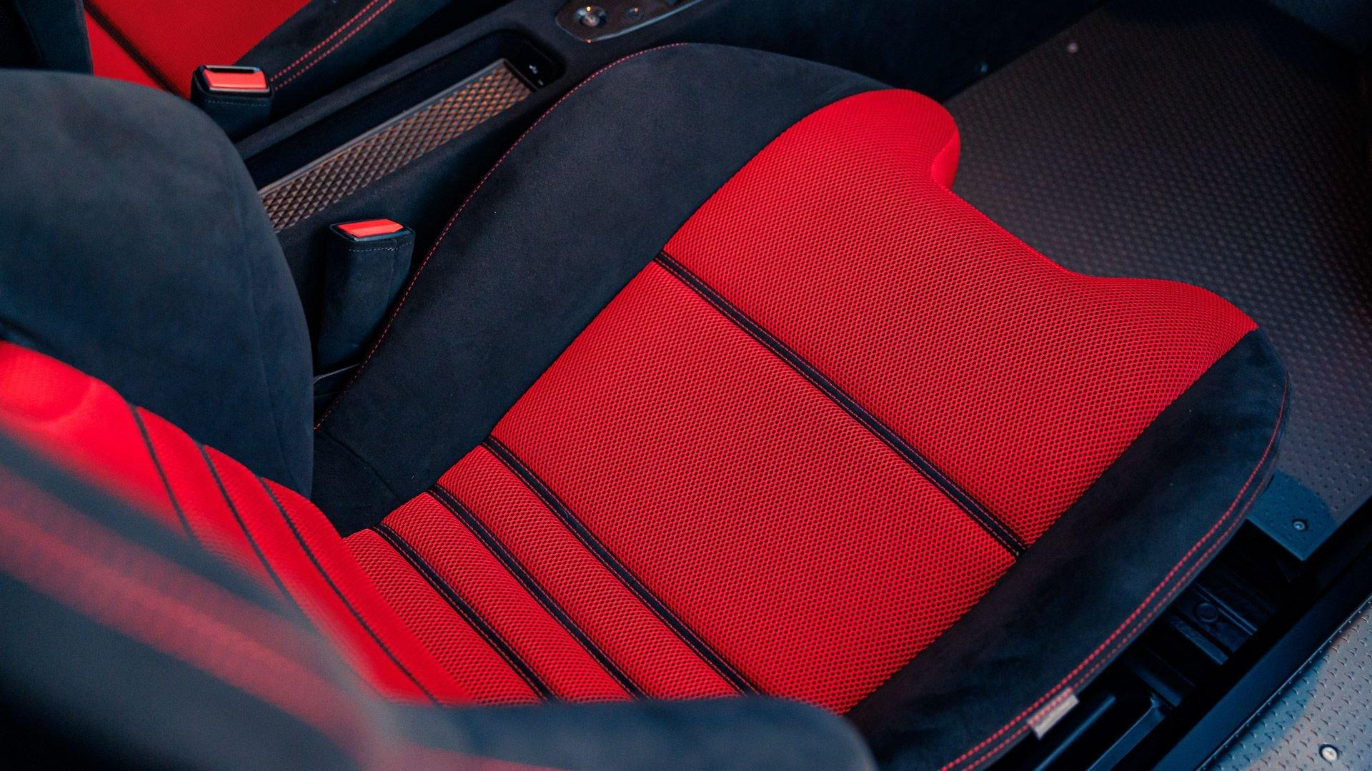 Chassis number 211323 was delivered new via Boardwalk Ferrari (now Ferrari Dallas), as confirmed by a digital copy of its original window sticker. It was strikingly specified in Rosso Corsa with an optional Nero (Black) roof-a $11,811 selection-over Alcantara Nera upholstery with Rosso seat inserts. Notably, it was ordered without the launch livery's familiar NART racing stripe, a subtle “stripe delete” that lends the car a more understated appearance. Desirable factory options included extensive exterior carbon fiber, comprising the front flaps, engine cover, and rear diffuser, as well as yellow brake calipers, titanium exhaust pipes, Adaptive Frontlighting System (AFS), and the must-have Suspension Lifter. The cockpit was similarly well appointed with Cavallino Rampante stitching on the headrests, an Alcantara-trimmed central tunnel and wheel arches, and a handy fire extinguisher.