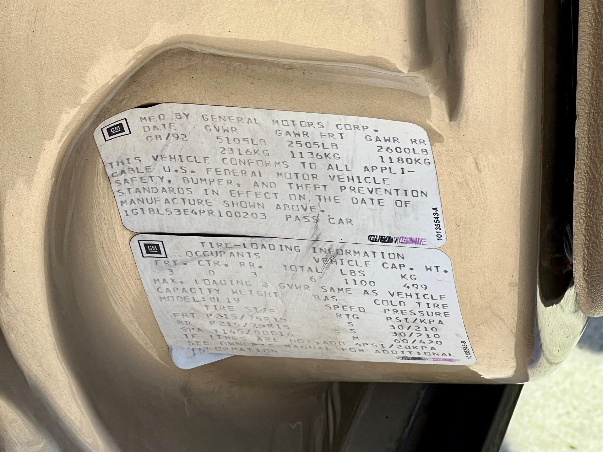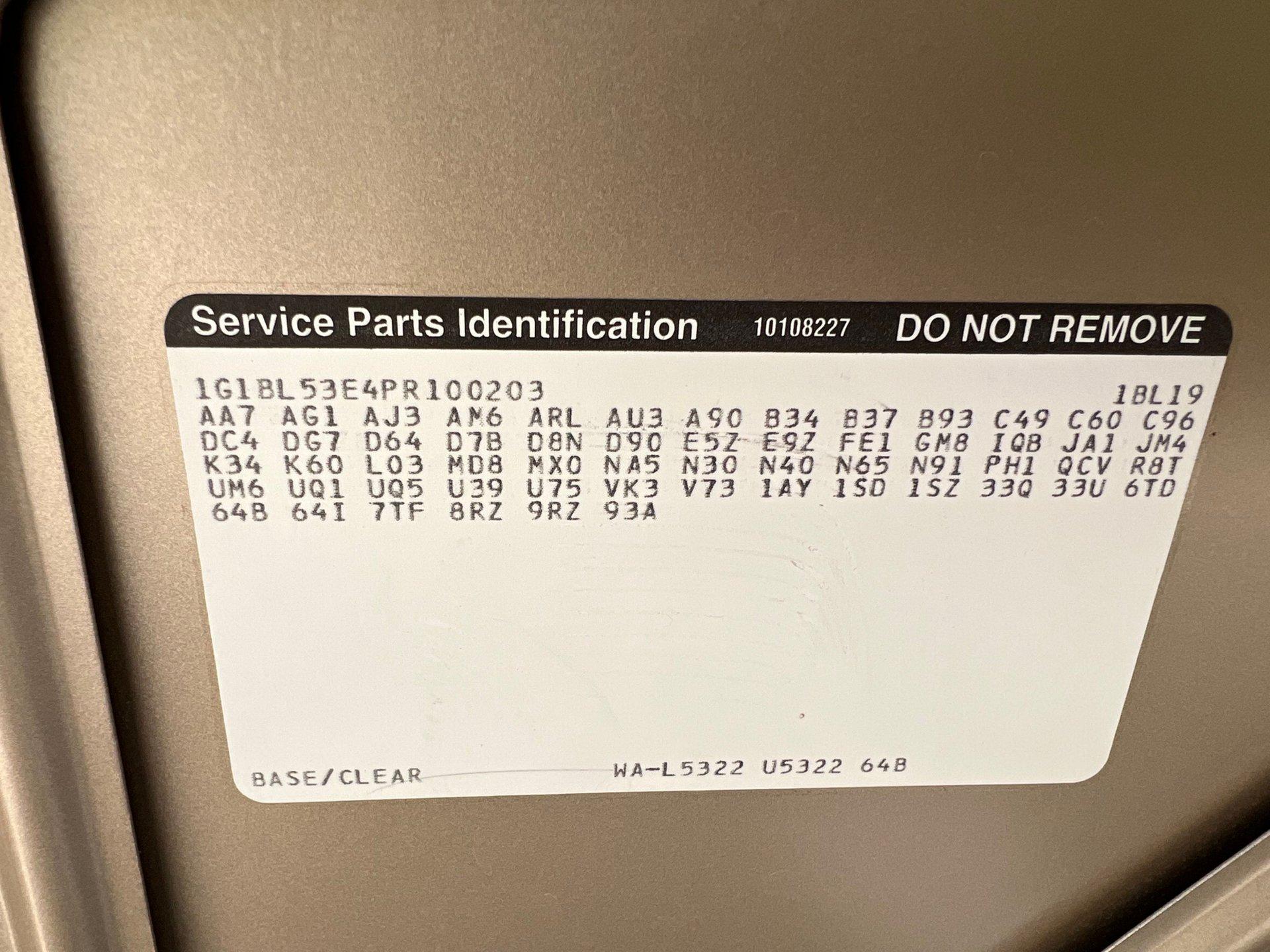 - VIN Code1g1bl53e4pr100203