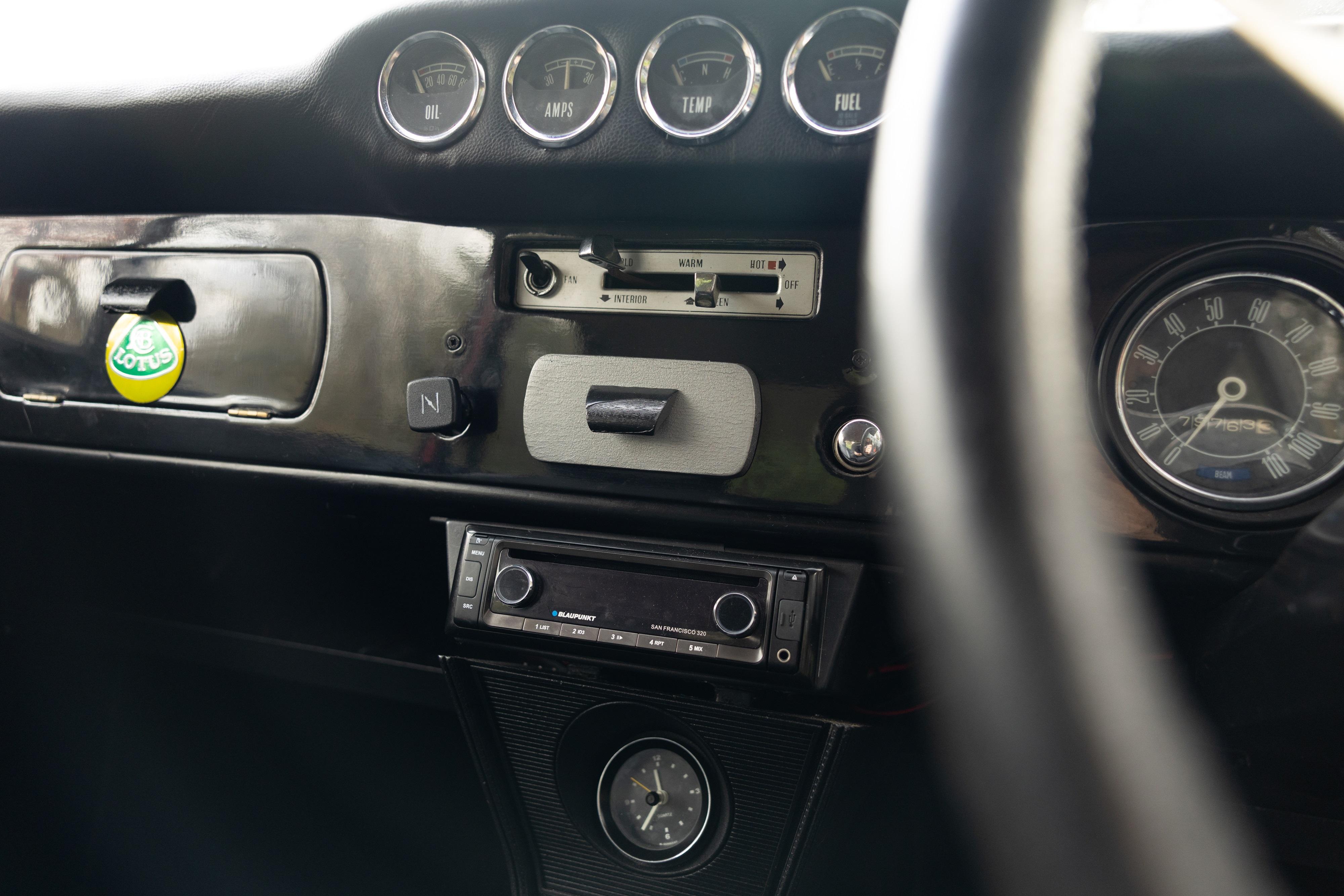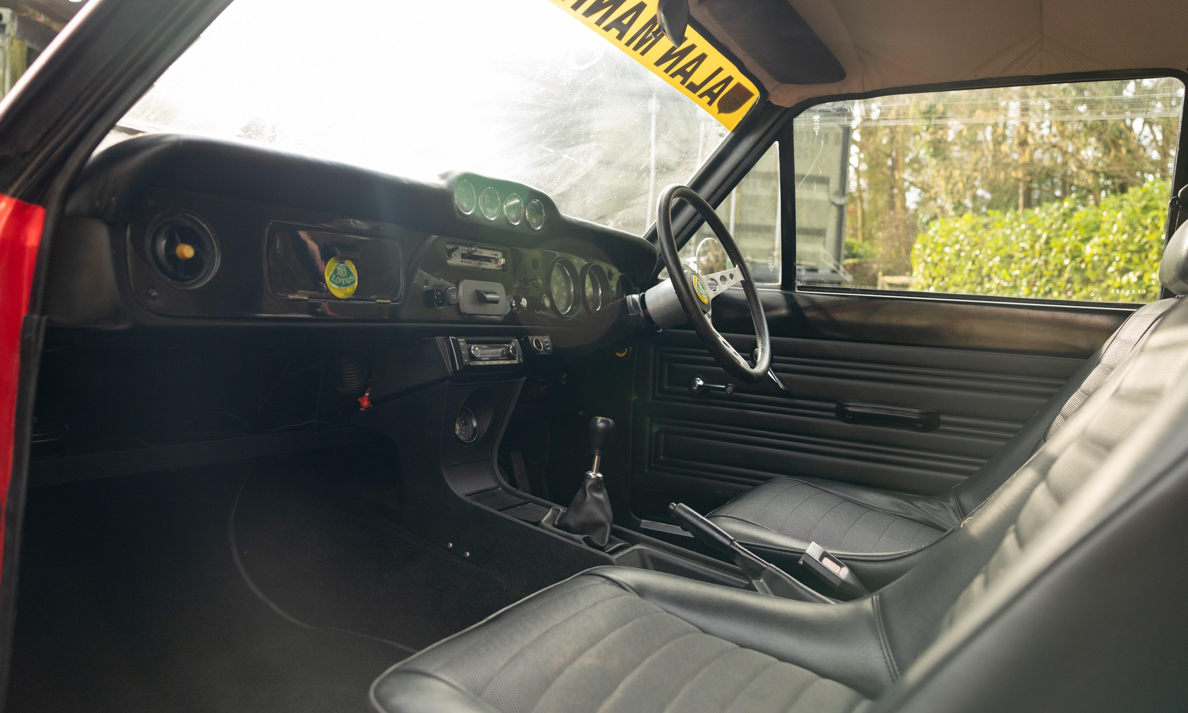 Originally registered on 1st February 1969, this Cortina started its life as a 1300cc De-Luxe and was finished in blue. The car was off the road from 1988 and in 2019 purchased in need of total restoration. The car was then subject to a full bare shell rebuild and a file of invoices are with the car, along with some photos. It was rebuilt in Alan Mann Lotus racing colours as a tribute car. The interior was re-fitted and re-trimmed as required, a Series I dashboard was fitted and clearly the restoration was carried out with a keen eye for detail. The 2.0 pinto engine was stripped down and fully rebuilt with +75 pistons and new rings, the crankshaft re-ground and treated to a new oil pump, new water pump, standard Ford camshaft, new double valve springs, and rebuilt cylinder head. A Type 9 gearbox was fitted along with a 3.9 diff. The car was also treated to a new RS2000 manifold and downpipe, Capri exhaust system, alloy radiator, electric fan, silicone hoses, new plug leads, electronic AccuSpark coil, electronic distributor and new clutch. The braking system was treated to an Escort servo, Escort M16 calipers and discs, braided hoses, Escort Mk. II half-shafts, bearings, cylinders, shoes and drums to the rear. The suspension was rebuilt with new track control arms, new inner and outer track rod ends, the steering box rebuilt and all new bushes to the front and rear.