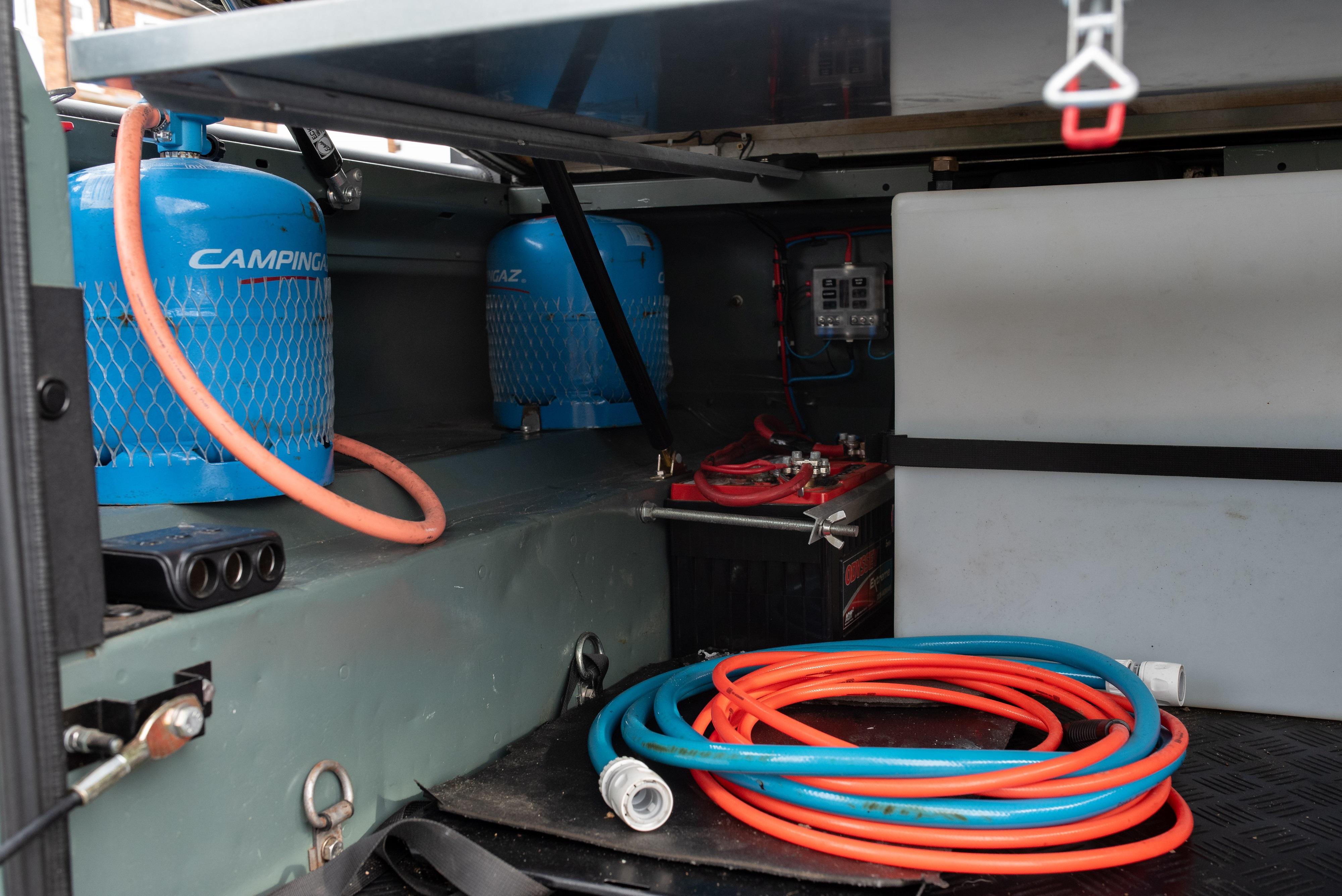Bespoke wheel carrier and back lid for secure and practical storage.