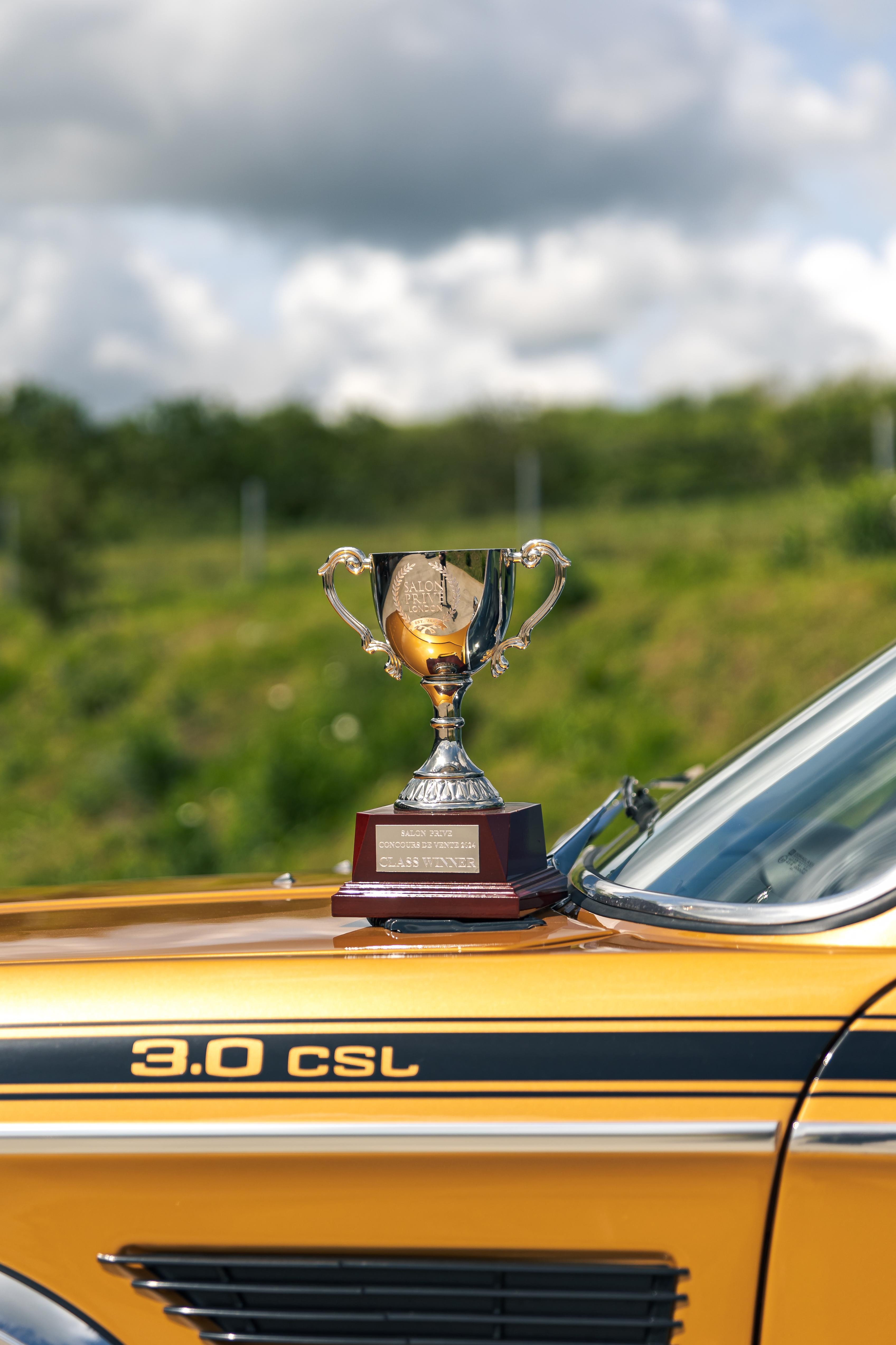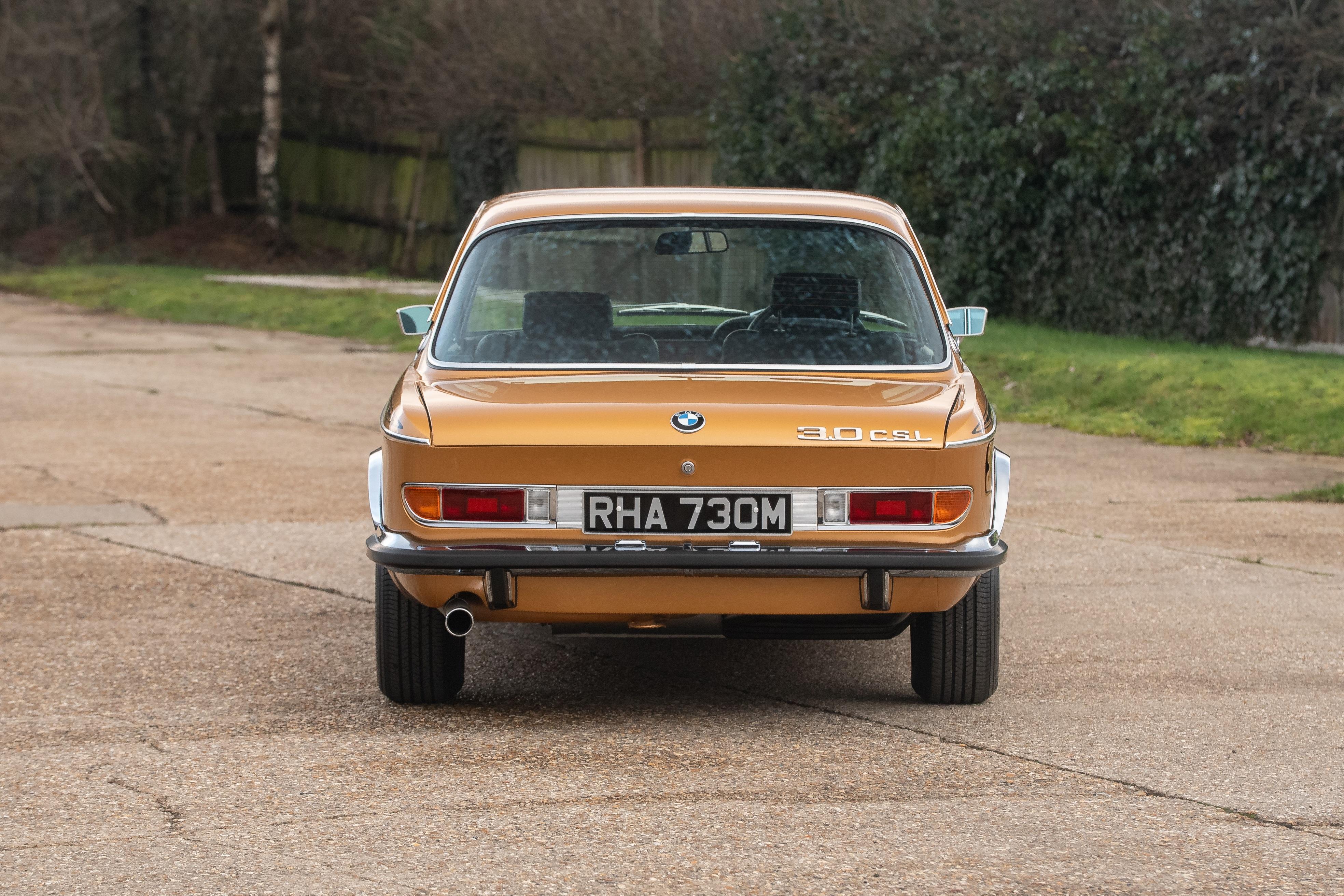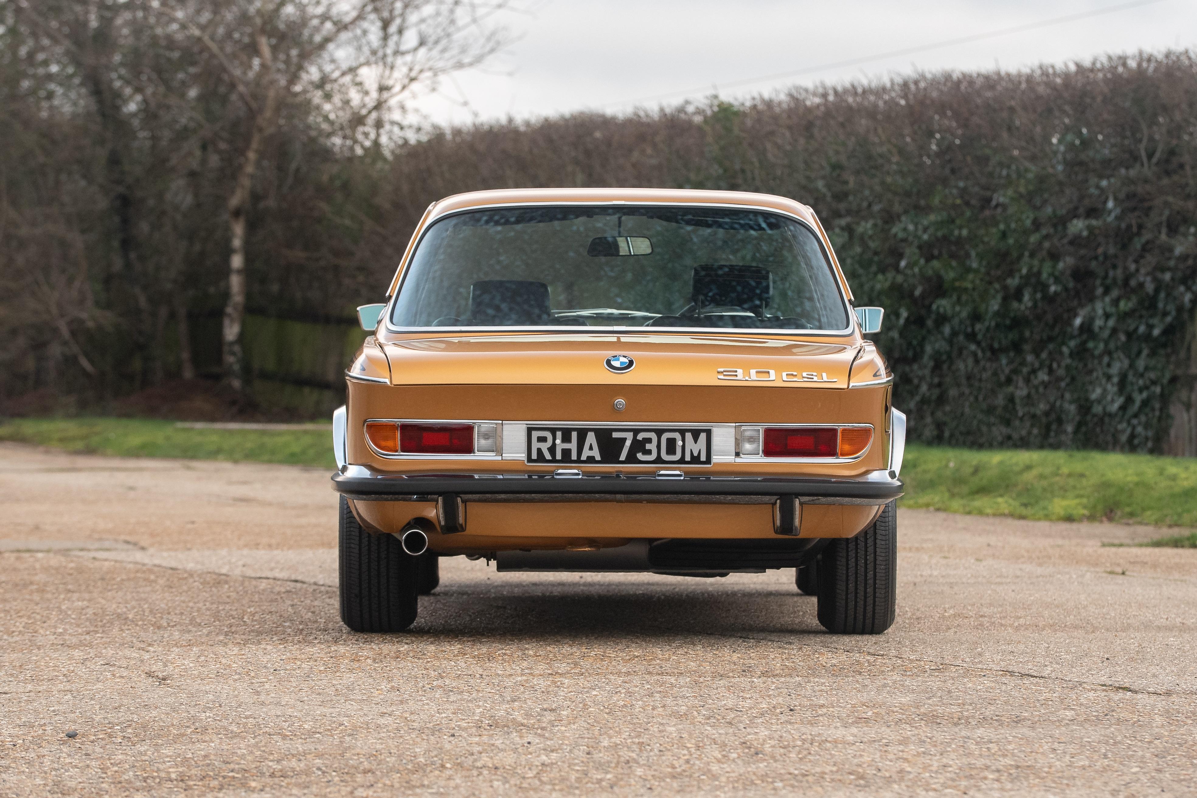 The matching number 3.0 litre engine has been fully rebuilt to ensure common integrity throughout the restoration. Every component attached has been stripped down and re-plated or replaced resulting in a fresh 'as new' finish rarely seen on the CSL. The gearbox and drivetrain have also been fully stripped with every bush of linkage refurbished or renewed; this becomes obvious when out on the road with a tight and positive shift. The period 14-inch BMW wheels are refurbished and present as new with sparkling chrome centre caps, new stickers and wheel bolts. Wrapped in 'as new' Dunlop tyres, the multi spoke alloys hide new calipers, discs and pads all round. All suspension components have been renewed with new shocks, ball joints and rubber bushes complementing an incredible restoration and contributing to a tight and responsive drive as if it were new back in 1972. It was first registered on 8th March 1974 and confirmed by BMW Group archive, as being produced from the factory in Ceylon Gold, chassis 2285446 has been lucky enough to have been completely and painstakingly rebuilt for a second lease of life. In the history file is a full photographic album of the restoration from start to finish showing the intense and lengthy effort that has been lavished on this historic BMW touring car. This CSL is now ready for a new owner to propel it into its second life as a brand new CSL restored to factory standards as it rolled out of BMW nearly 50 years ago. In 2024 this car was entered into the prestigious Salon Prive Concours De Vente where it finished as the class winner. Later that year it was also entered into the Montage of Beaulieu Simply BMW event where it also won the people's choice awards. Recently MoT'd with no advisories this car is ready to be enjoyed and displayed by its next owner. Consigned by James Good