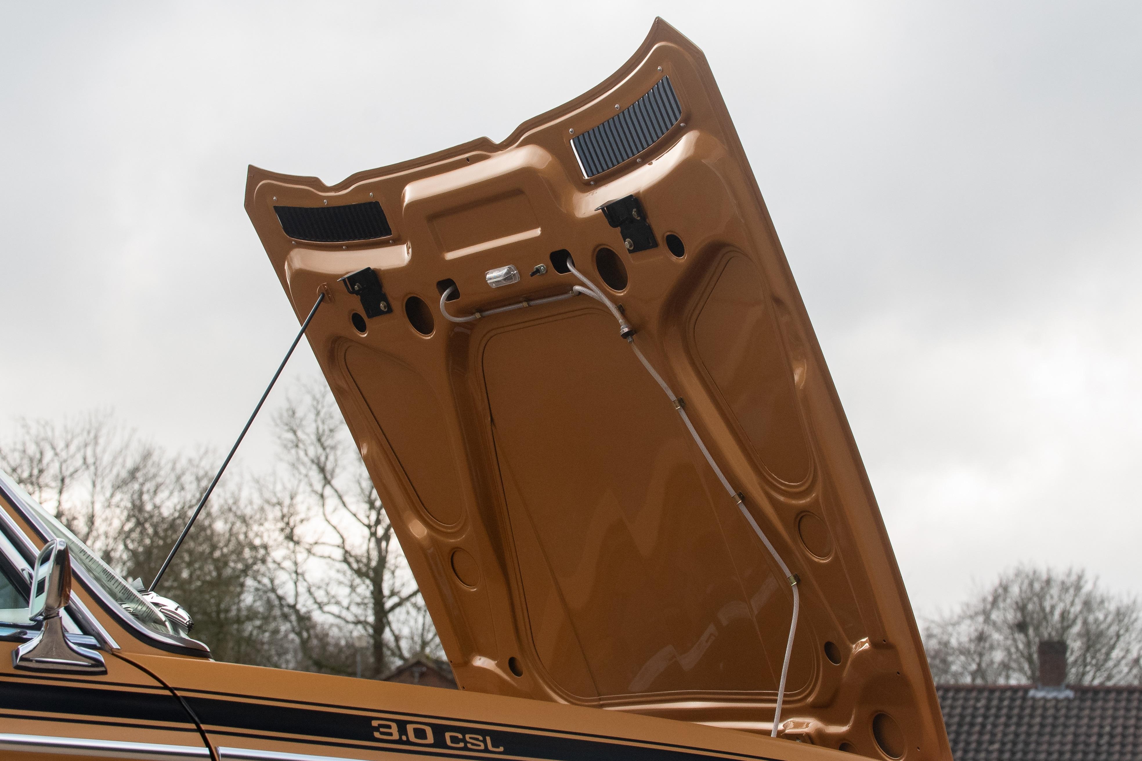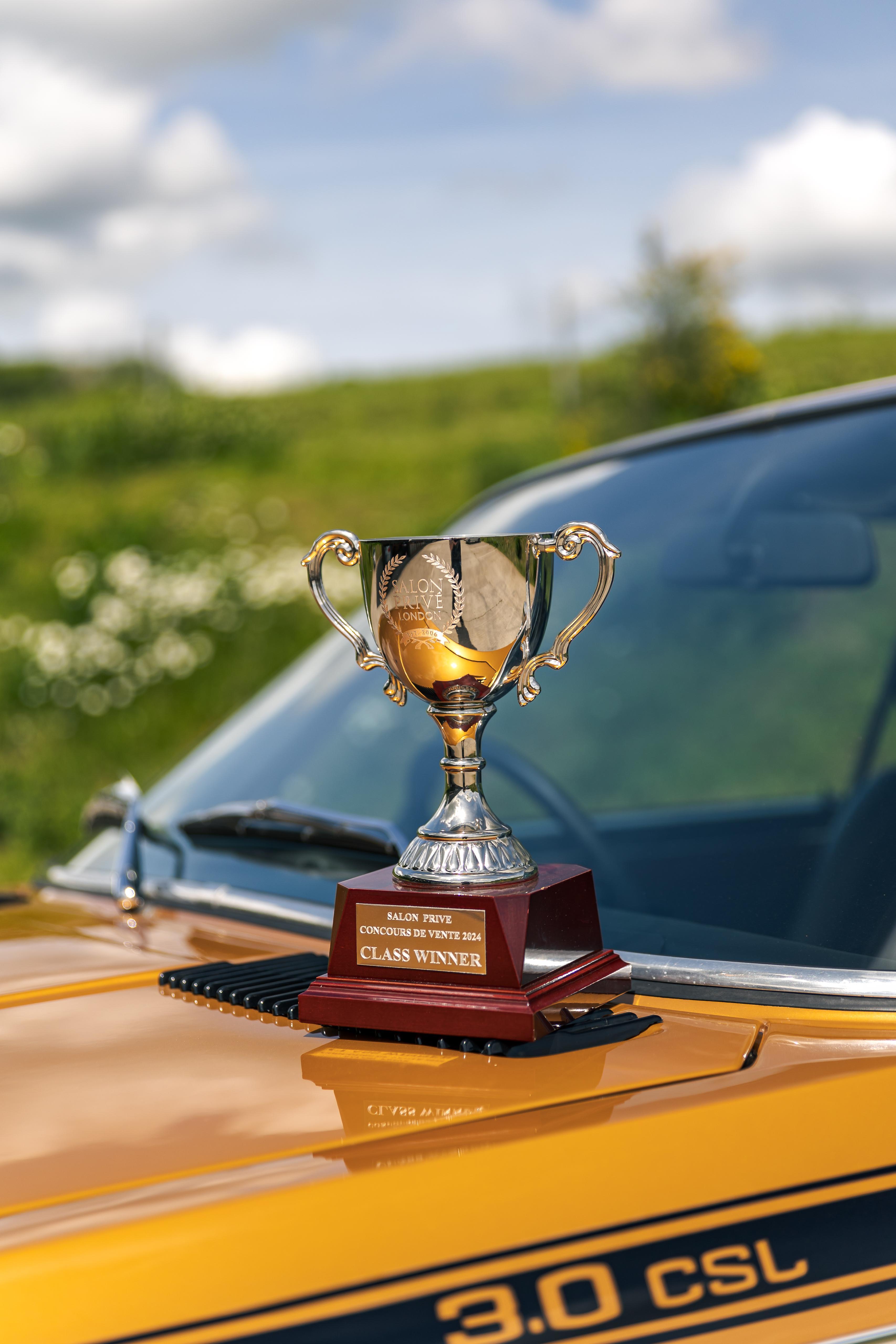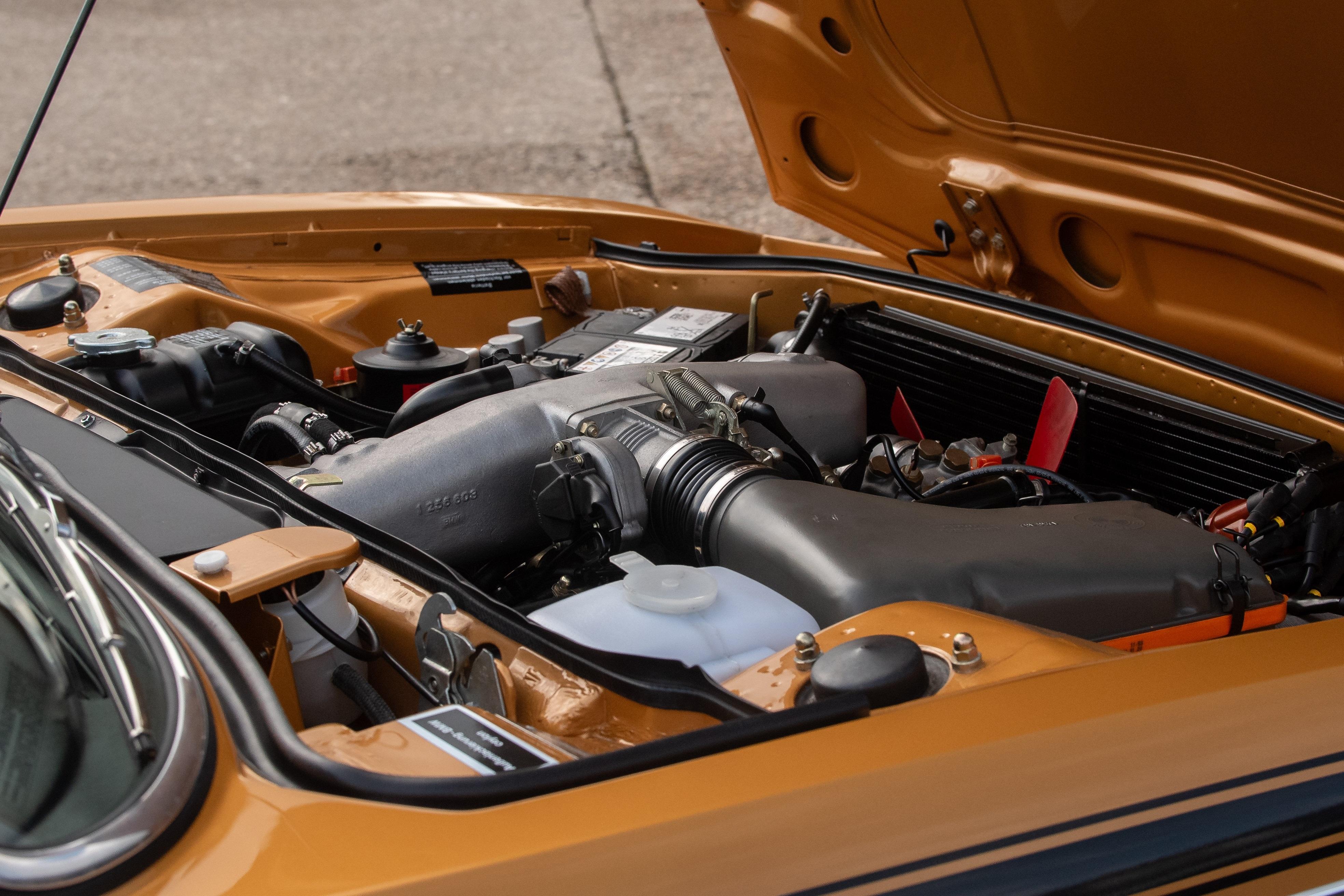 The matching number 3.0 litre engine has been fully rebuilt to ensure common integrity throughout the restoration. Every component attached has been stripped down and re-plated or replaced resulting in a fresh 'as new' finish rarely seen on the CSL. The gearbox and drivetrain have also been fully stripped with every bush of linkage refurbished or renewed; this becomes obvious when out on the road with a tight and positive shift. The period 14-inch BMW wheels are refurbished and present as new with sparkling chrome centre caps, new stickers and wheel bolts. Wrapped in 'as new' Dunlop tyres, the multi spoke alloys hide new calipers, discs and pads all round. All suspension components have been renewed with new shocks, ball joints and rubber bushes complementing an incredible restoration and contributing to a tight and responsive drive as if it were new back in 1972. It was first registered on 8th March 1974 and confirmed by BMW Group archive, as being produced from the factory in Ceylon Gold, chassis 2285446 has been lucky enough to have been completely and painstakingly rebuilt for a second lease of life. In the history file is a full photographic album of the restoration from start to finish showing the intense and lengthy effort that has been lavished on this historic BMW touring car. This CSL is now ready for a new owner to propel it into its second life as a brand new CSL restored to factory standards as it rolled out of BMW nearly 50 years ago. In 2024 this car was entered into the prestigious Salon Prive Concours De Vente where it finished as the class winner. Later that year it was also entered into the Montage of Beaulieu Simply BMW event where it also won the people's choice awards. Recently MoT'd with no advisories this car is ready to be enjoyed and displayed by its next owner. Consigned by James Good