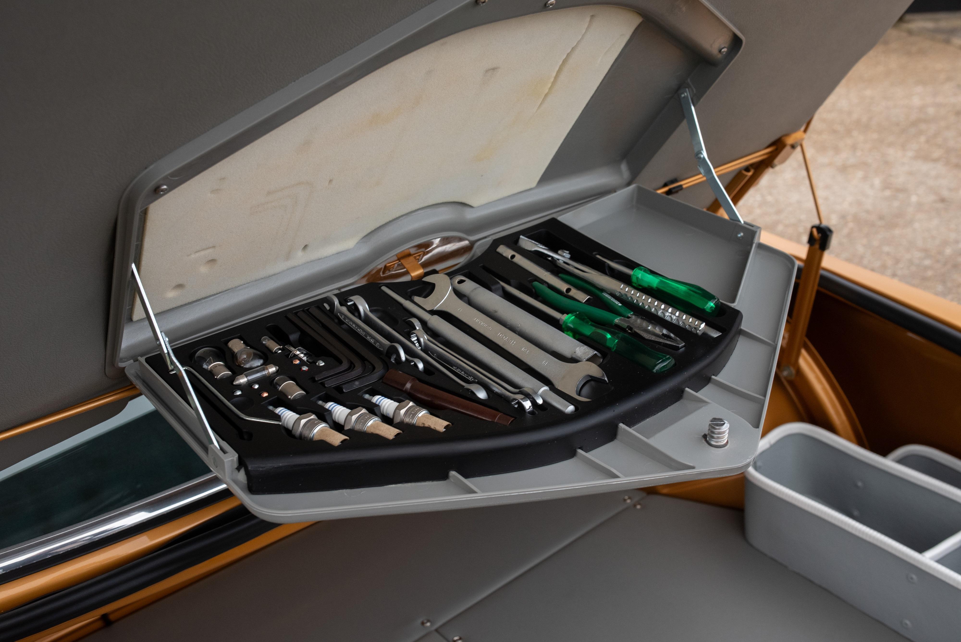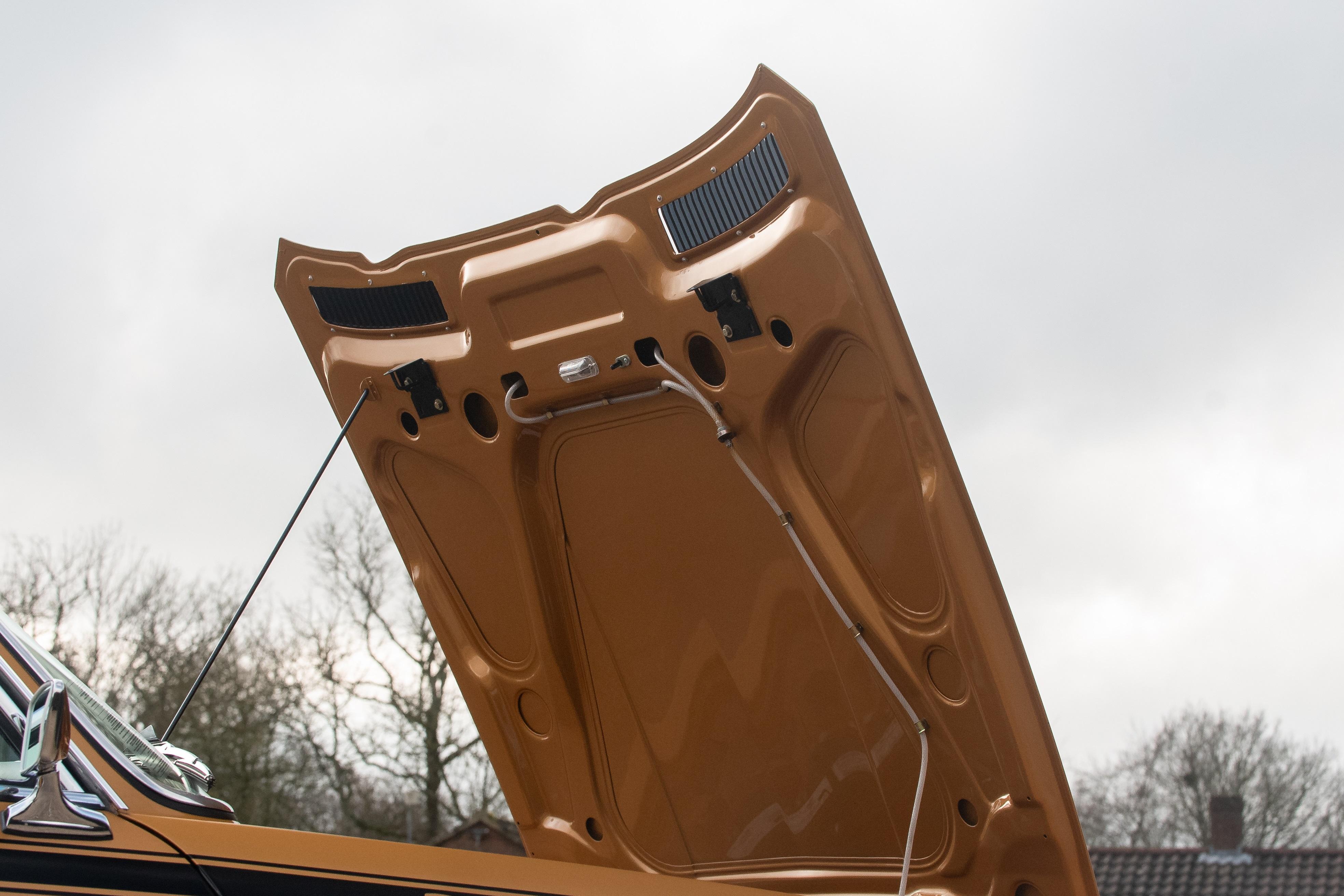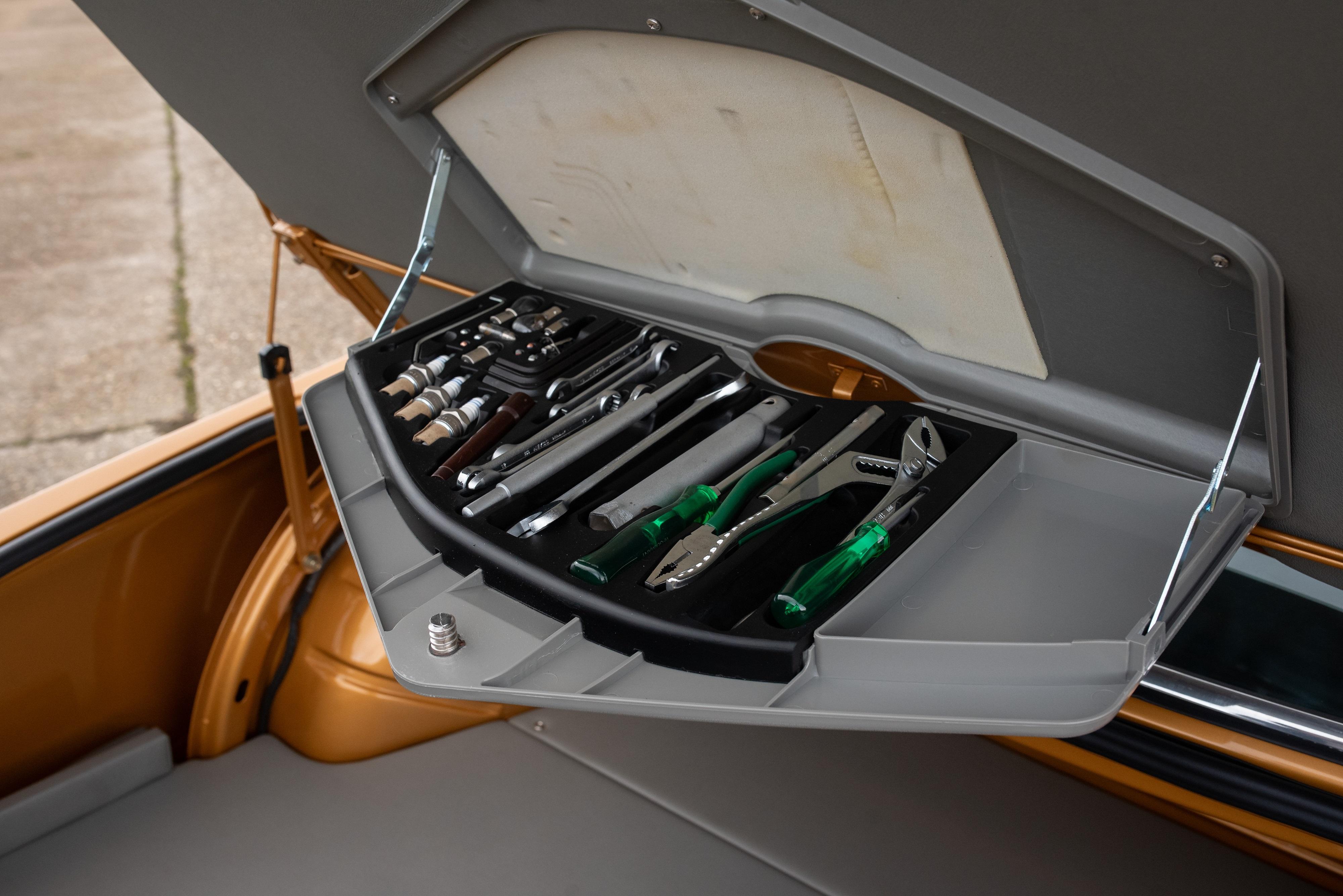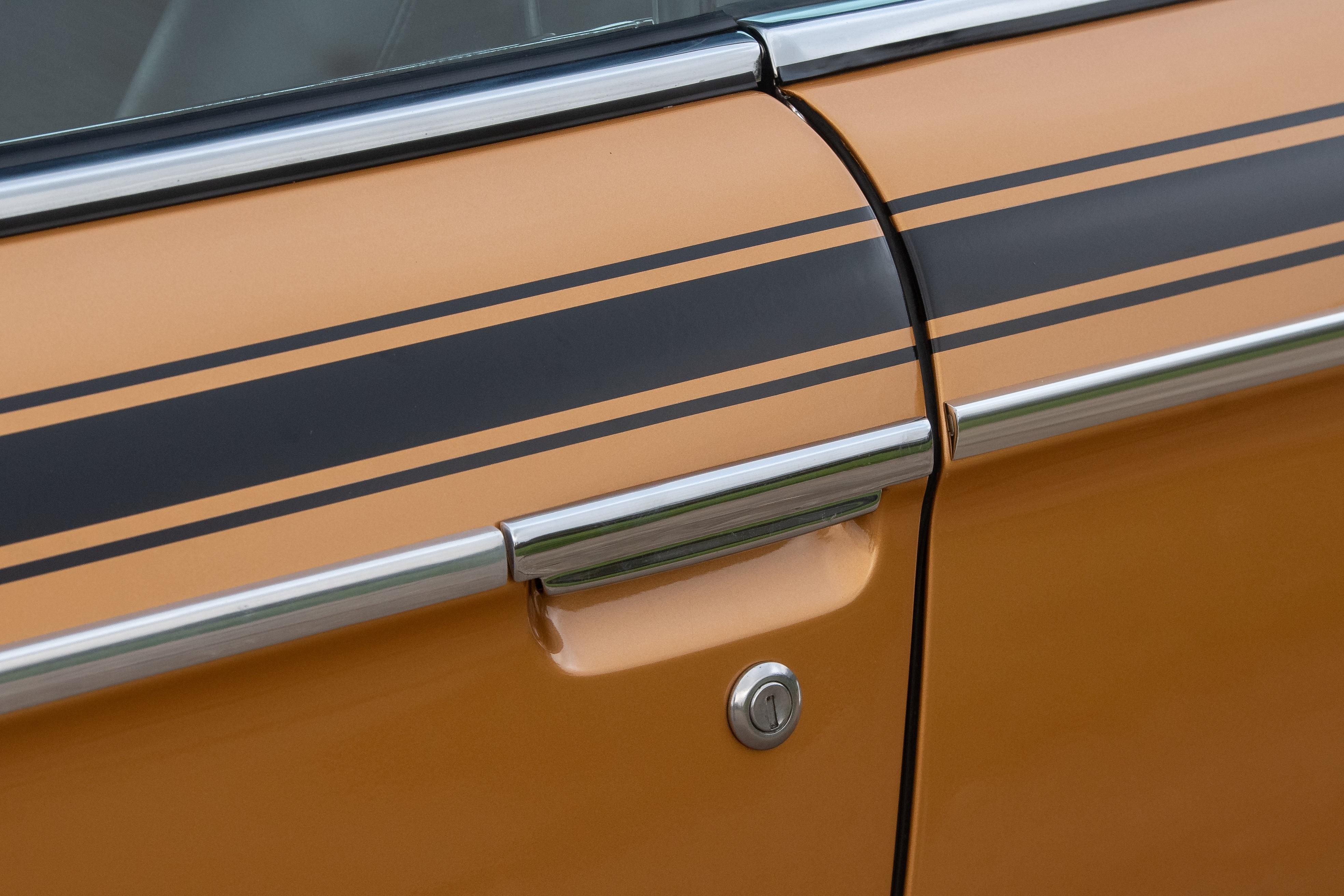 This jaw dropping right hand drive CSL is finished in Ceylon Gold, an unusual period colour that captures the era perfectly. The colour looks just right on this homologation special against the black CSL stripe, period black number plates, black wheel centres and lashings of chrome around the body. It has electric windows, PAS, Scheel sports seats, 14″ alloy wheels, aluminium bonnet, boot lid and door skins, toolkit, chrome bumpers front and rear and enjoys Bluetooth audio connection.