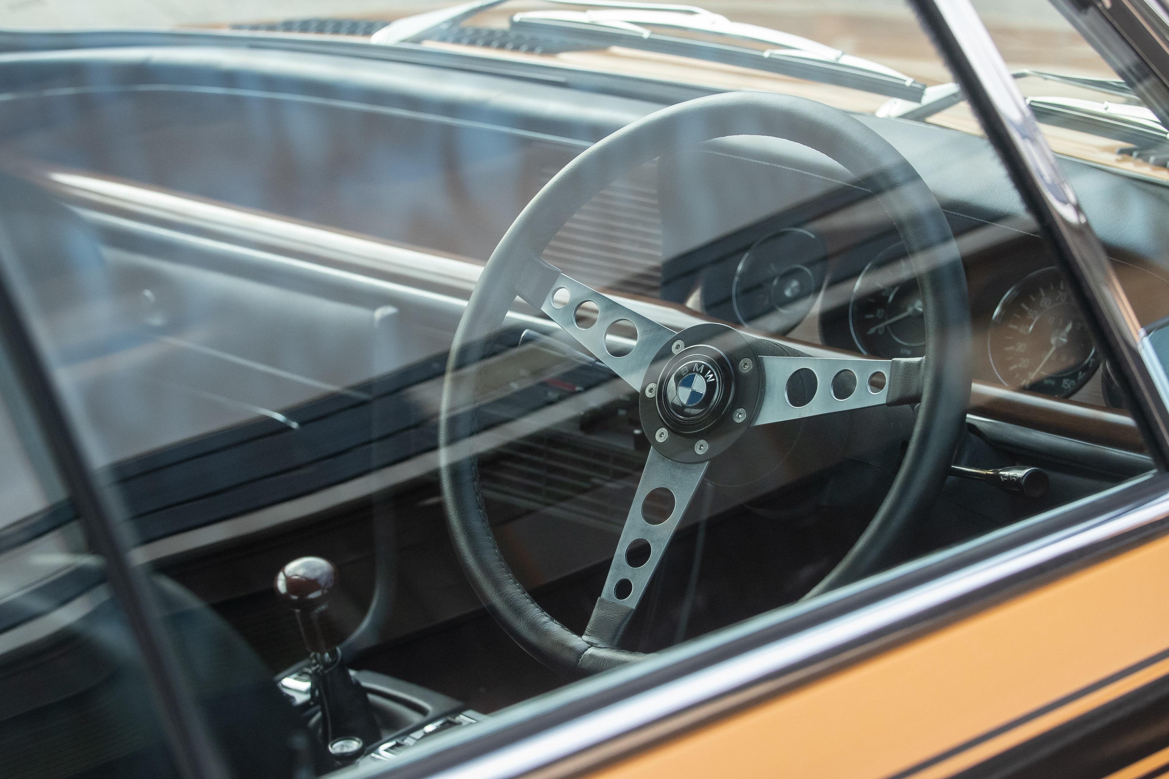 The interior in a BMW E9 coupe is like none other, beautifully laid out with plenty of wood trim it is just a wonderful place to be. Much like the exterior, no item has escaped attention inside. Anything replaced has been done so with careful consideration to ensure the original factory finish or colour scheme has been upheld. The punched black headlining specific to the CSL has been replaced with an exact copy as has the carpet, speckled in colour, often just replaced with black cloth. Slide into the brand new Scheel seats and it's obvious this is a special car. Factory door seals and window seals have all been renewed and the plastic carpet covers (all too easily broken or lost) are still present and in excellent order. A hint of modern tech is hidden away in the form of a Bluetooth unit to allow music streaming to the original fitment centre mounted speaker in the dash.