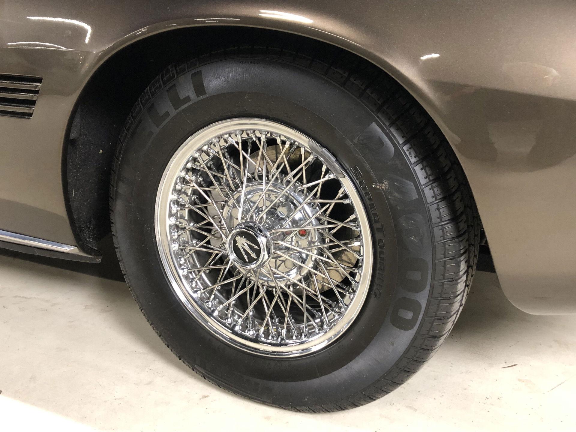 The Ghibli used a tubular frame with a point-welded body. The front suspension used the double wishbone type, coaxial dampers and coil springs, and an anti-roll bar. At the rear there was a live axle on semi-elliptic springs, with a single longitudinal torque arm, hydraulic dampers and an anti-roll bar. Magnesium wheels were standard, originally fitted with Pirelli Cinturato 205 VR15 tires until 1972, when this changed to 215/70VR15 Pirelli Cinturato CN12, while Borrani wire wheels were optional. Even by the standards of its time and class, the car consumed large amounts of fuel, but Maserati fitted the car with two independent 50 liter fuel tanks, which could be filled via side valves.