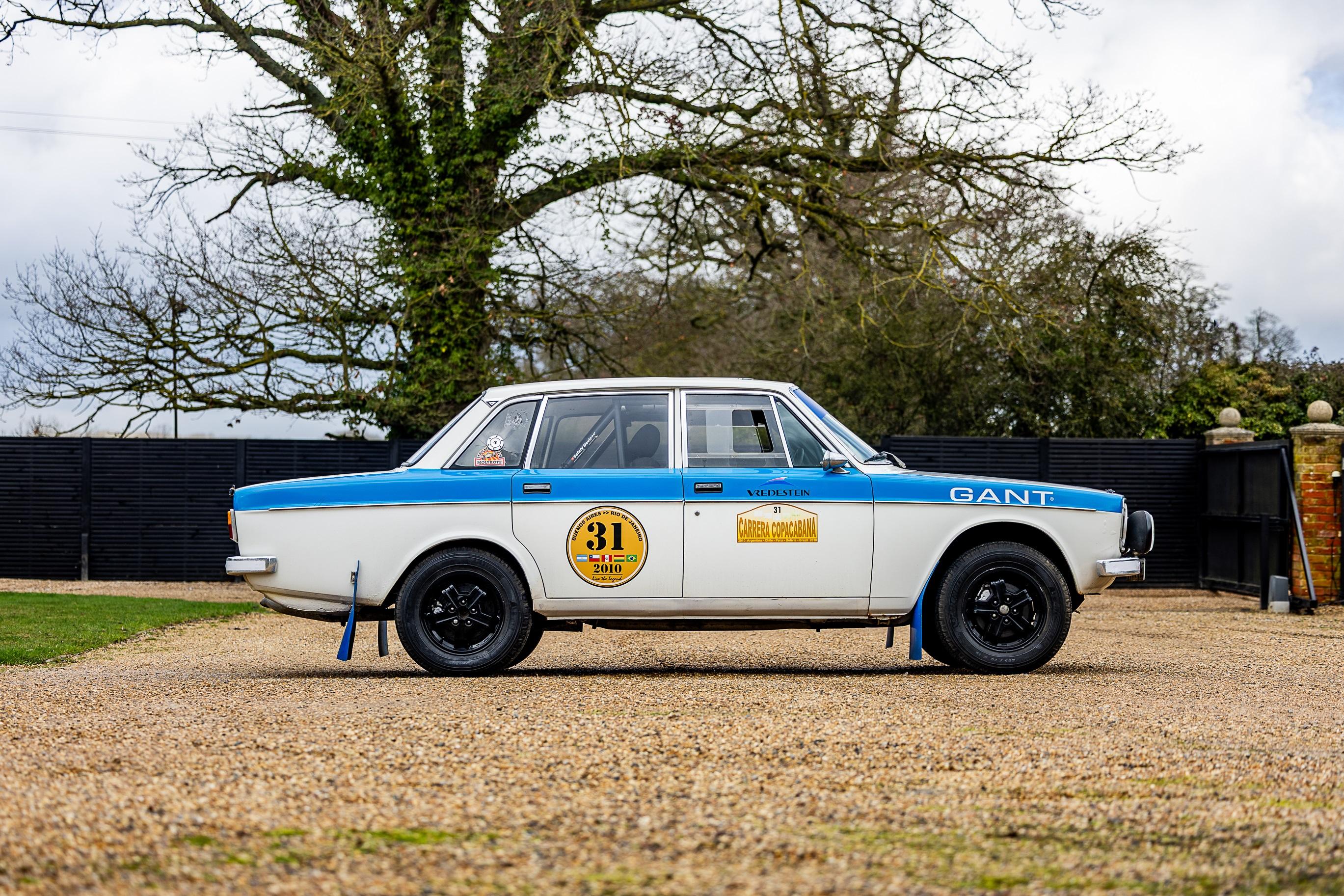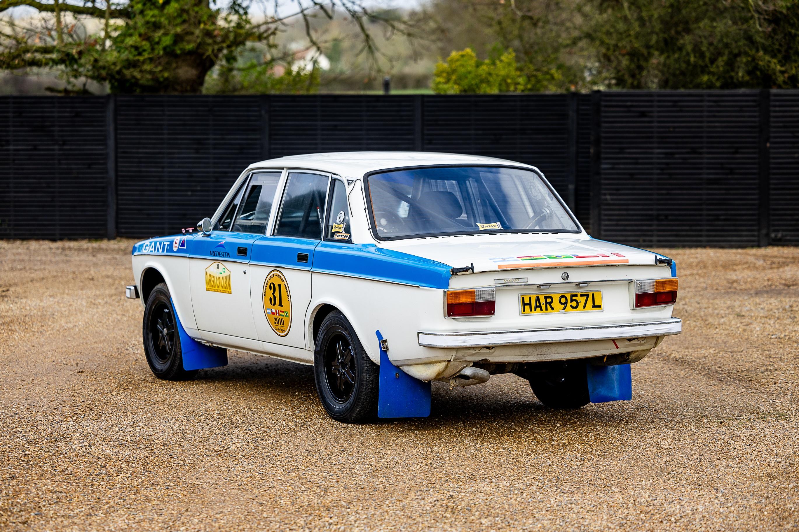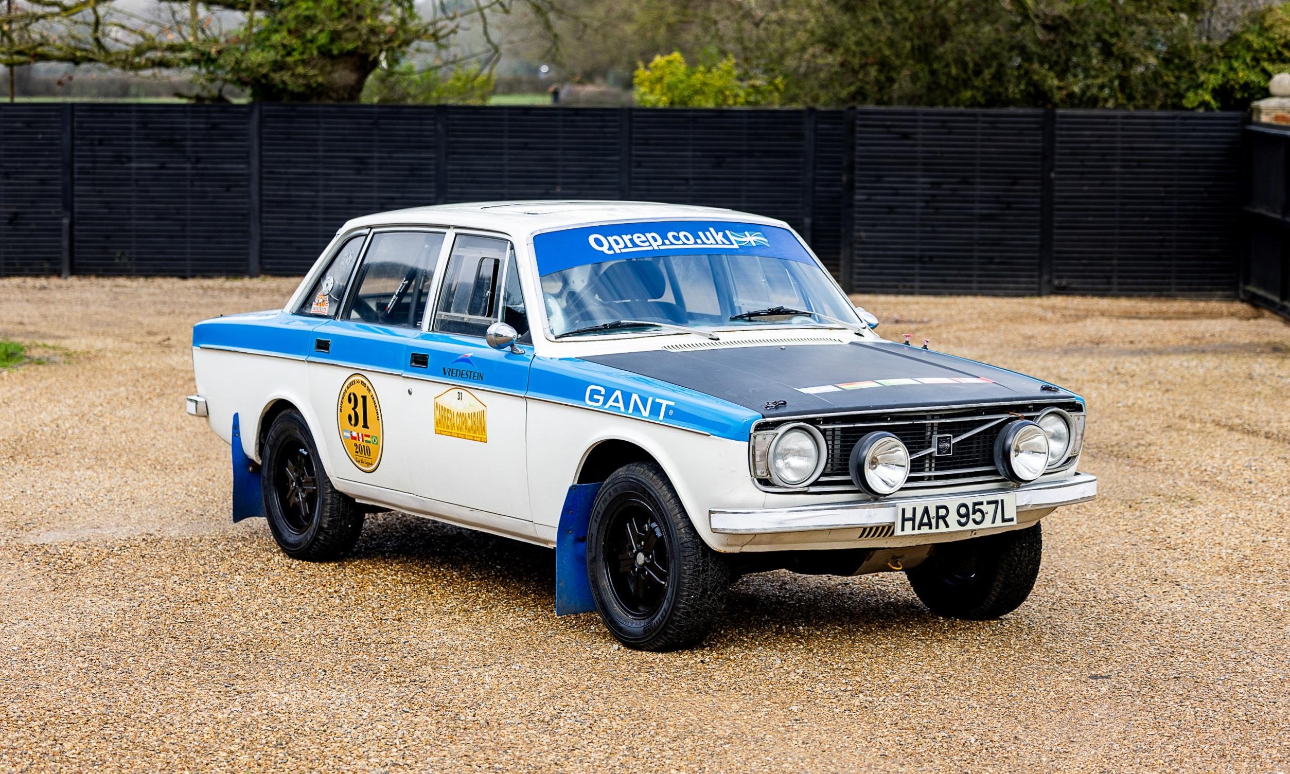 Volvo's saloons were capable rally cars and the 144 (the 140 series' four-door saloon) was no exception. Notable endeavours included the 1968 London-Sydney Rally and Jose Araujo and John Batley's entry in the 1970 London-Mexico World Cup Rally. 'HAR 957L' had a quiet life at first, being sold through the Park Road Garage in Bedford in 1973 to an Italian ice-cream seller, to be used for his summer holidays in Italy. When he passed way in c.1999, the Volvo was offered back to the Park Road Garage having covered 60,000 miles. In 2009, the then owner considered it perfect for his own rallying ambitions, the car was stripped down and thoroughly lightened, with all the glass and interior removed. Upgrades included a GT dash, a full roll cage, new coil springs and Bilstein shock absorbers, uprated brakes and larger-diameter 1980s Volvo wheels. The car was entered in the month-long 2010 Carrera Copacabana rally and proceeded to be the winner! It was one of only seven finishers in the challenging drive from Argentina to Brazil, traversing Chile, Peru and Bolivia. Following its victory, the Volvo has seen little action and remains in excellent order and is offered with a history file which contains the ownership history, MoTs back to 2000, and much documentation from the Copacabana rally. This vehicle has been recently fully serviced and MoT'd, it is described as in fantastic working order and ready to enter any of the many historic rallies around the world. Consigned by Mathew Priddy