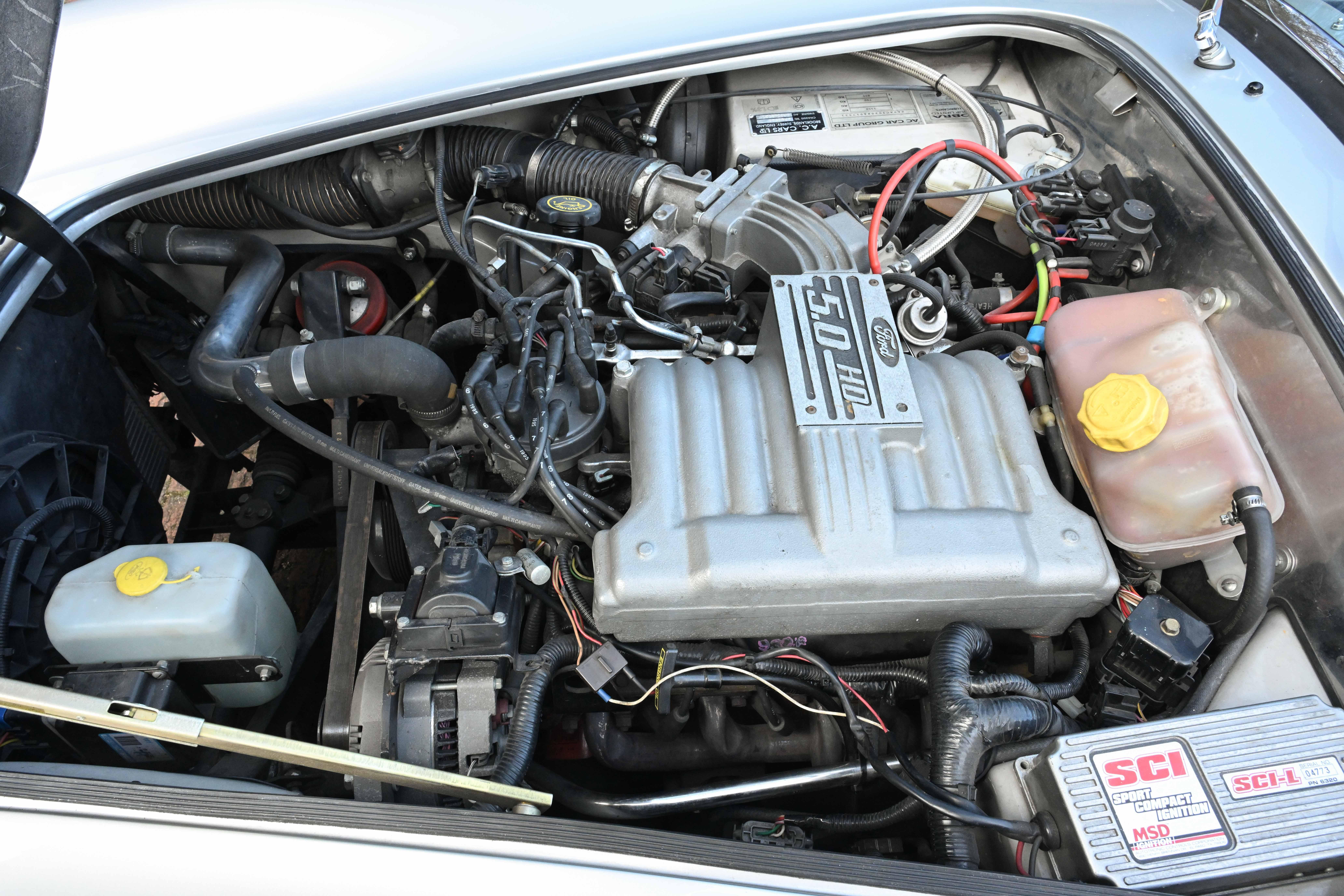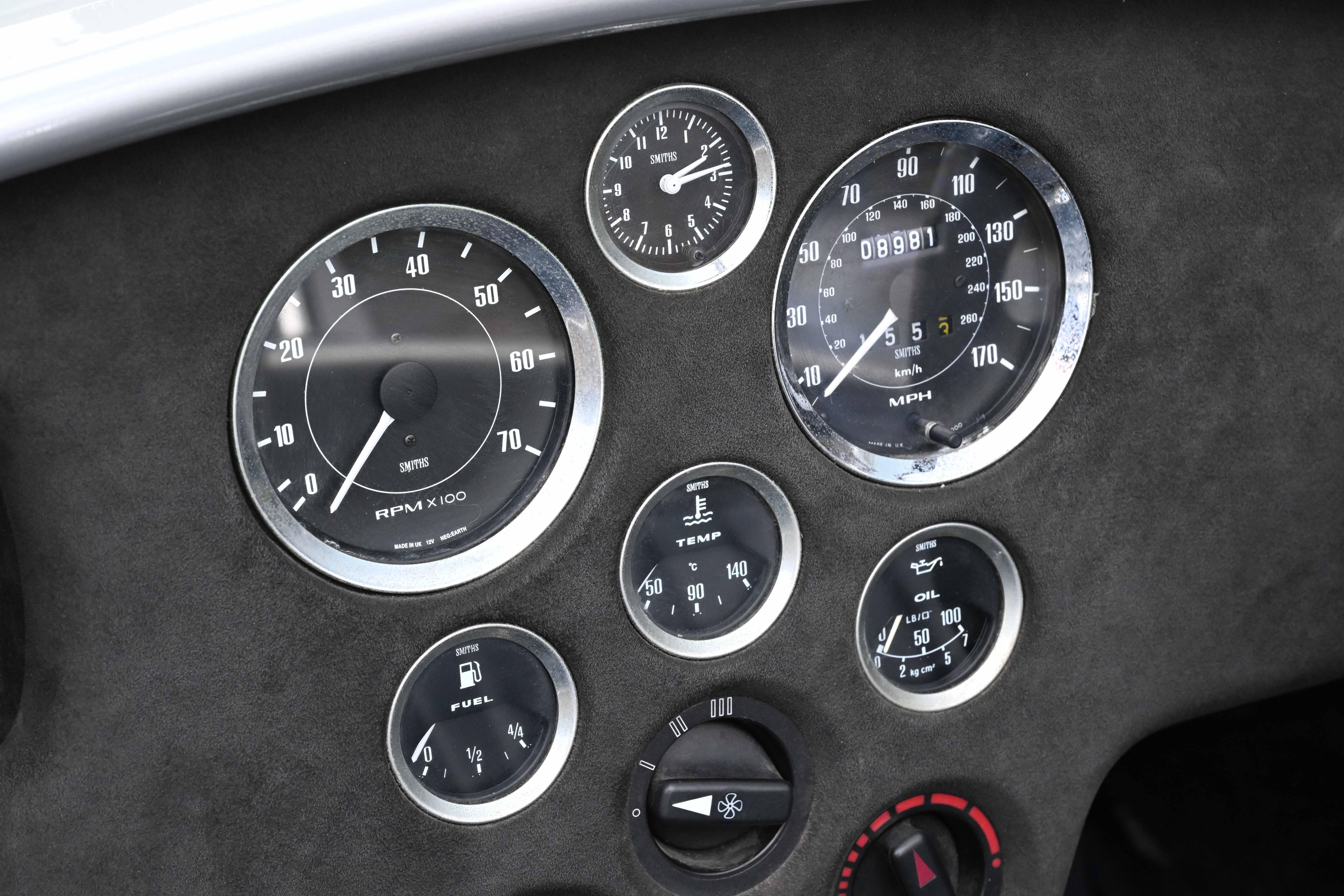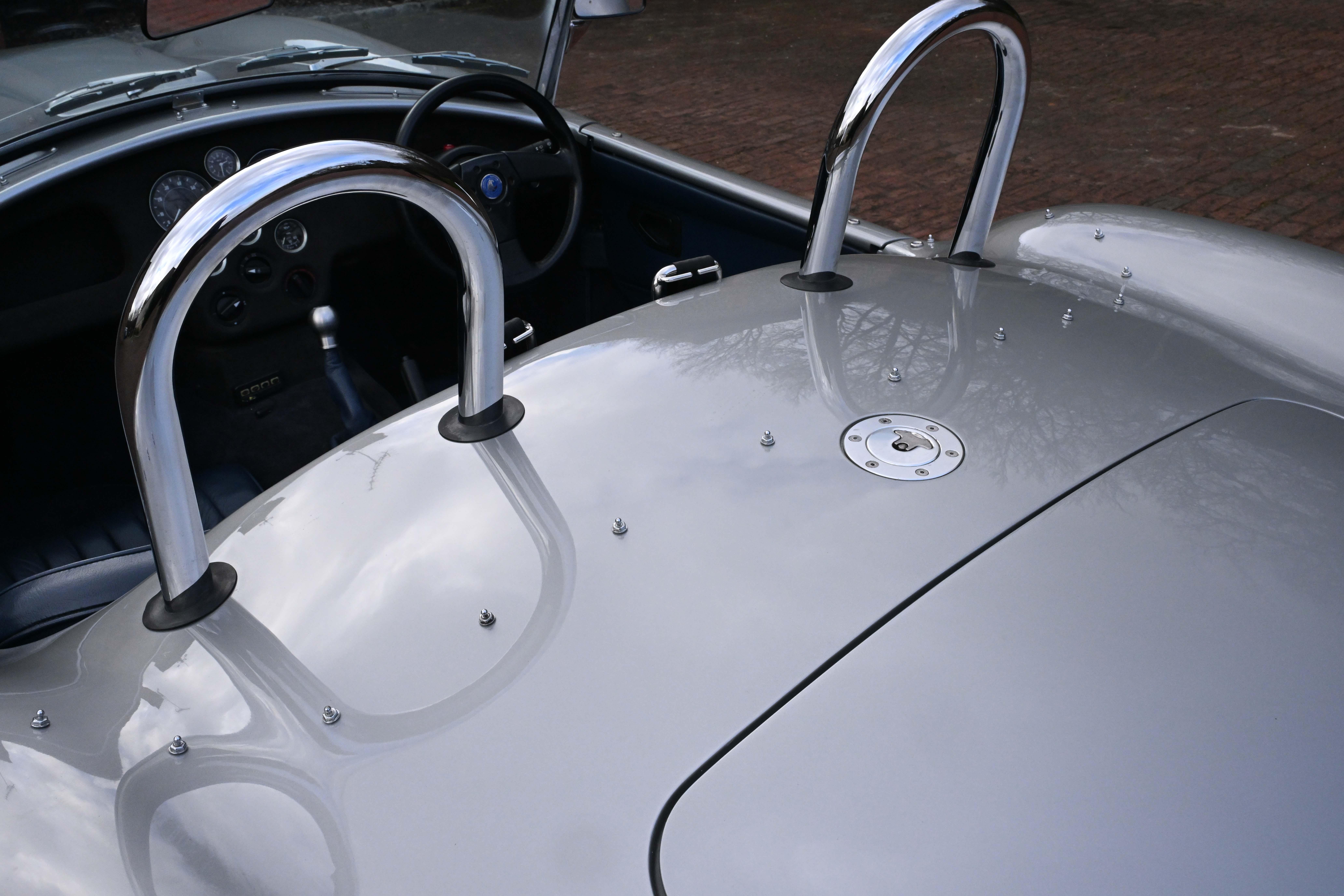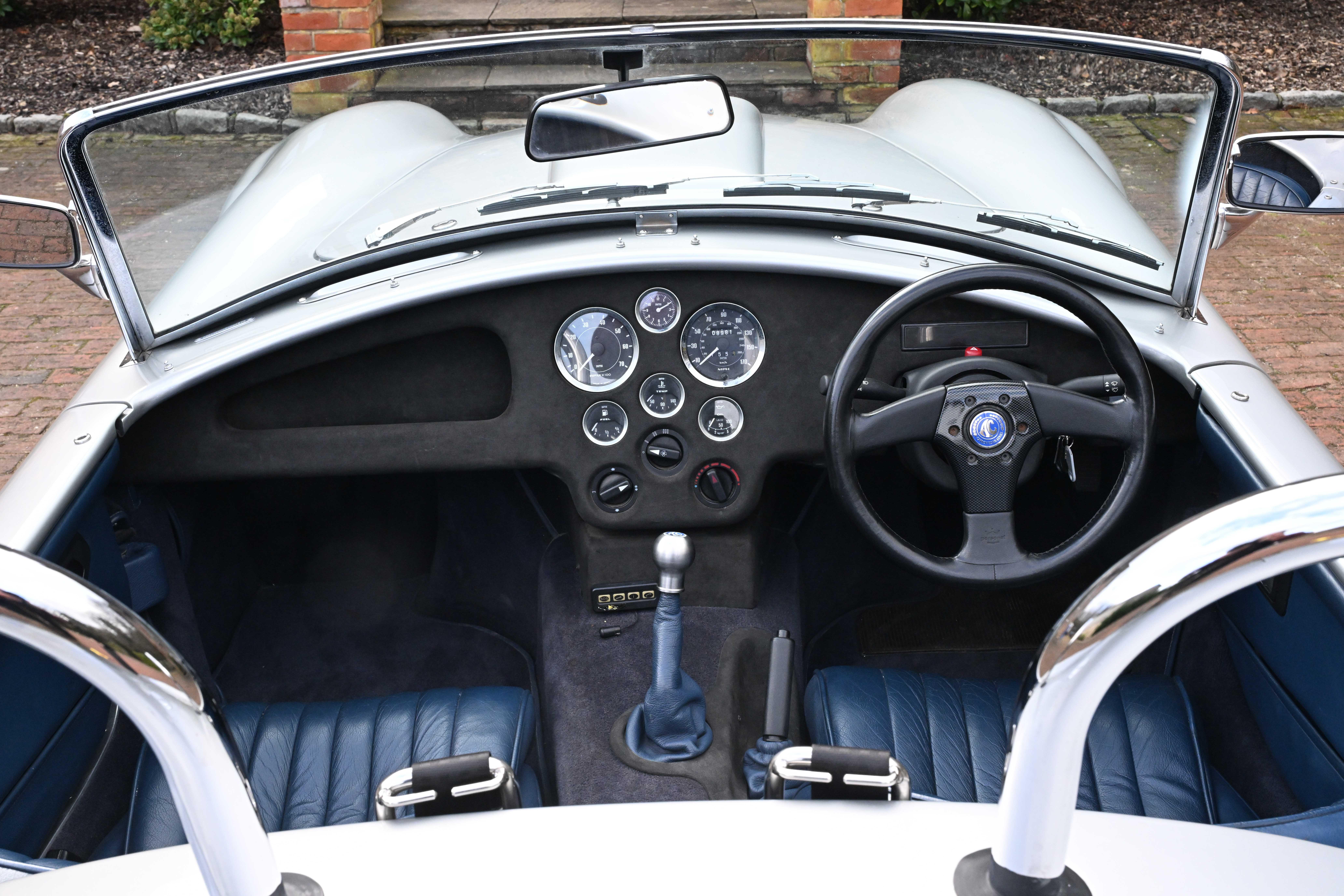 This low mileage and low ownership example has recently received a full repaint and refurb of its leather interior and chromework and presents wonderfully in gleaming silver coachwork with dark blue interior. This colour combination really shows the lines of the car well. This stunning example has benefitted from works by well-respected marque specialists, Redline Engineering of Chertsey which included a service, a brake service and a suspension overhaul. We are informed this Cobra is an absolute joy to drive and the soundtrack from that thunderous V8 is second to none. This Cobra has always been maintained well and kept in fine fettle, it is now ready to be enjoyed by the next custodian. Supplied to auction with an MoT test certificate valid until November 2025, a V5C registration document, various invoices and service records. Consigned by Dominic Lake