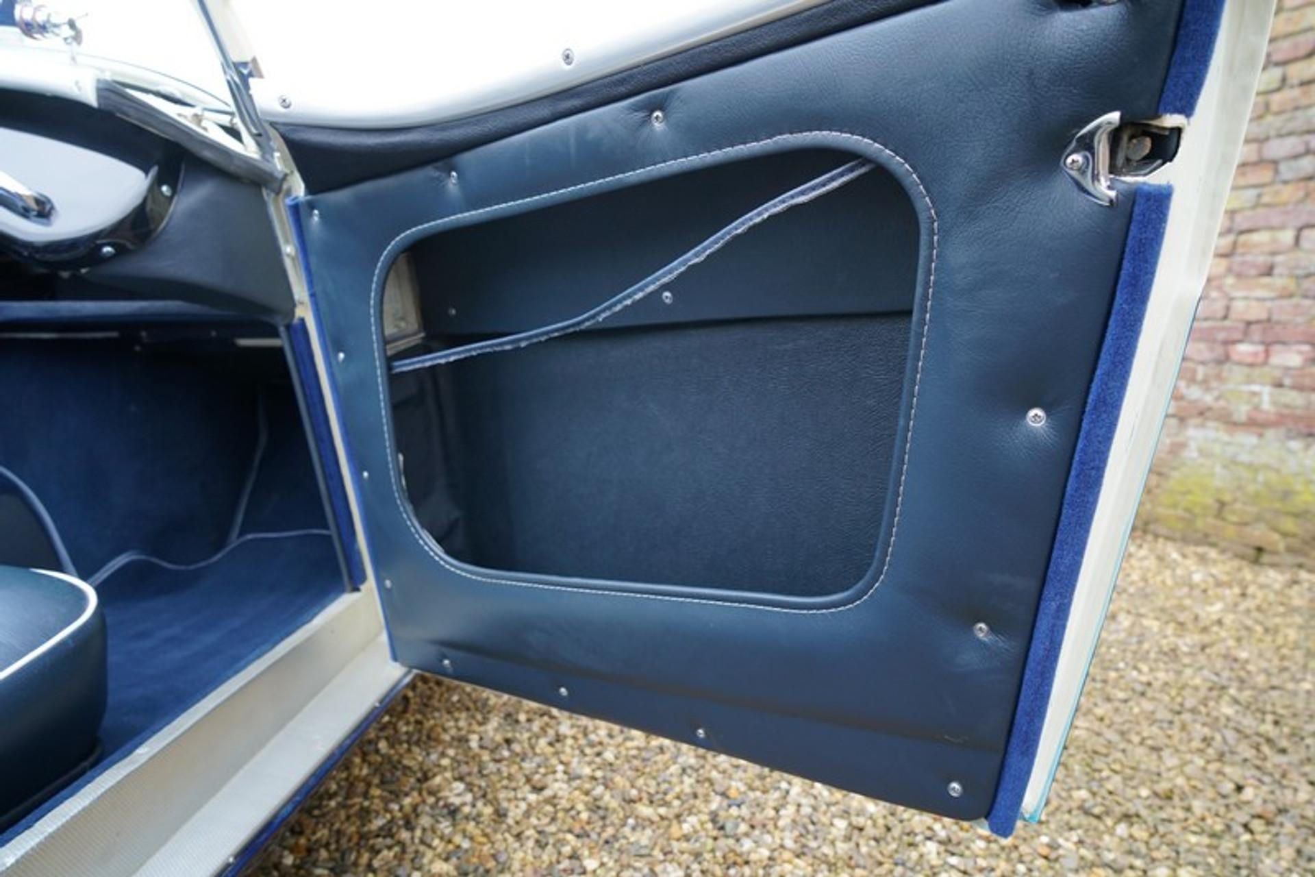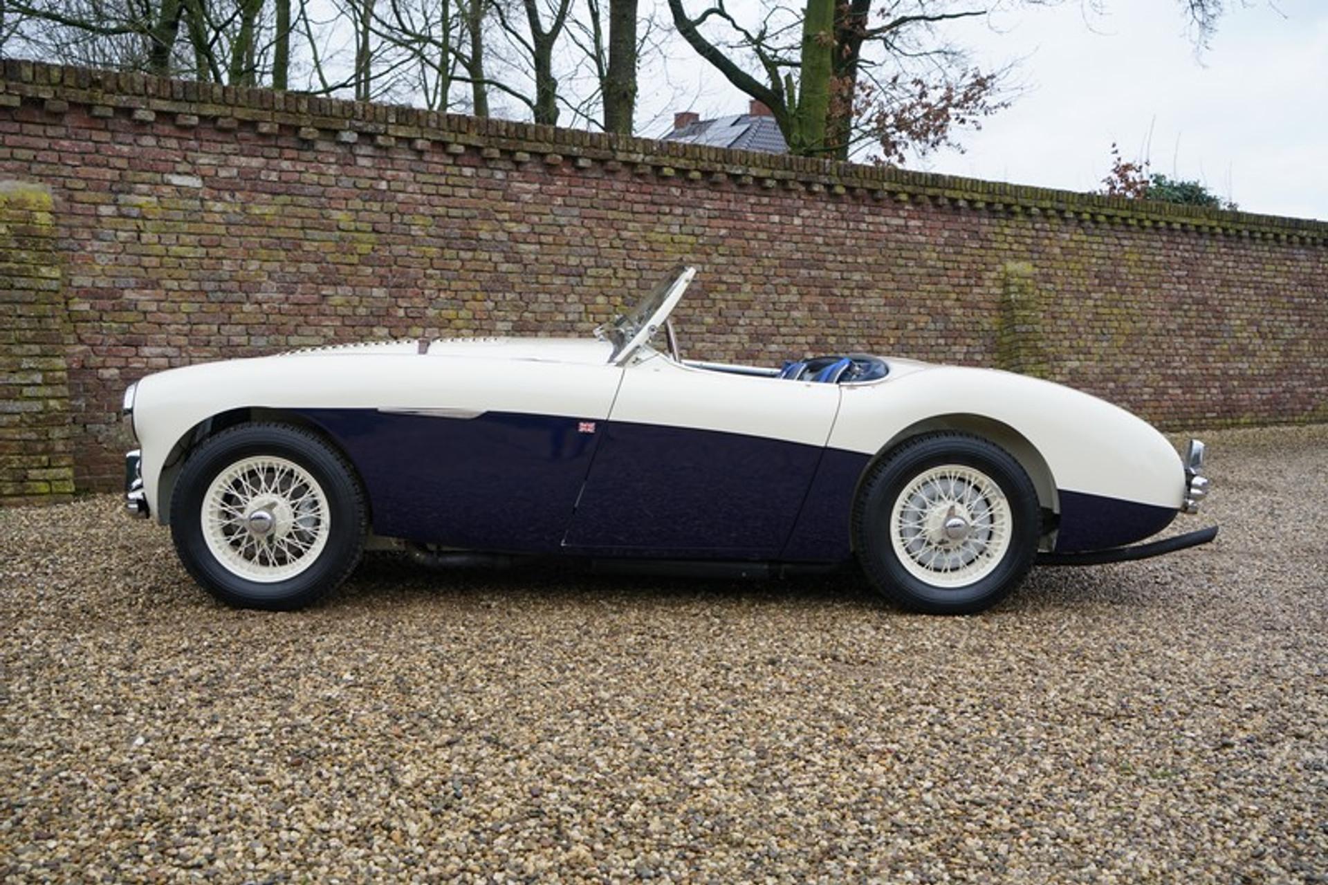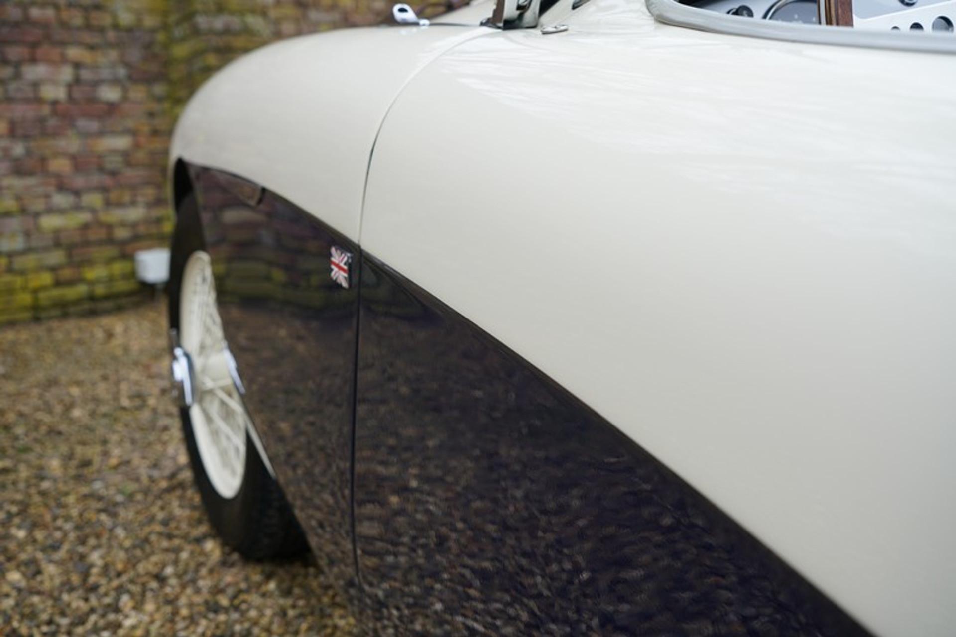 The 'Healey' you see here is one of those first models. This 100-4 built in October 1954 was first registered in early 1955. In 1997 the car arrived on Dutch shores and remained in the same hands for some 20 years. A few years ago the car underwent a full top-class restoration and mechanical rebuild. This restoration was the kind every enthusiast likes to see: taken back to bare metal, dismantled down to the very last nut and bolt before being carefully reassembled using only the very best materials. Clearly a case of no effort or expense being too much to restore to an absolute top-quality standard. The engine was completely rebuilt and included a number of lovely modifications.