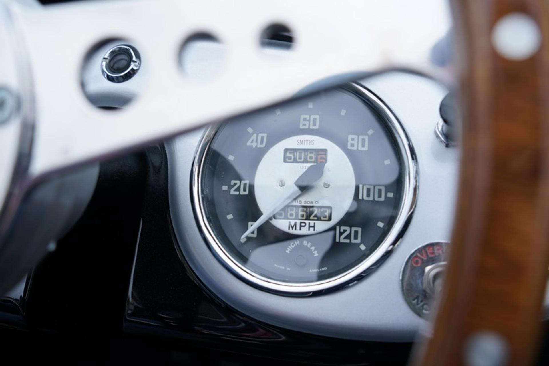During the restoration this standard 100-4 was fully modified to 100M factory specifications. The original matching numbers engine was fitted with the very sought after Denis Welch aluminium cylinder head, a fast crankshaft with high ratio cam levers, high compression pistons and a lighter fly-wheel.
