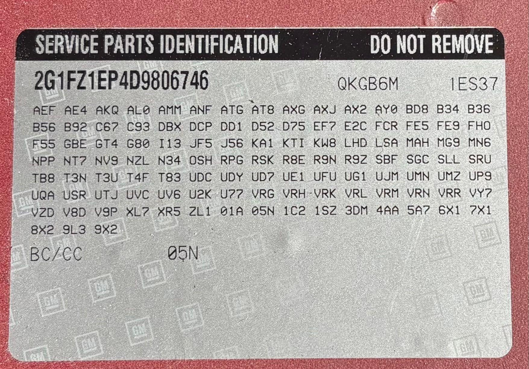 - VIN Code2G1FZ1EP4D9806746