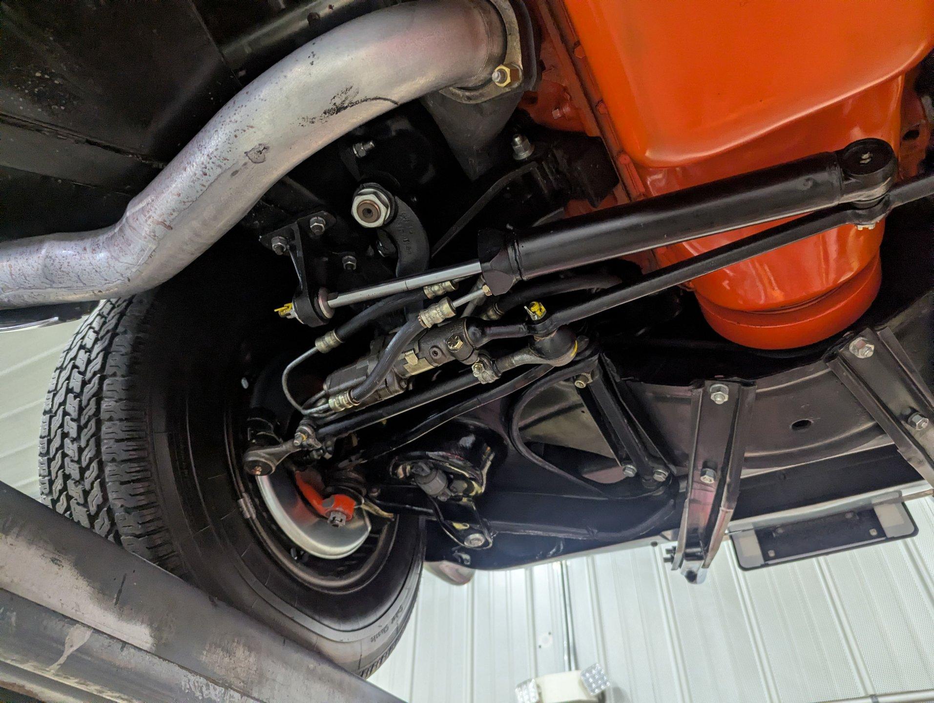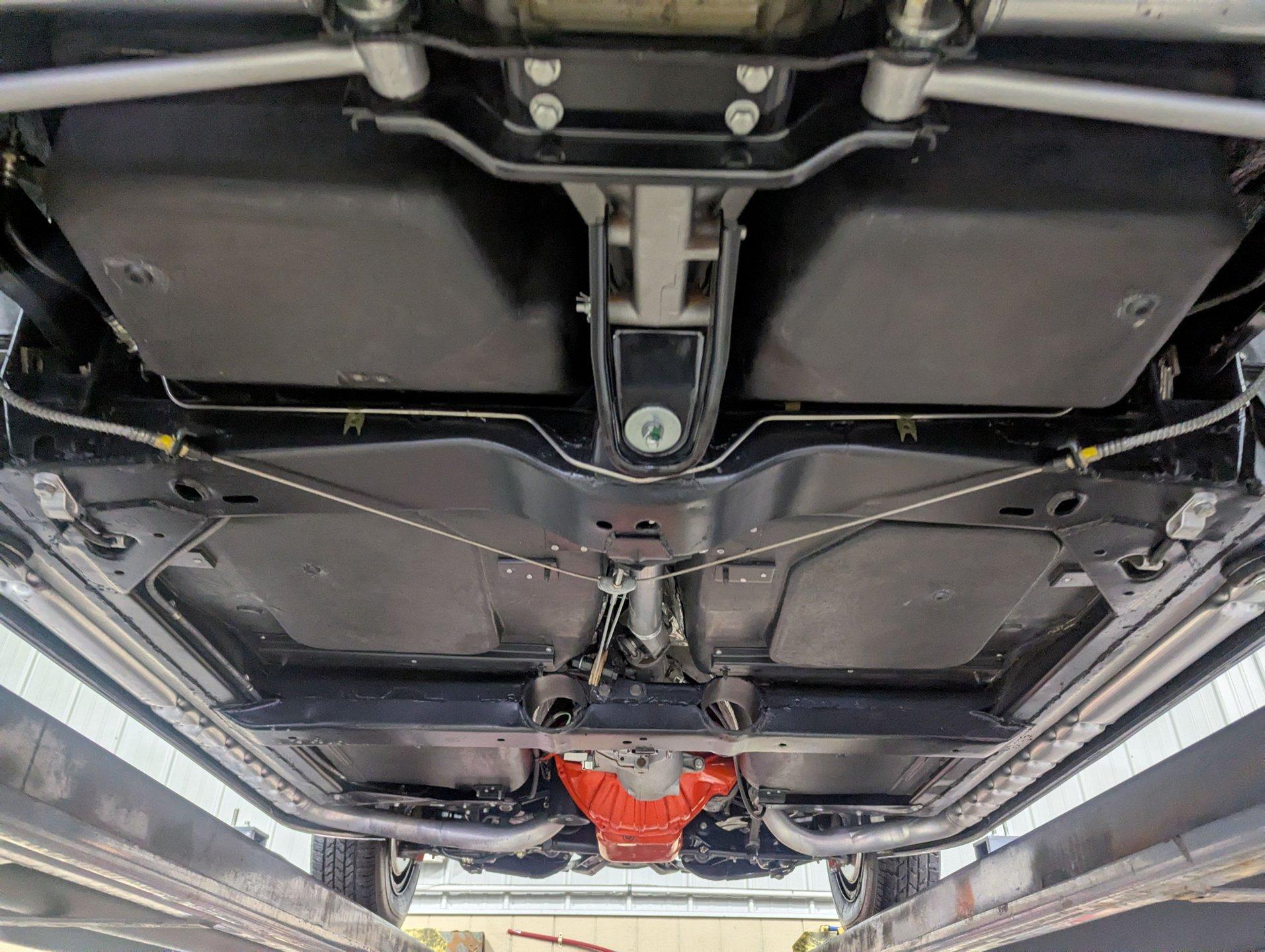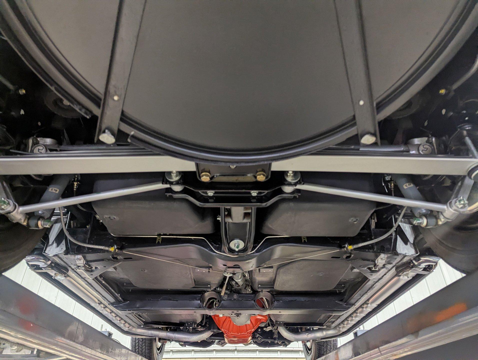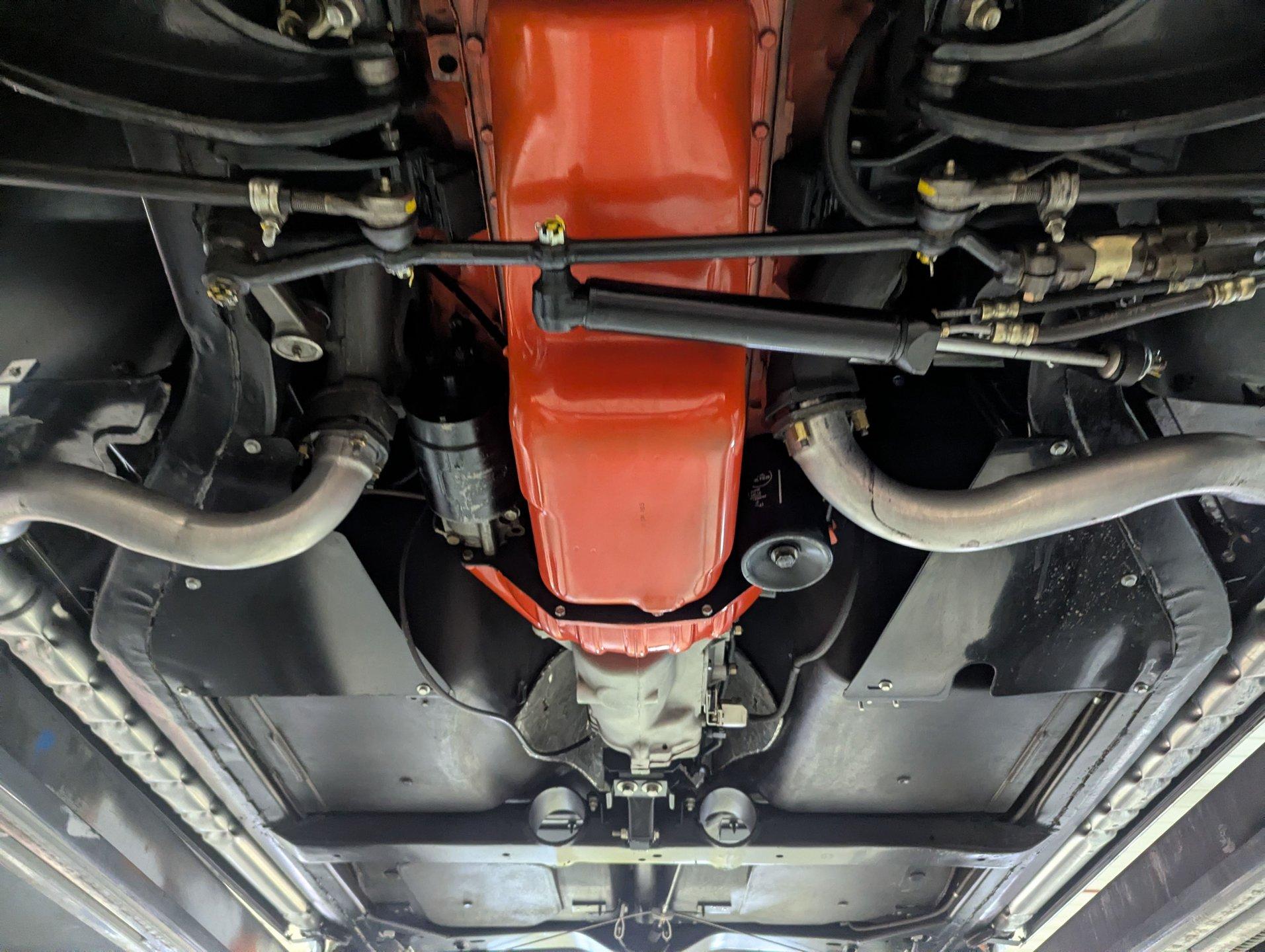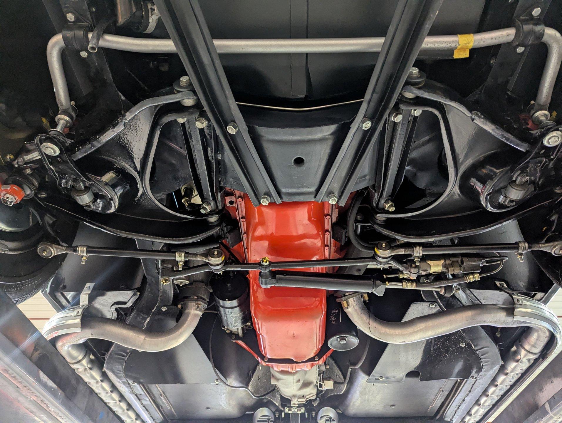 UNDERSIDE: The body was removed from the frame, and the underside of this car is detailed to a truly like-new standard-it looks as though it was completed just last night. Every component was either replaced or reconditioned to factory specifications. The four-wheel independent suspension was completely rebuilt, as was the power steering system. Disc brakes are fitted at all four corners, with the entire braking system rebuilt or replaced, including properly connected emergency brake cables.